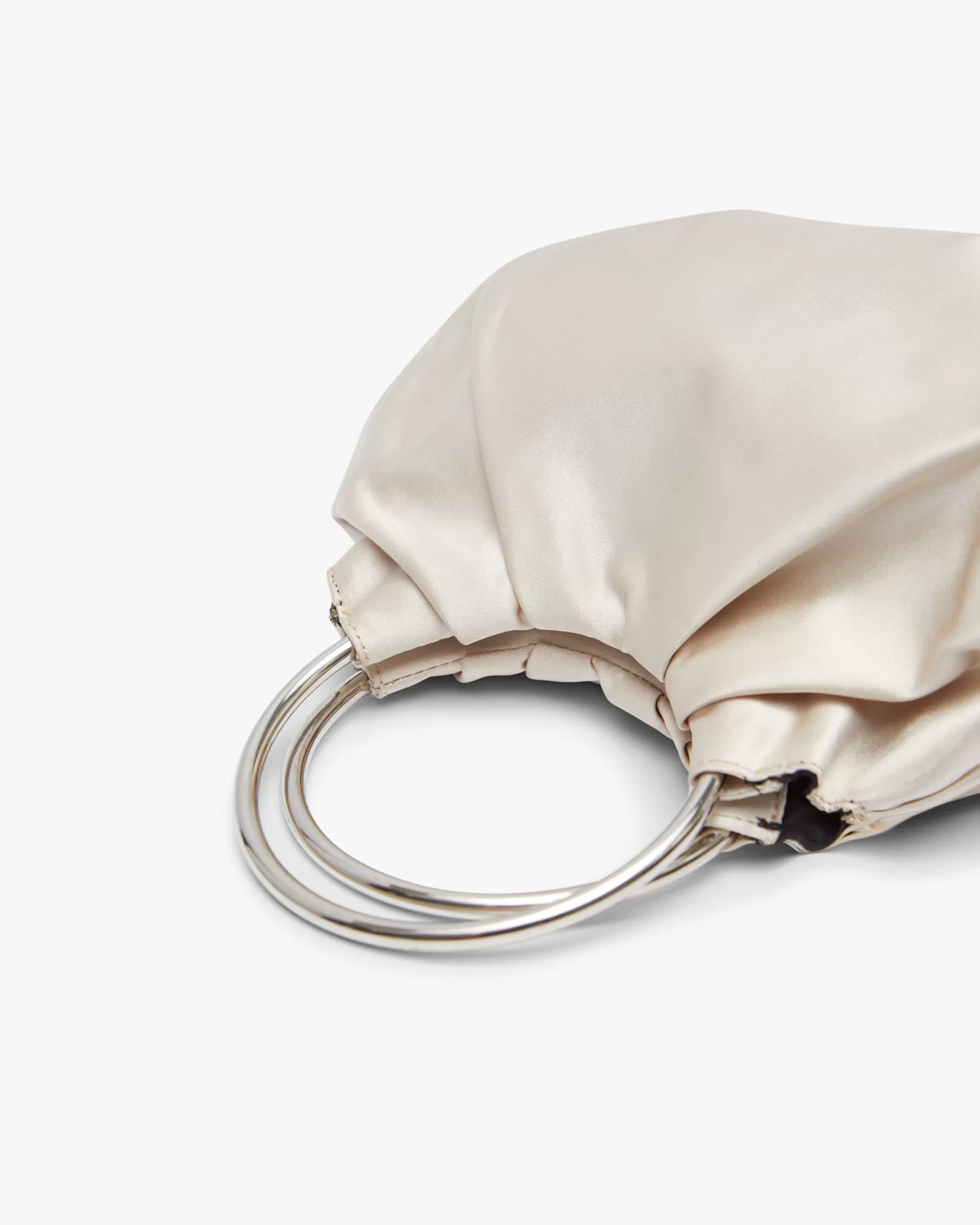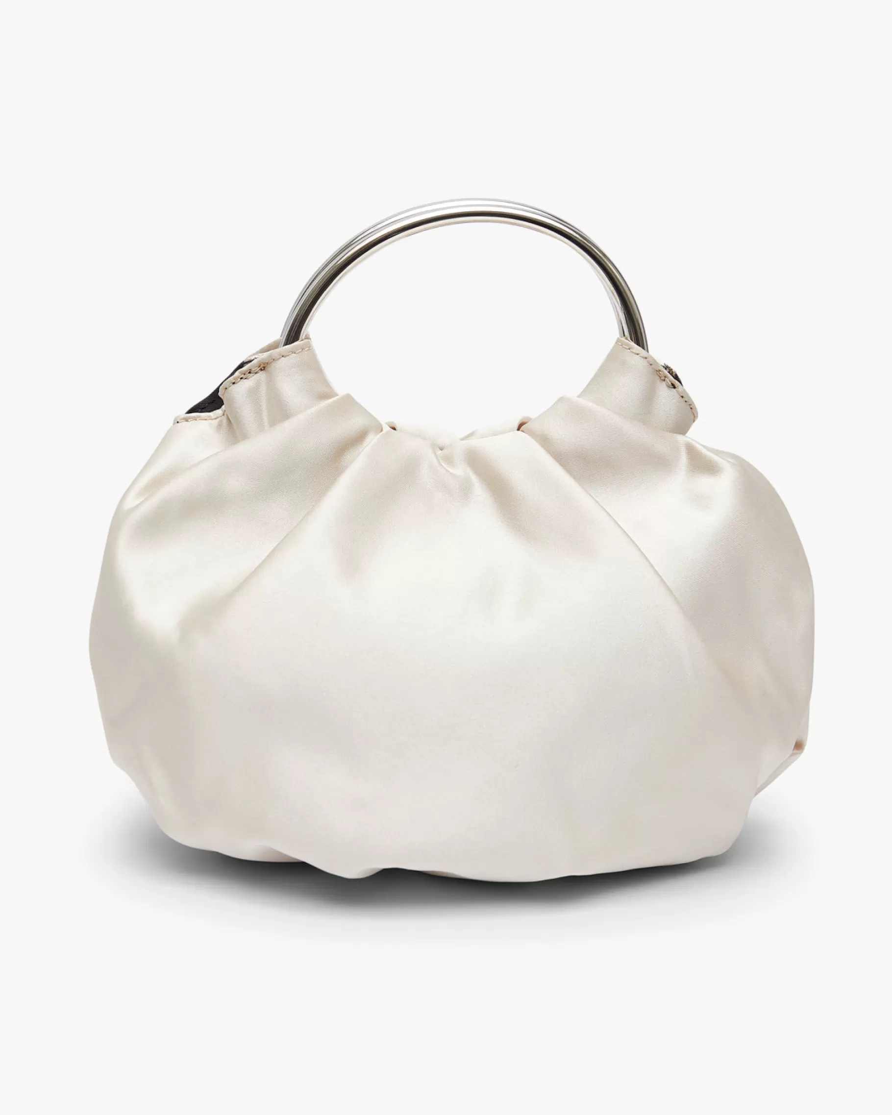 Bolso de mano con asa metálica y cierre mediante botón.Medidas: 12 cm de ancho x 19 cm de alto sin anilla y 27 cm con …