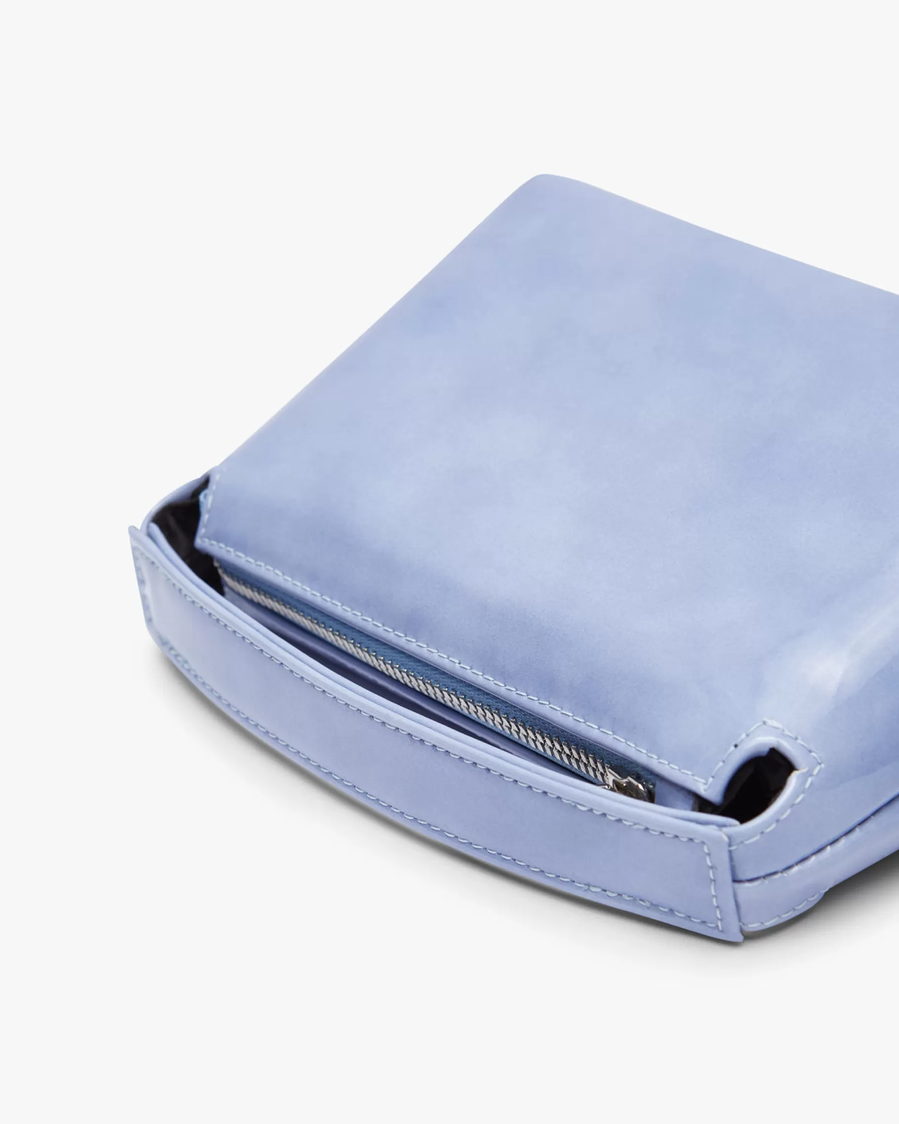 Bolso rectangular pequeño con asa de mano y cierre con cremallera.