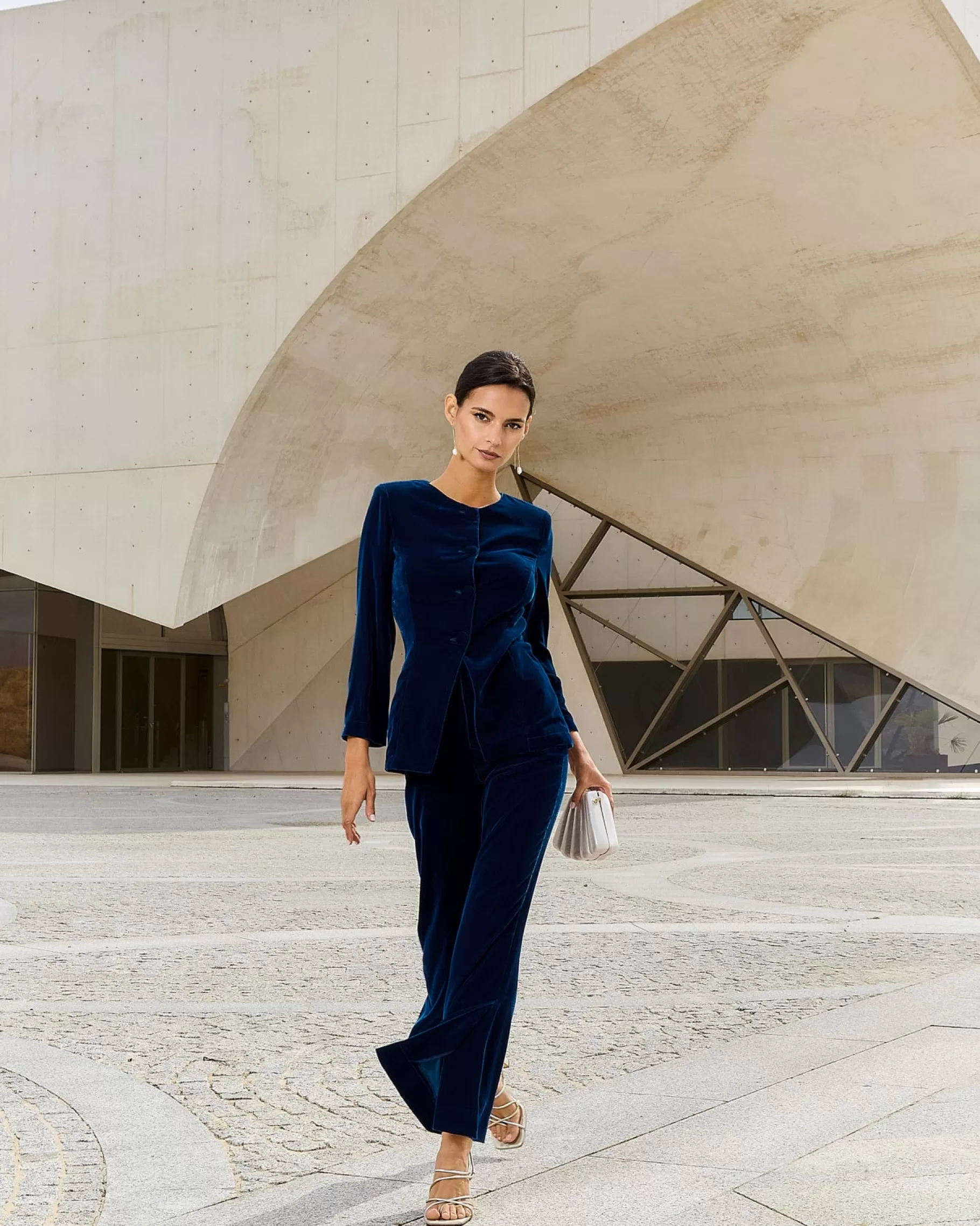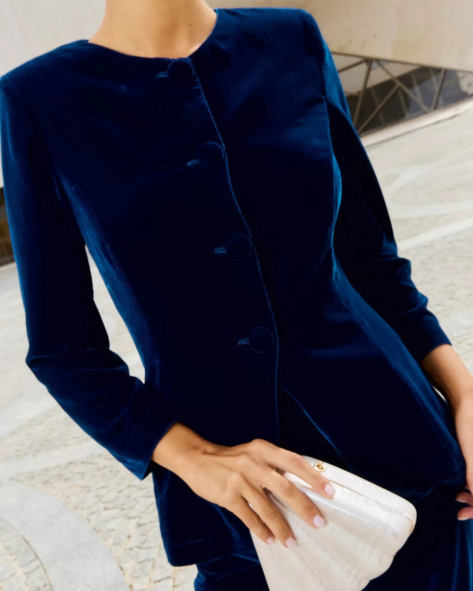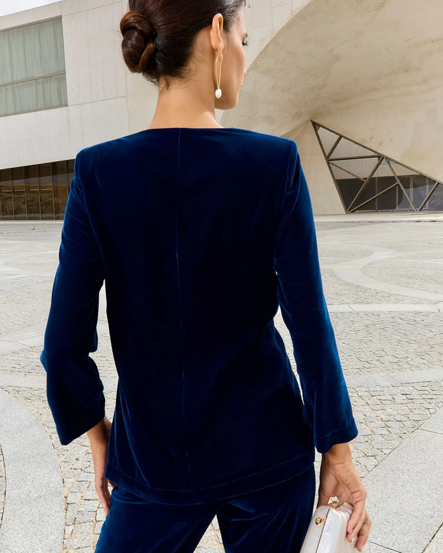 Top con mangas y con botones forrados a tono.