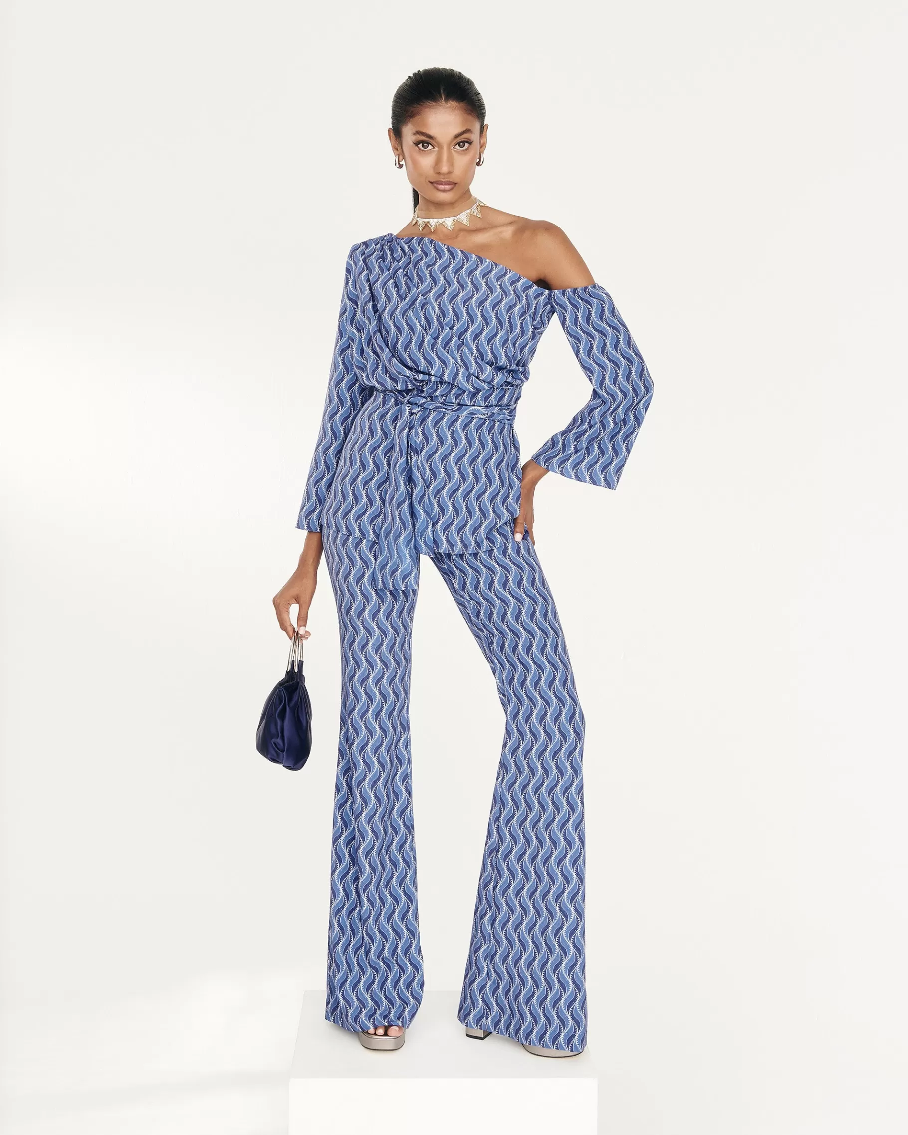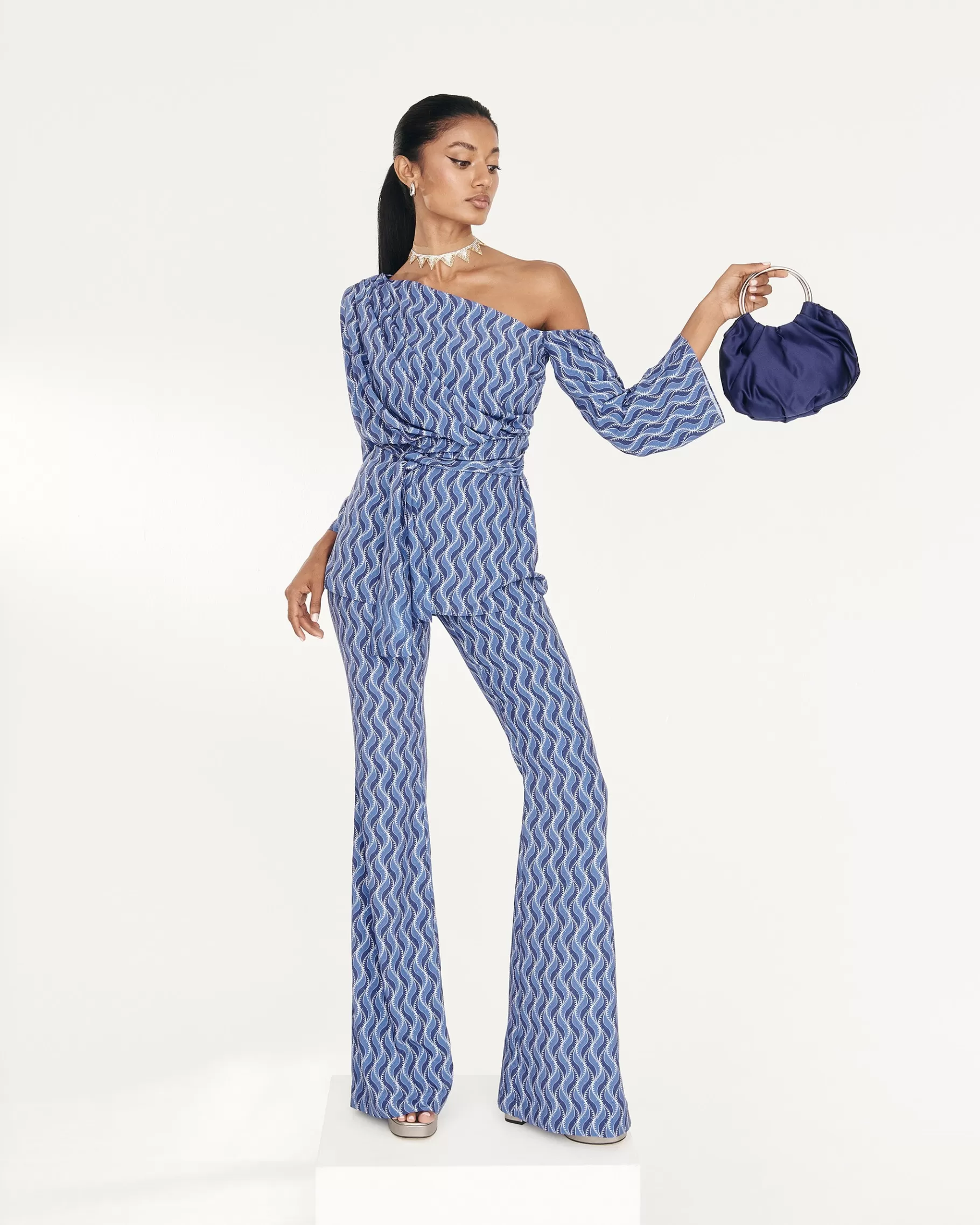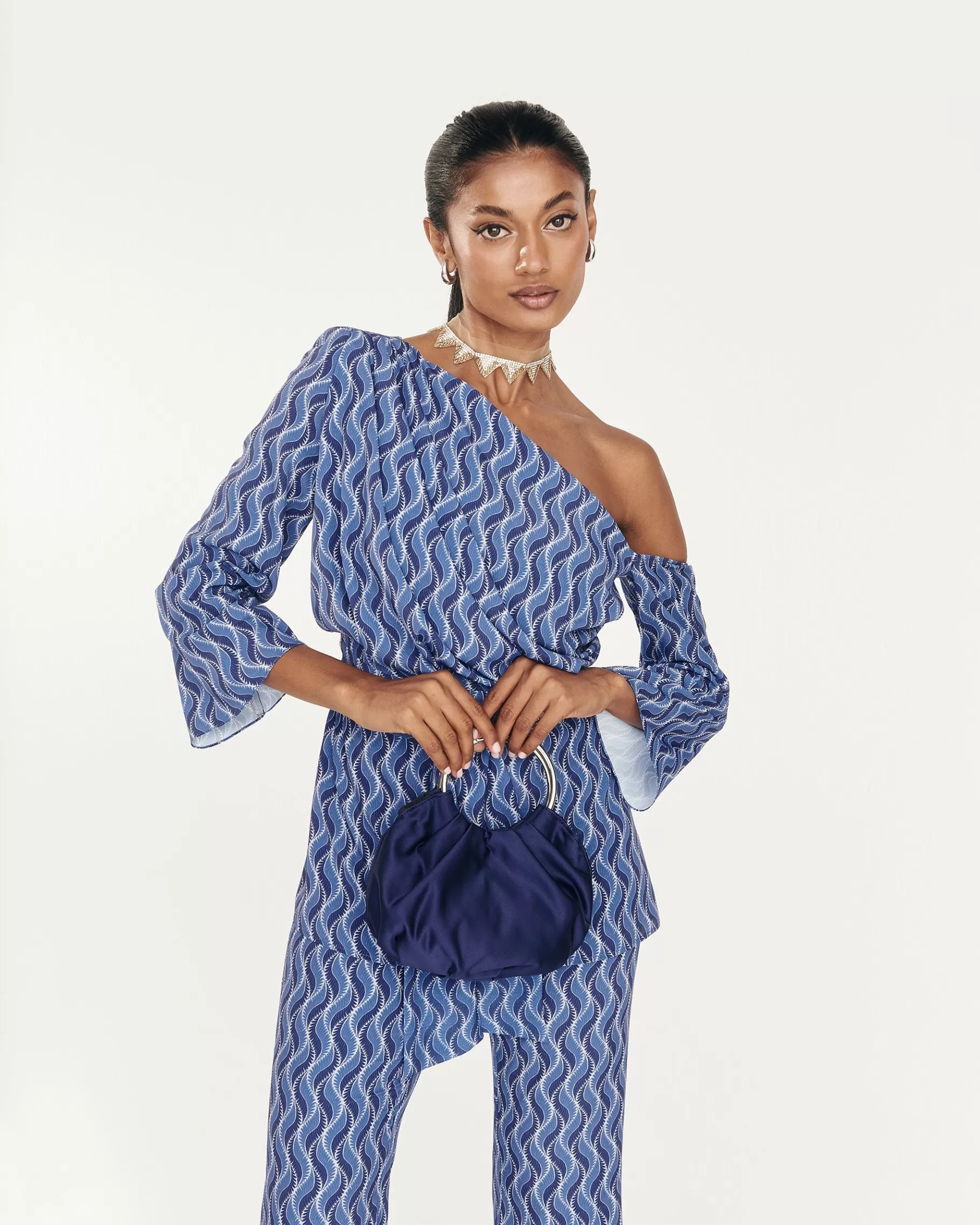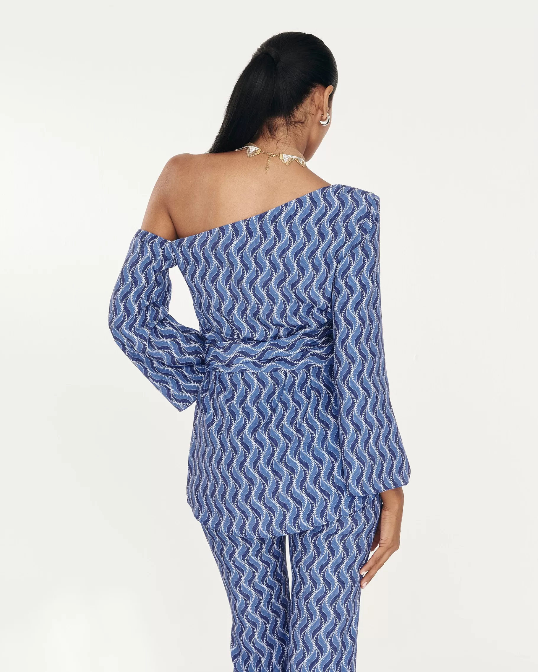 Blusa asimétrica con drapeado y lazada en la parte delantera.