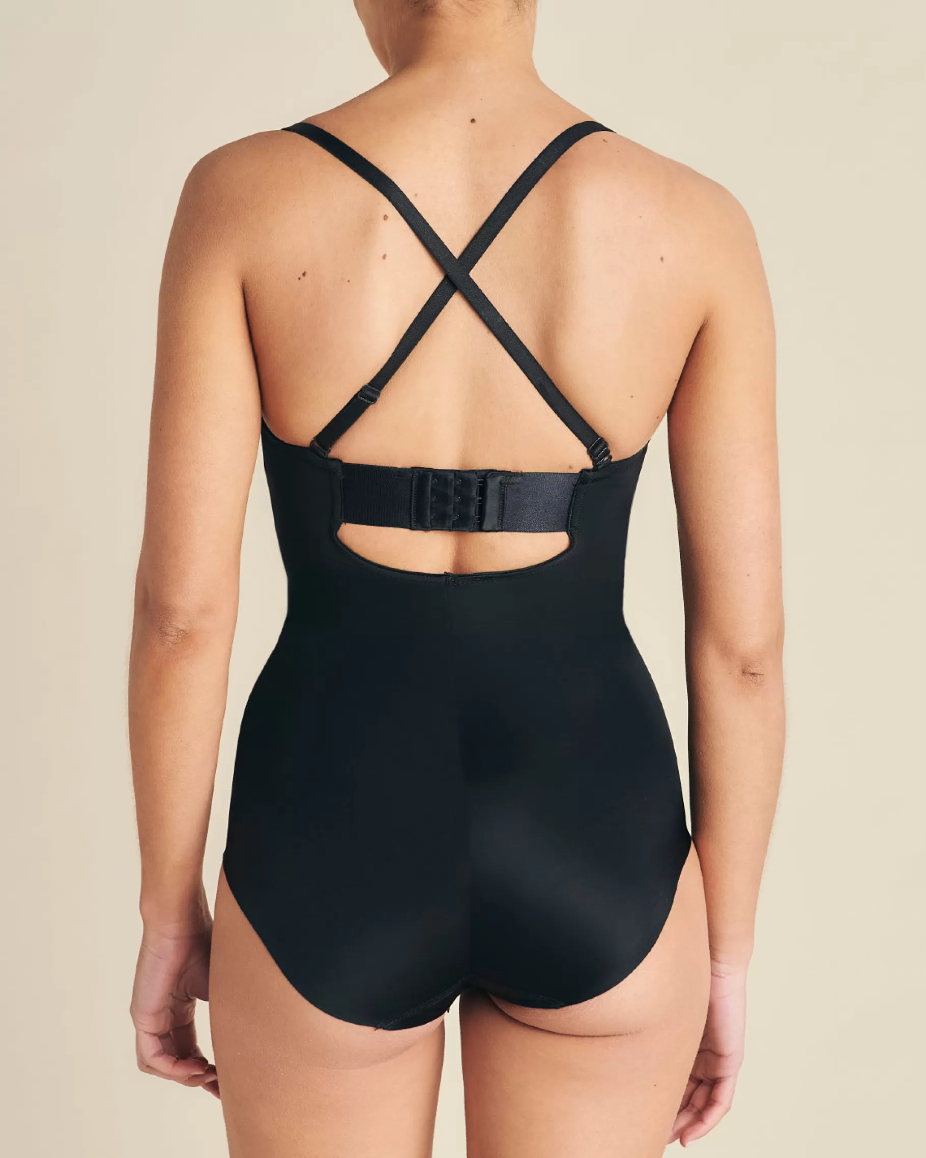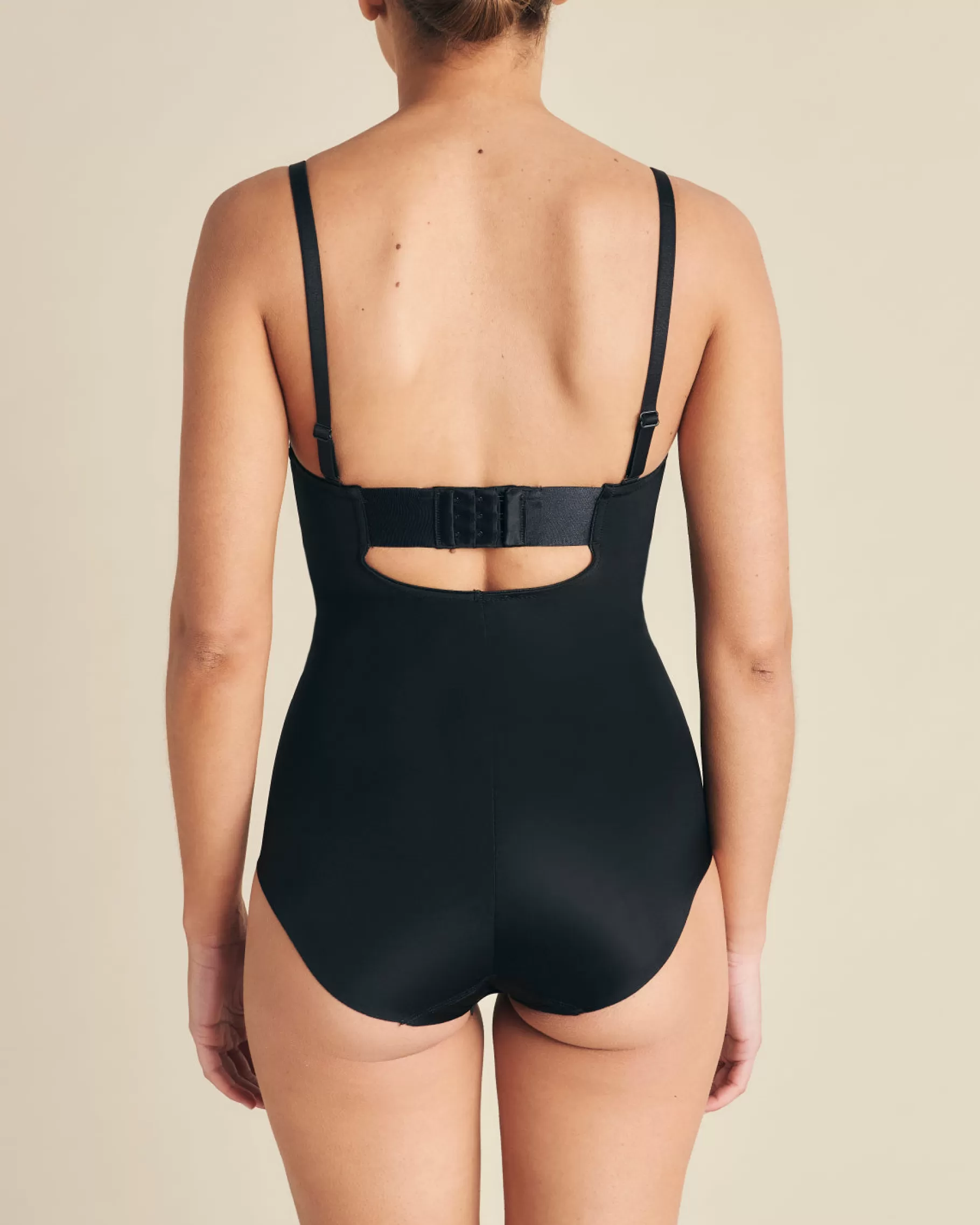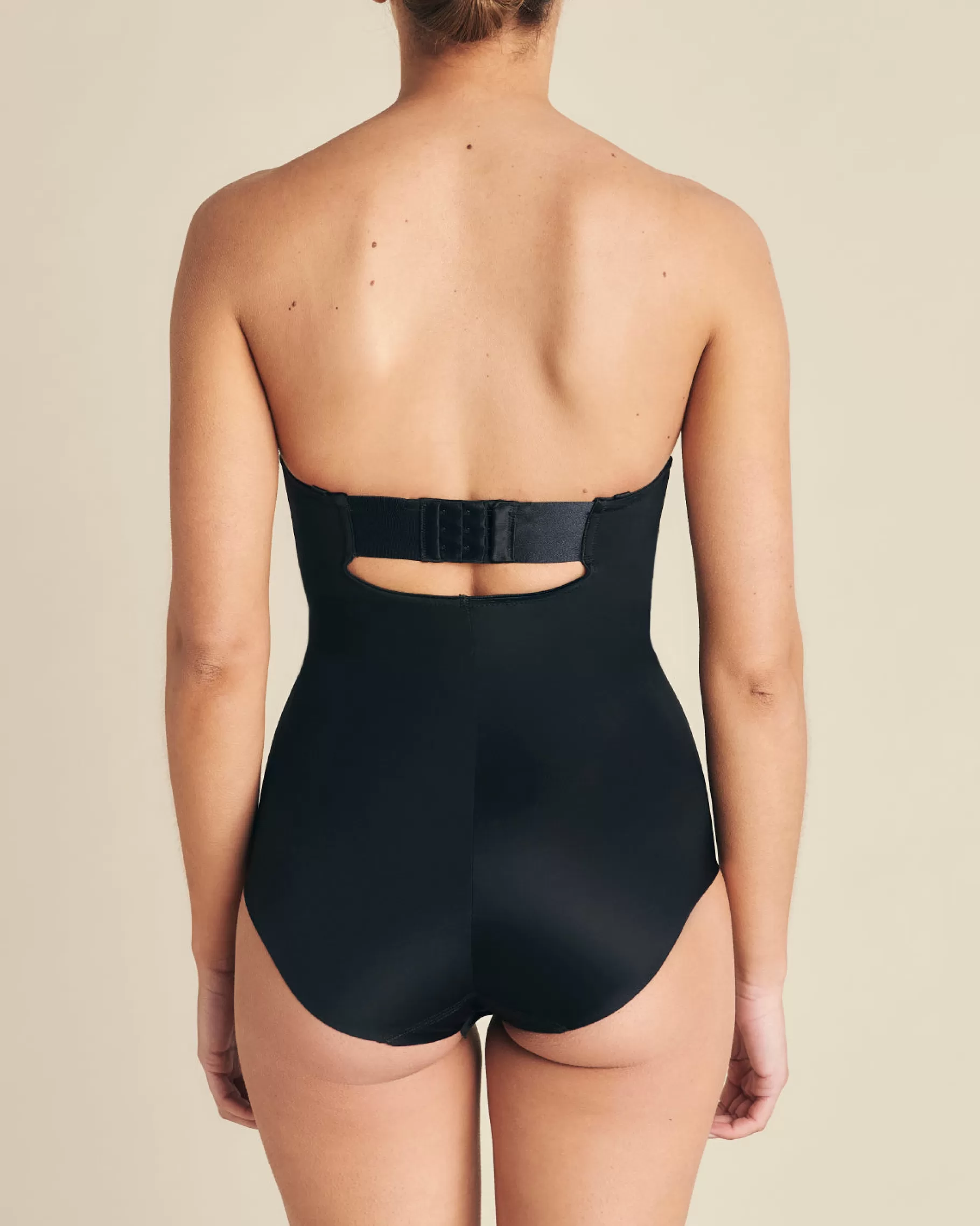 Body palabra de honor con efecto reductor y copas almohadilladas. Compresión en la zona del abdomen, caderas y glúteos. Tirantes extraíbles y ajustables para una sujeción mayor en la zona del pecho.