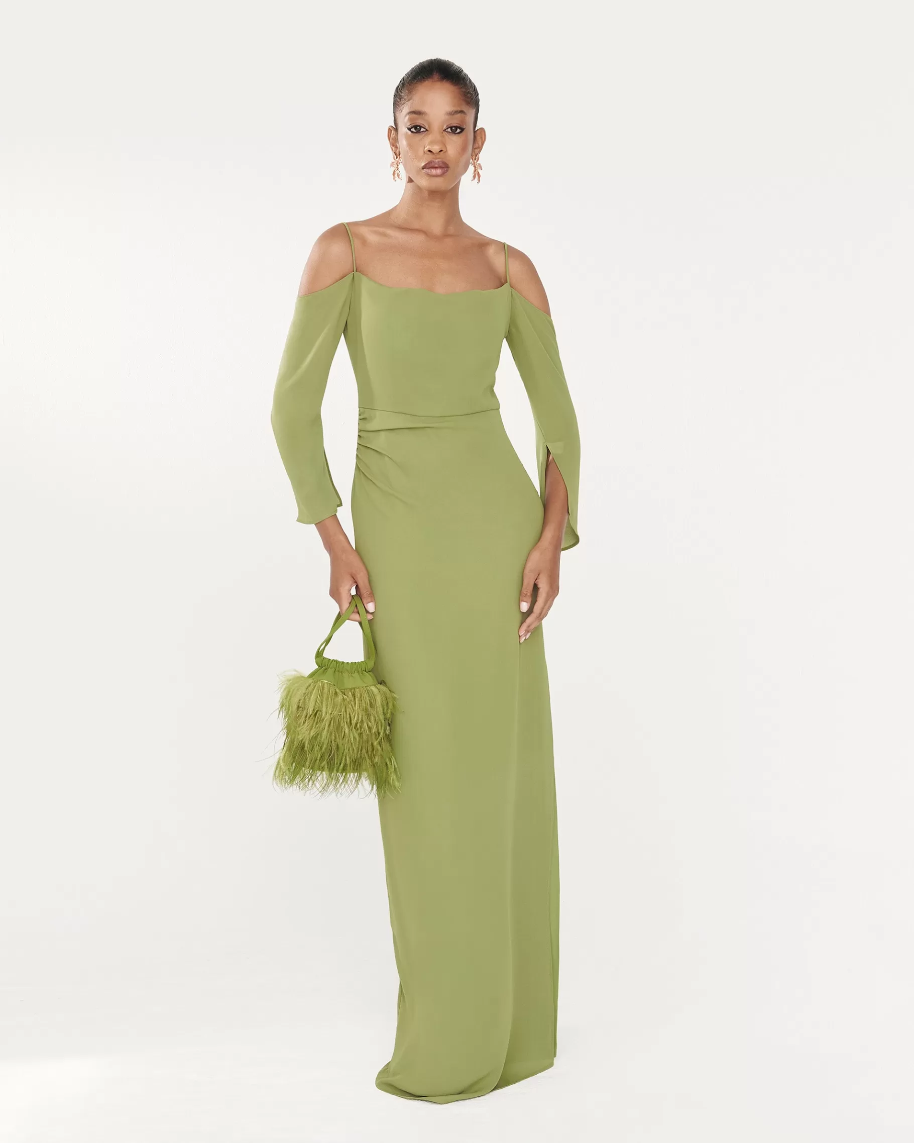 Bolso bombonera con cierre de cordones largos que se convierten en asas y detalle de plumas al tono.Elaborado de manera…