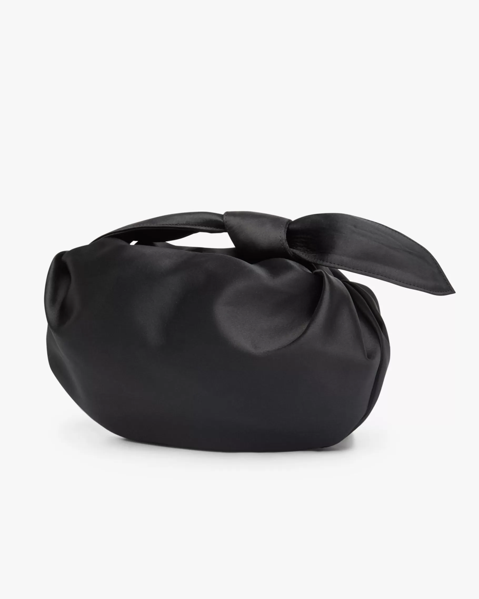 Bolso de mano con detalle de nudo en el asa y cierre mediante botón.