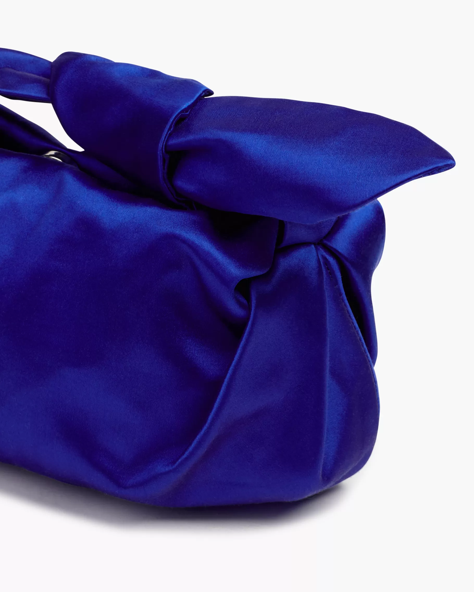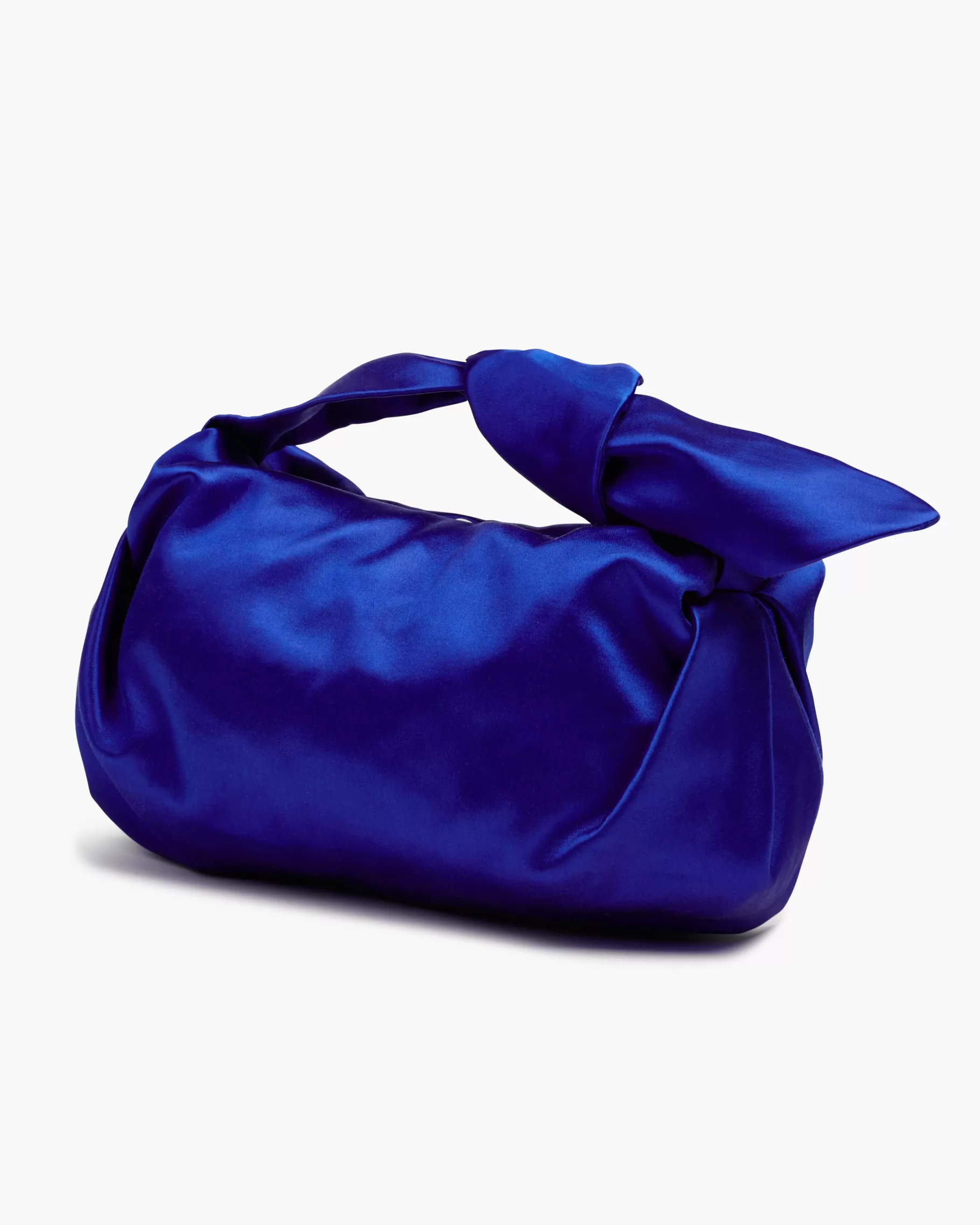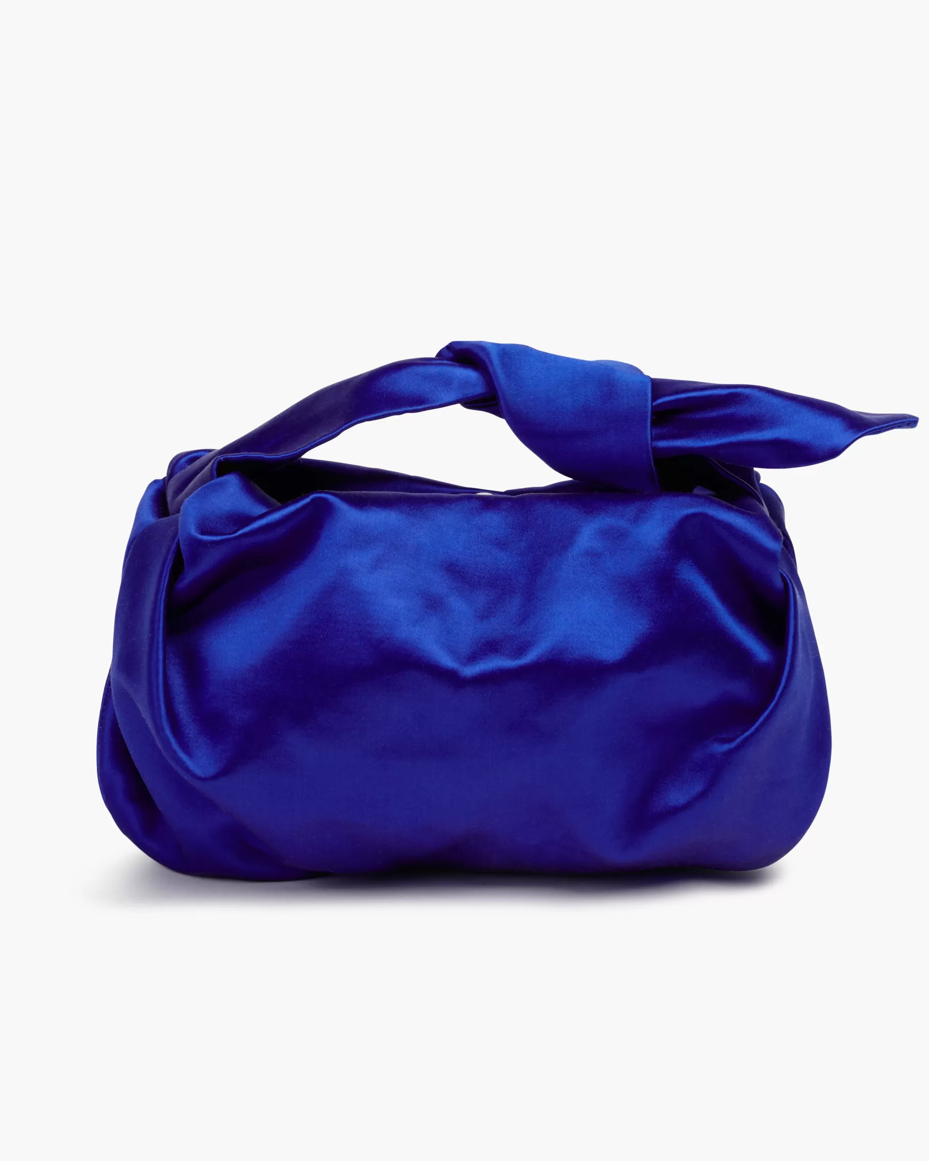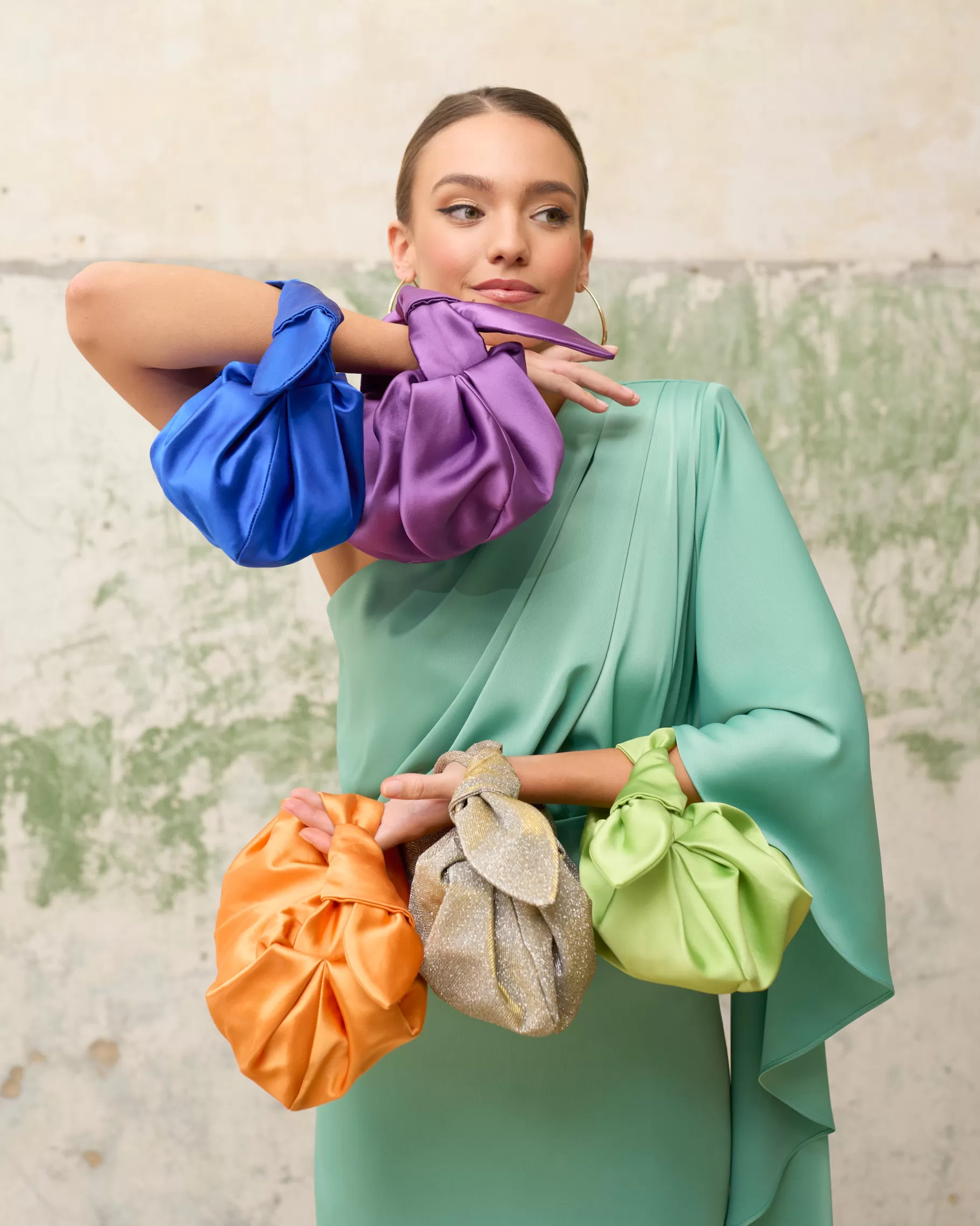 Bolso de mano con detalle de nudo en el asa y cierre mediante botón.