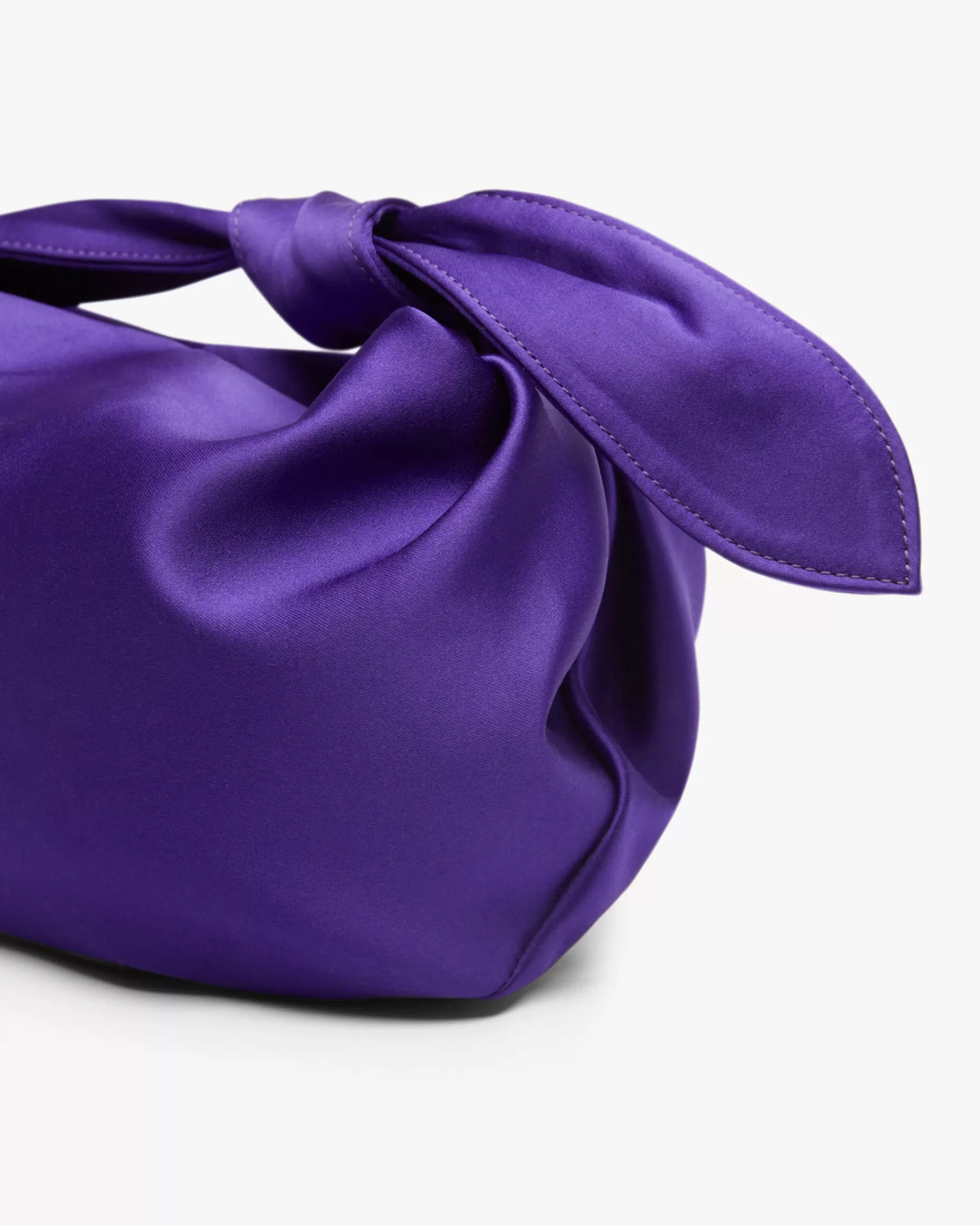 Bolso de mano con detalle de nudo en el asa y cierre mediante botón.