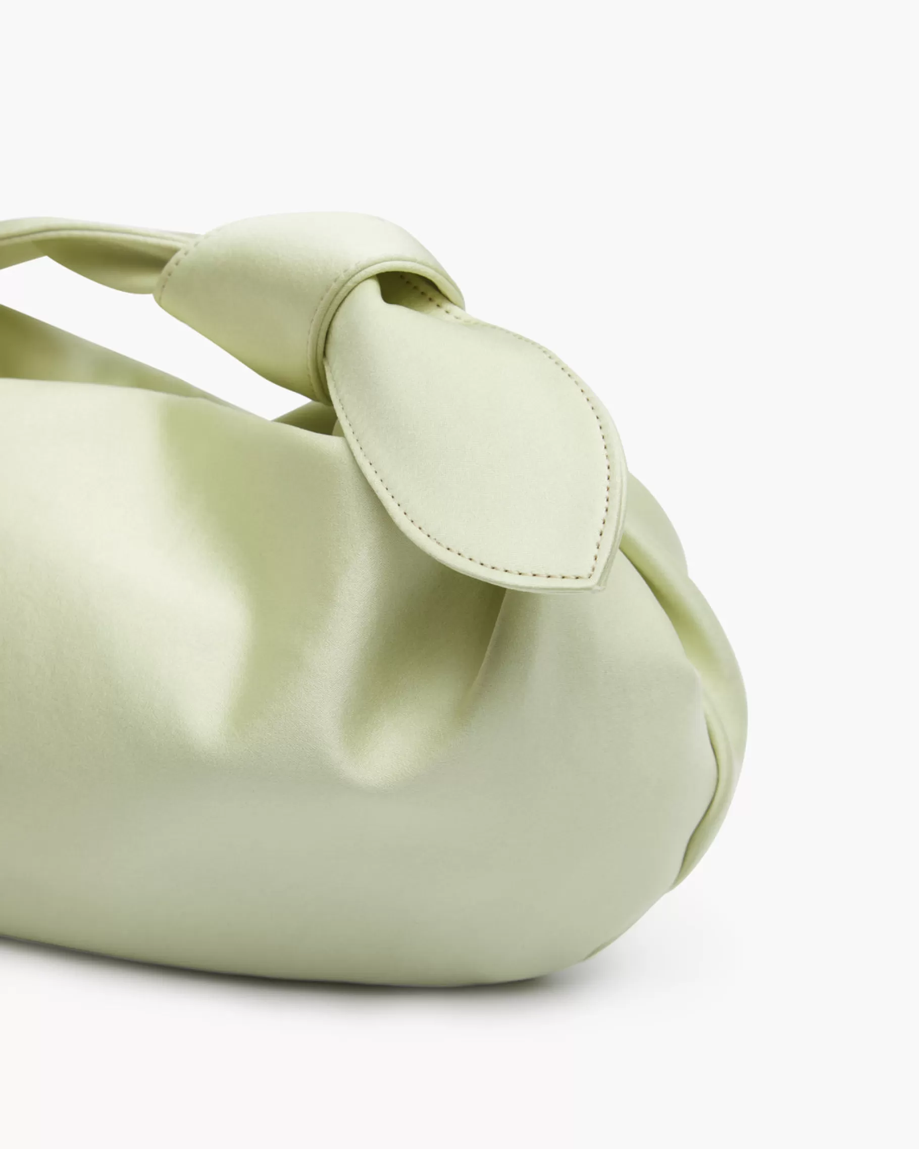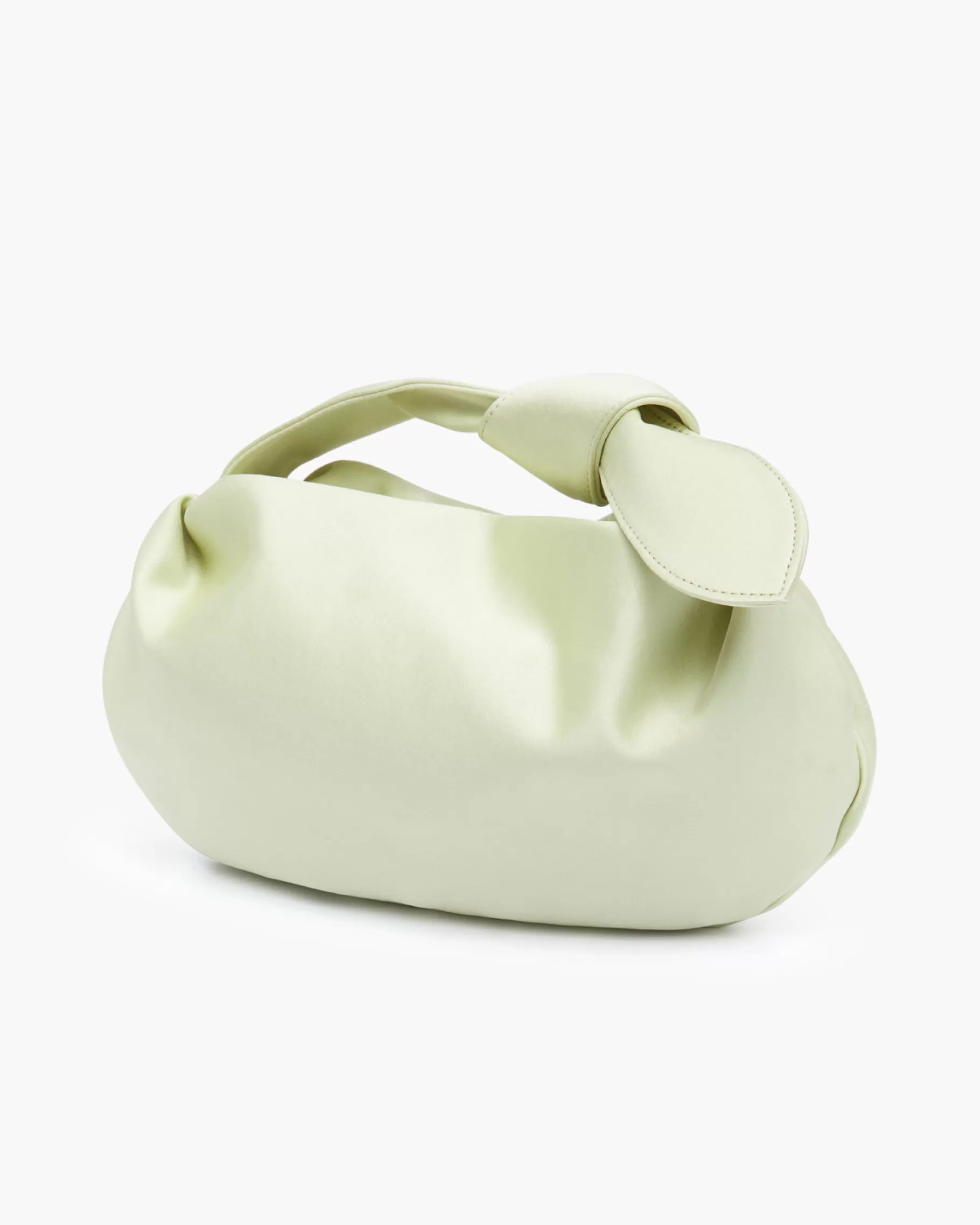 Bolso de mano con detalle de nudo en el asa y cierre mediante botón.