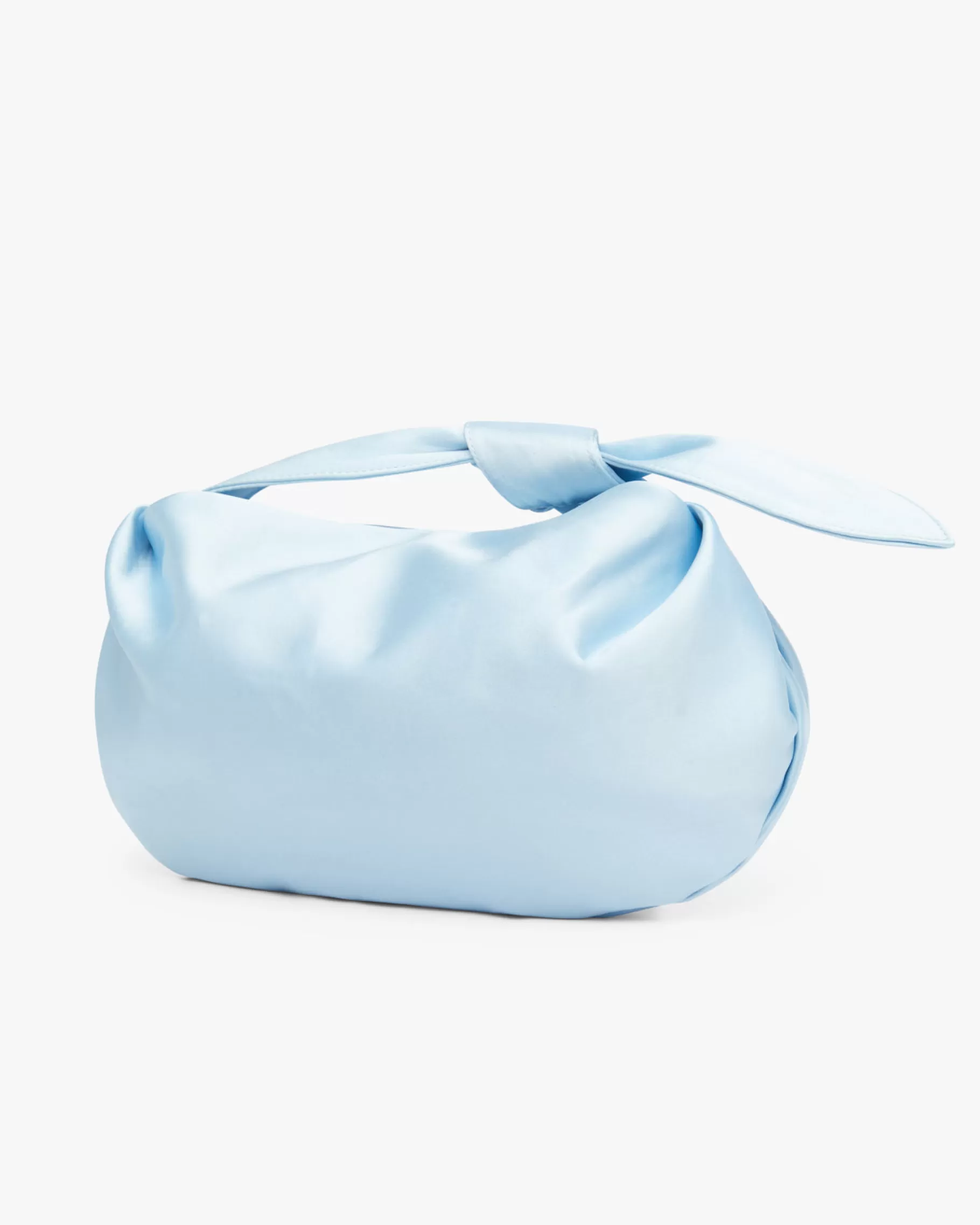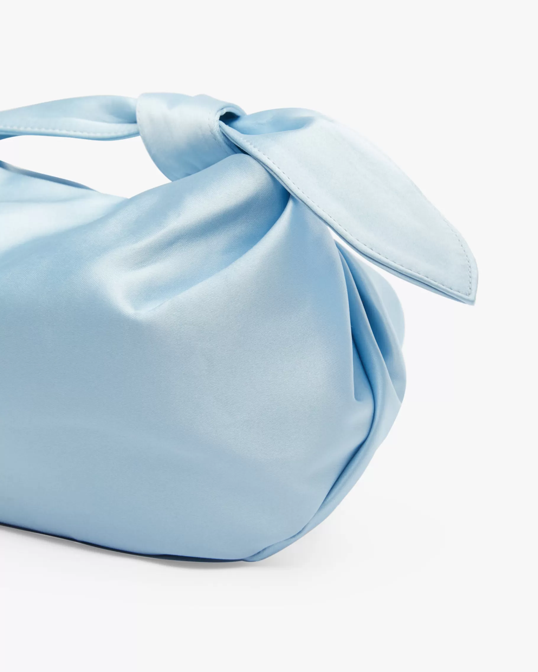 Bolso de mano con detalle de nudo en el asa y cierre mediante botón.
