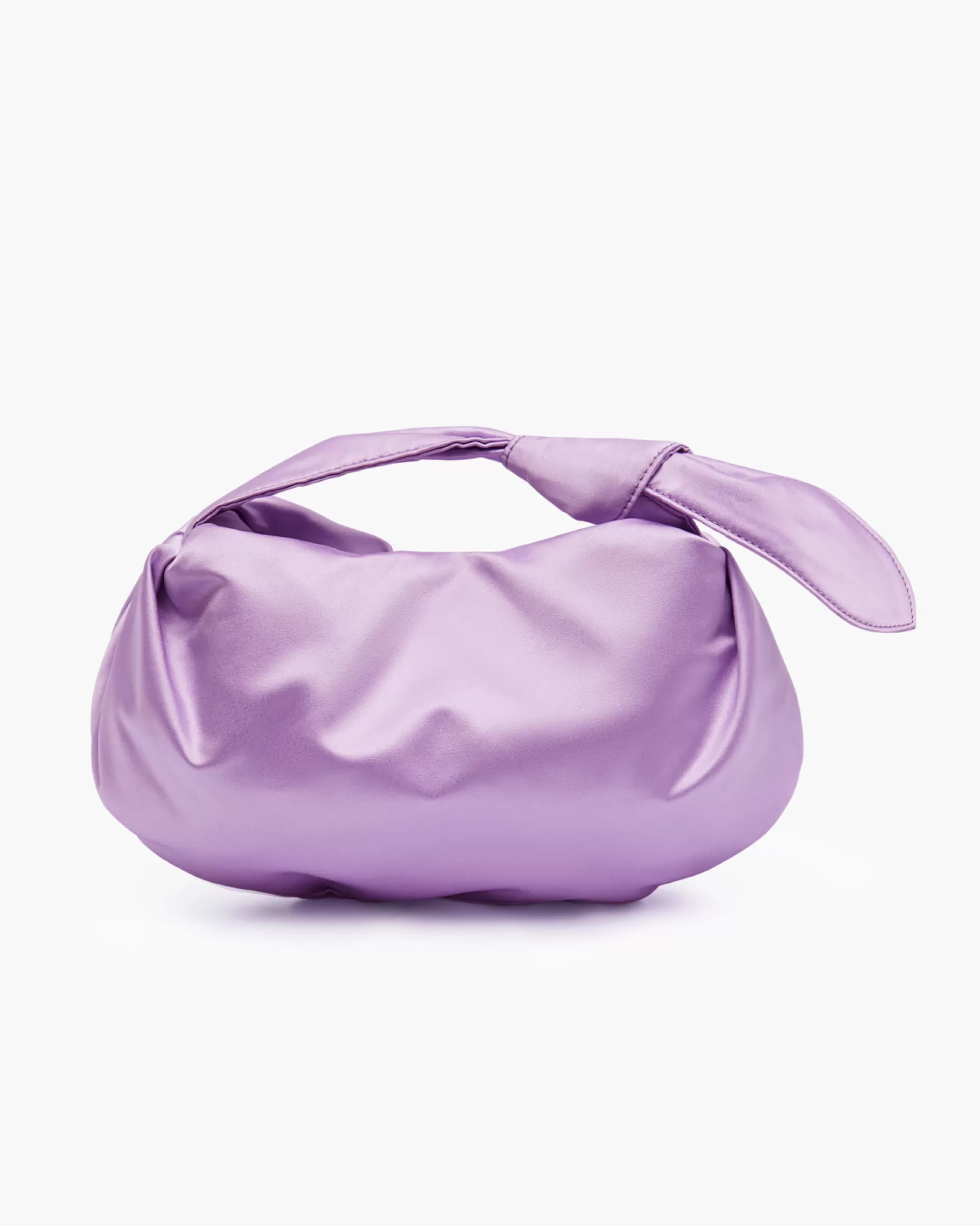 Bolso de mano con detalle de nudo en el asa y cierre mediante botón. Medidas: 25 cm de ancho x 15 cm de alto.Elaborado…