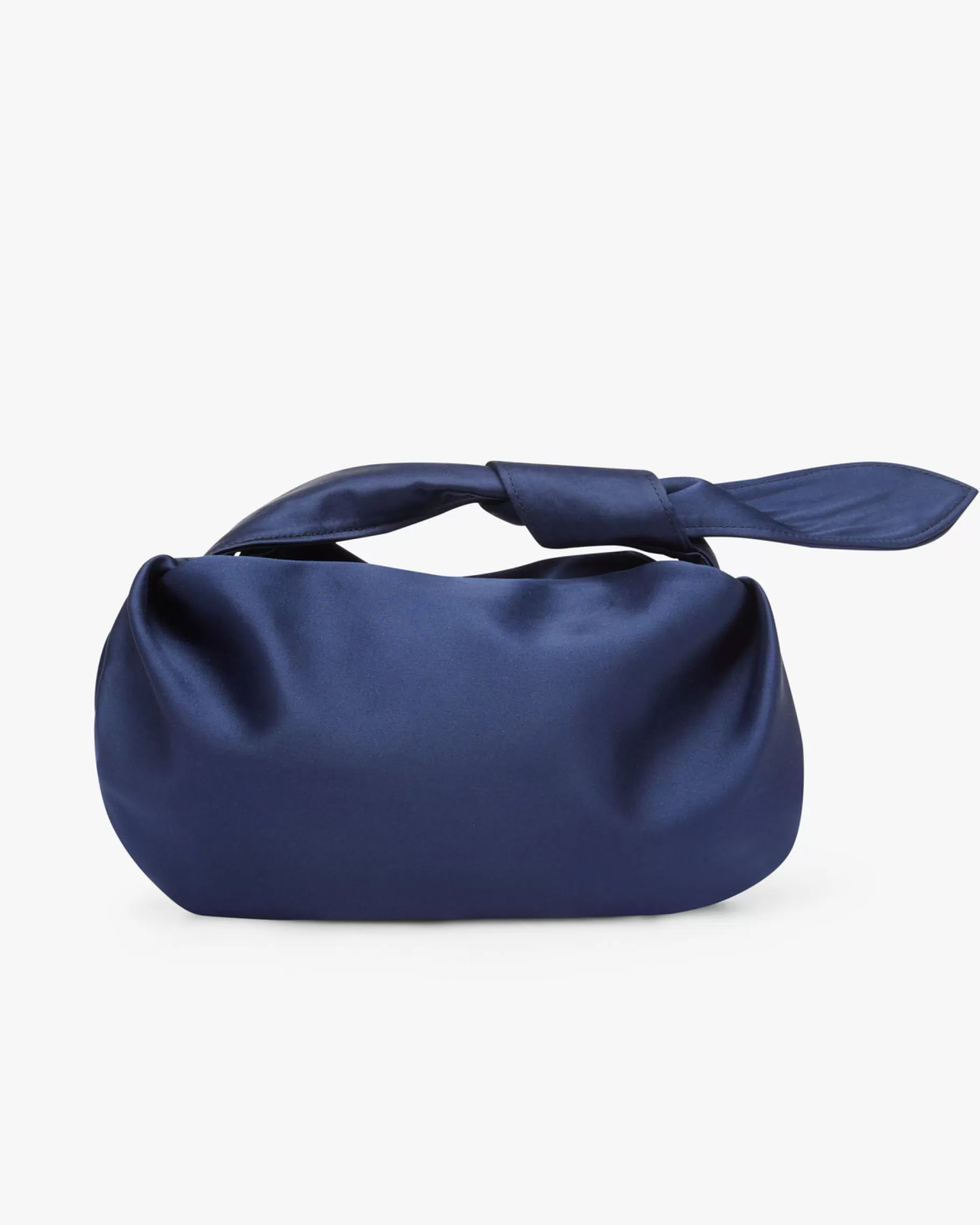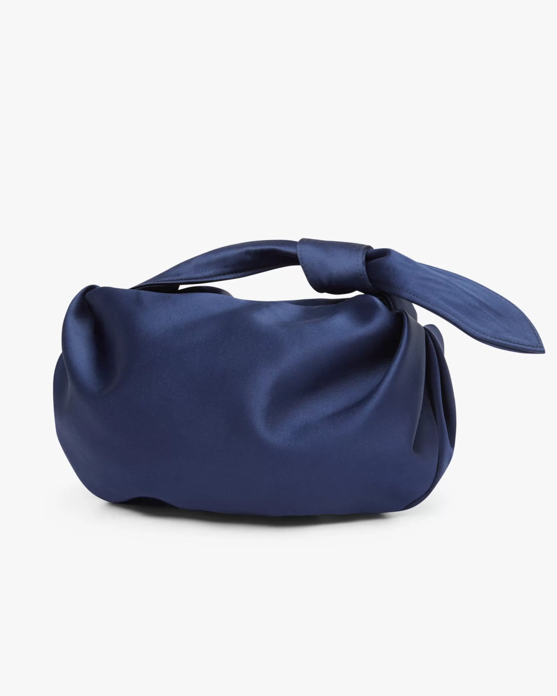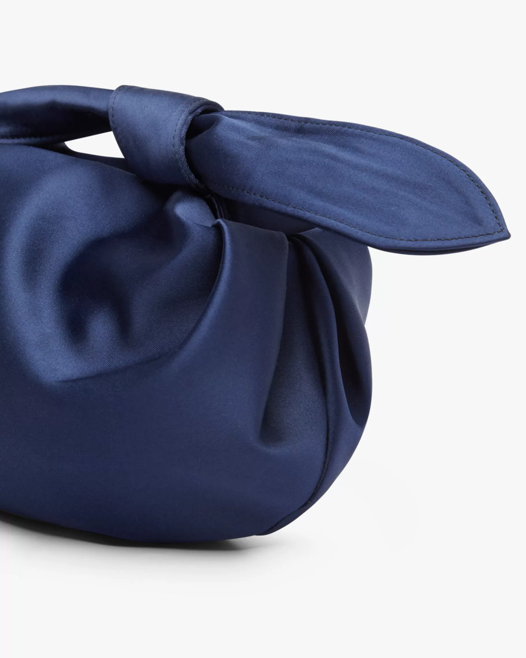 Bolso de mano con detalle de nudo en el asa y cierre mediante botón.
