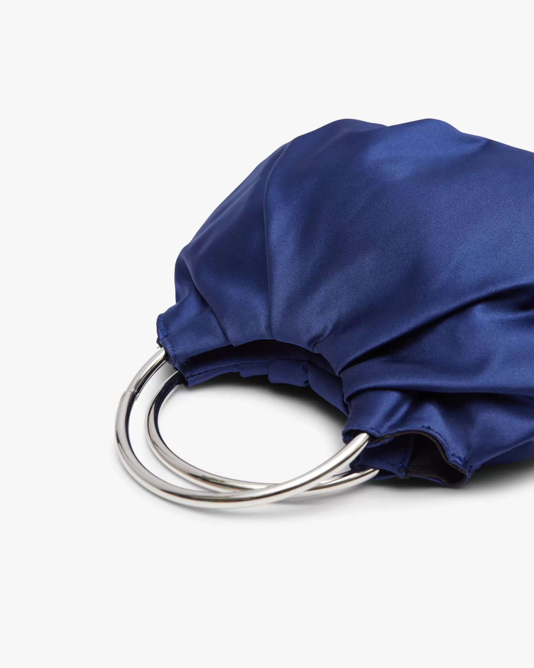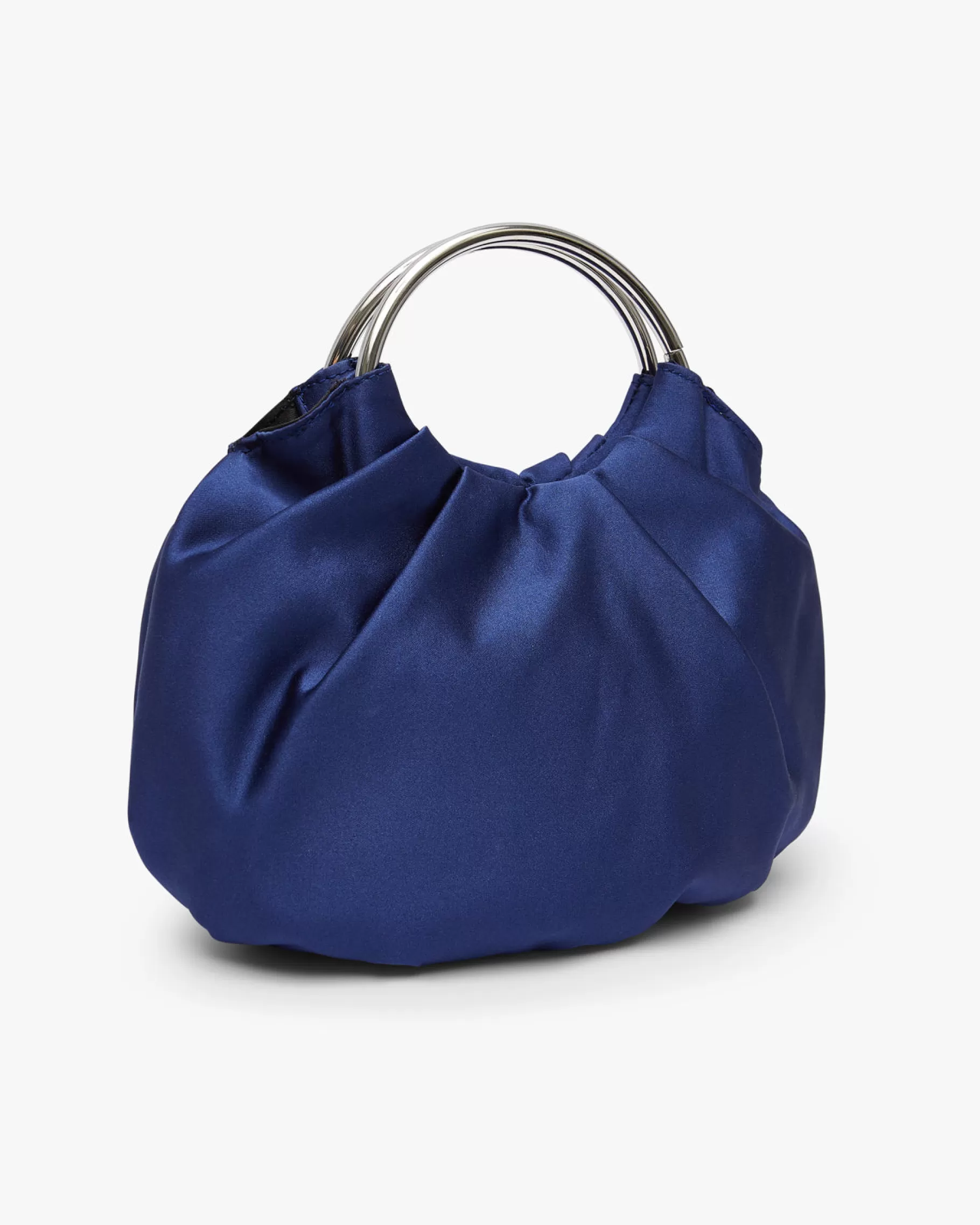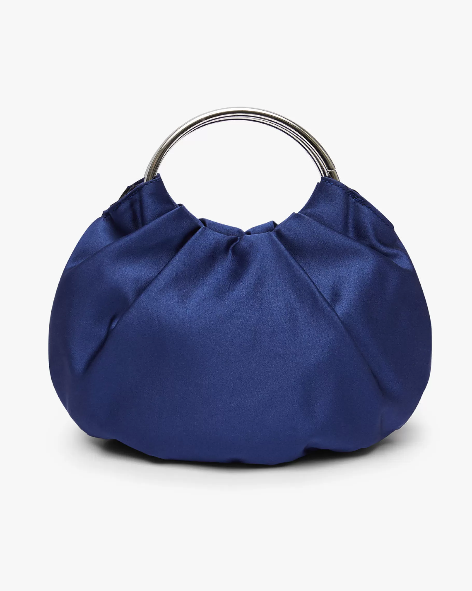 Bolso de mano con asa metálica y cierre mediante botón.Medidas: 12 cm de ancho x 19 cm de alto sin anilla y 27 cm con …