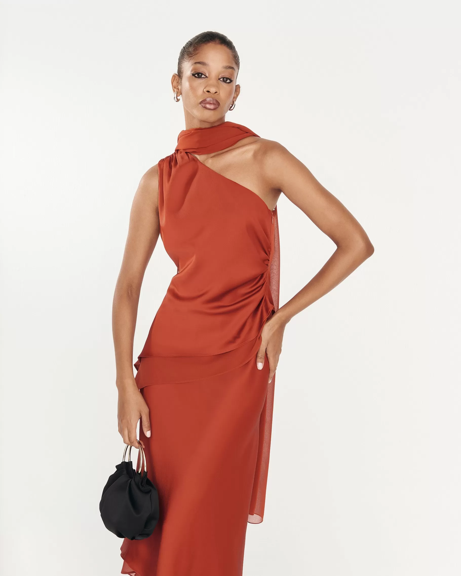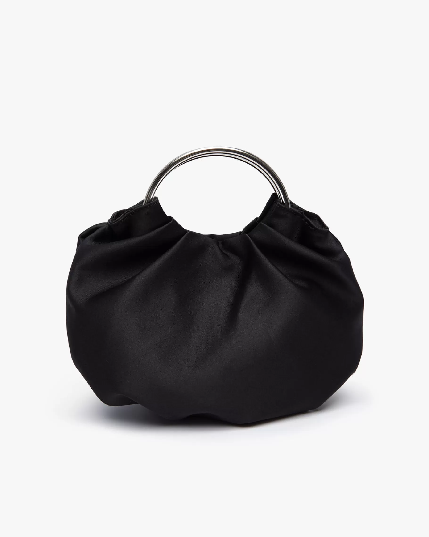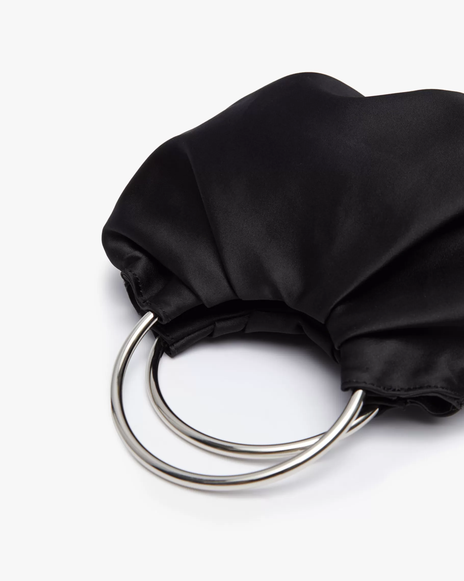 Bolso de mano con asa metálica y cierre mediante botón.Medidas: 12 cm de ancho x 19 cm de alto sin anilla y 27 cm con …