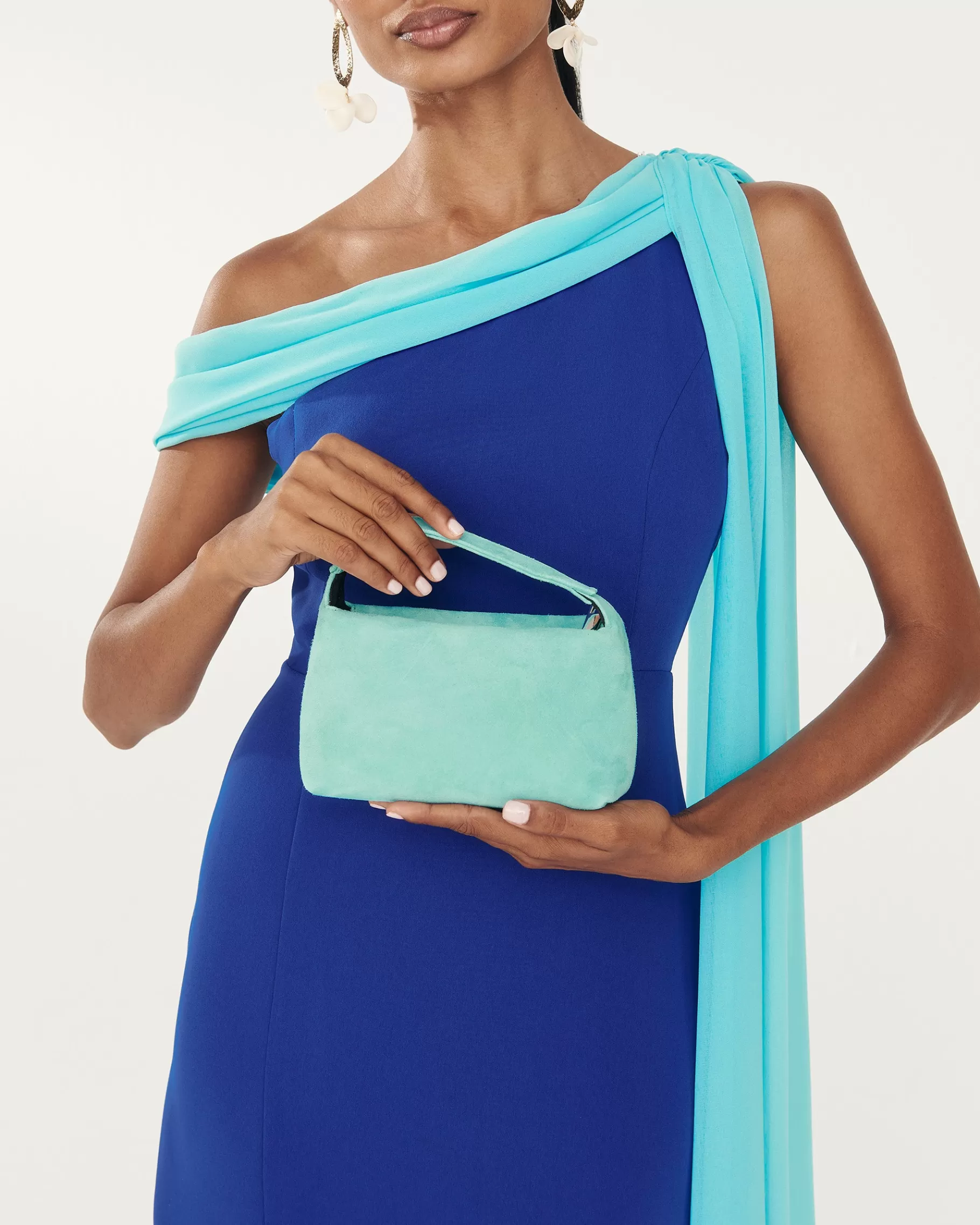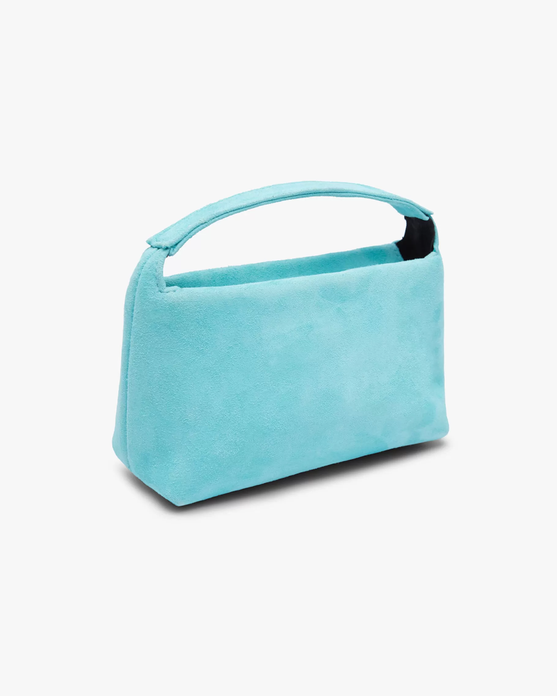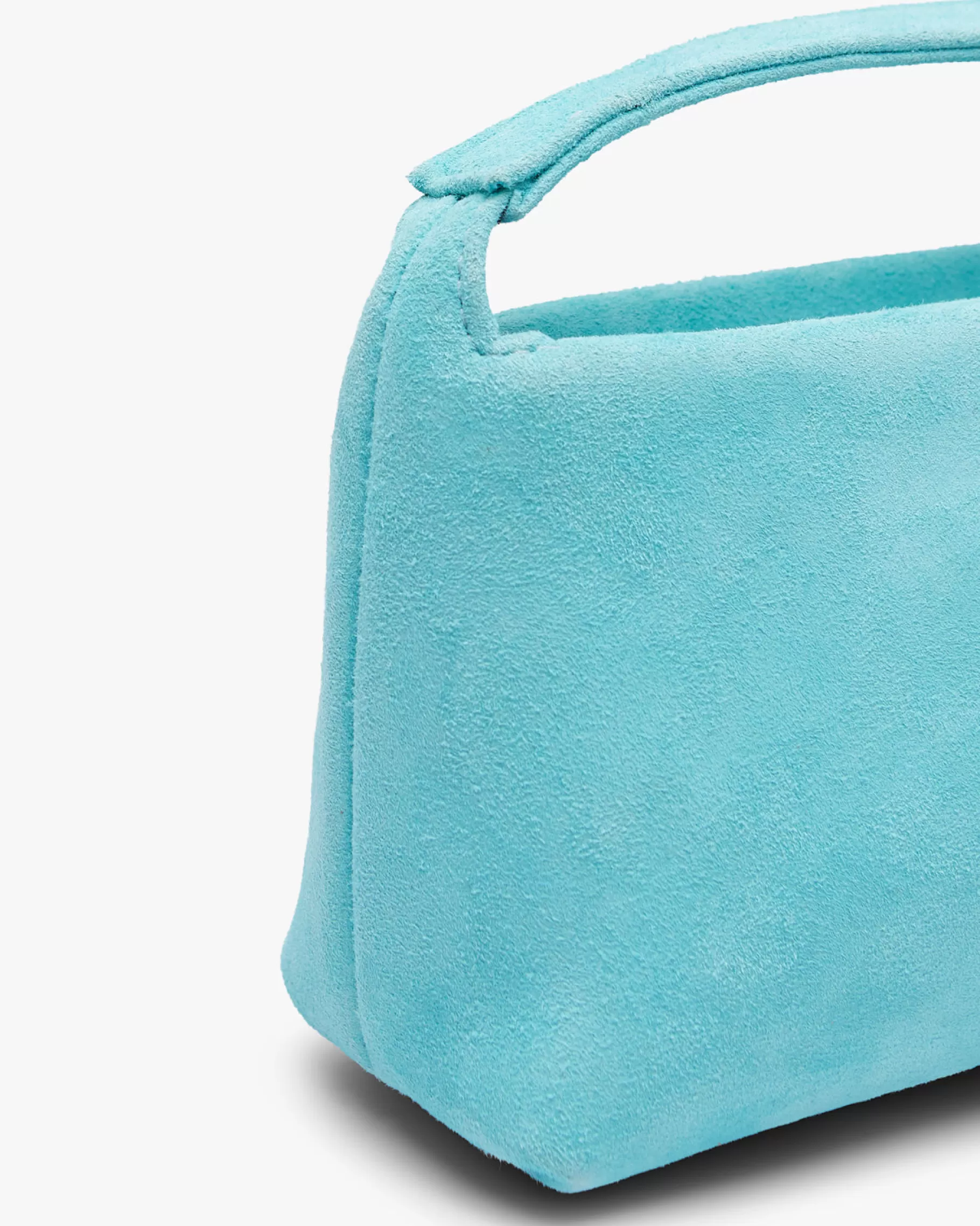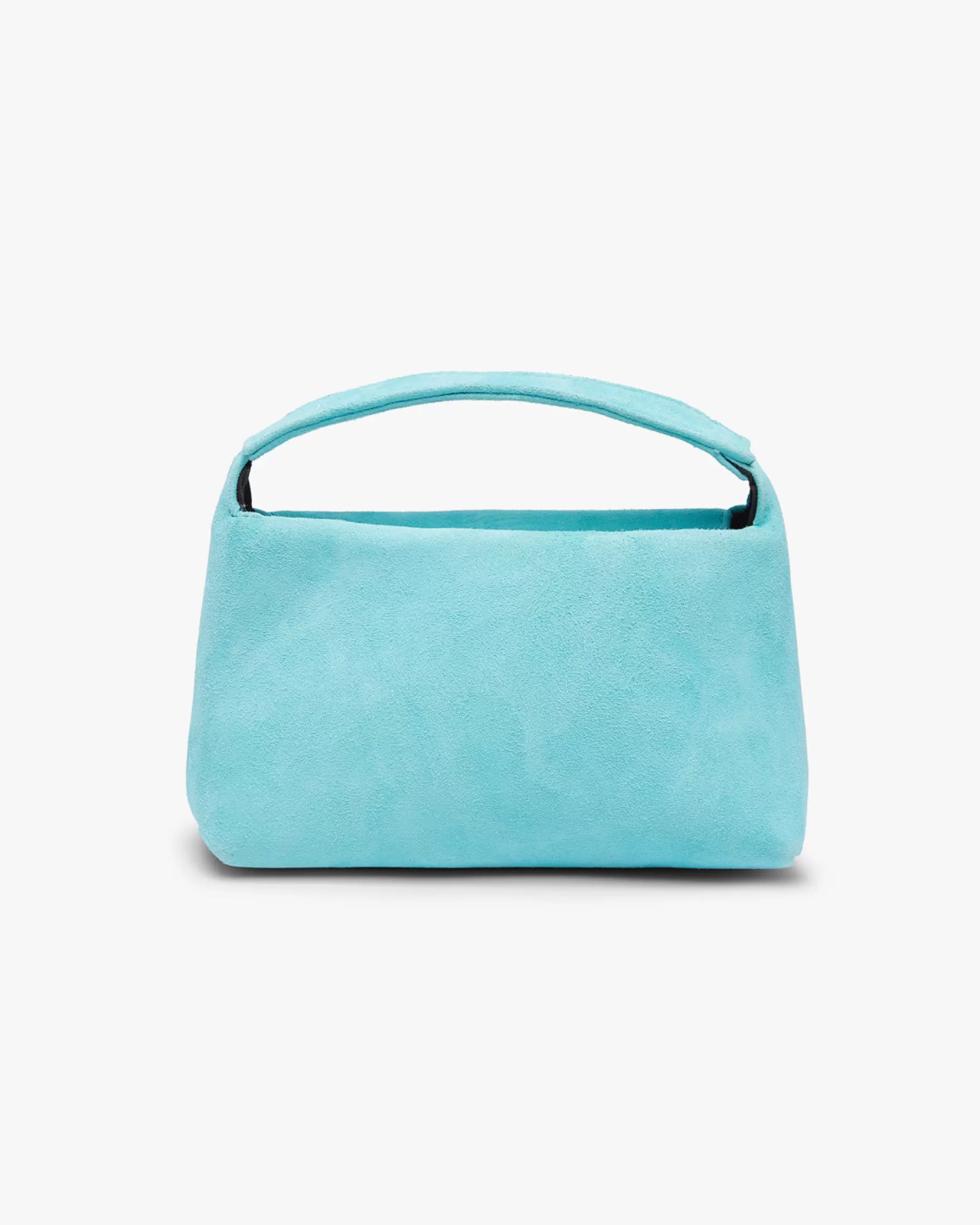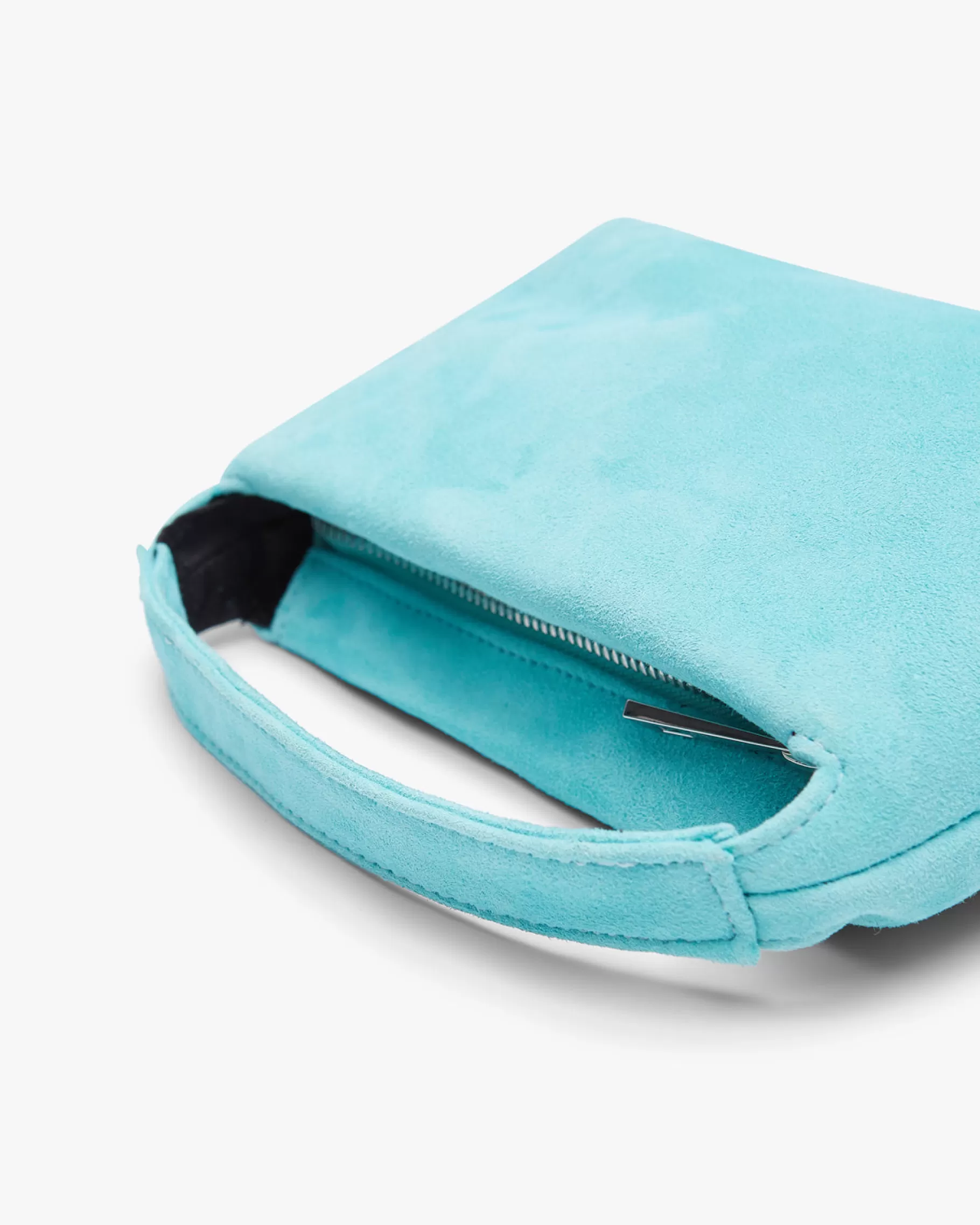 Bolso rectangular pequeño con asa de mano y cierre con cremallera.