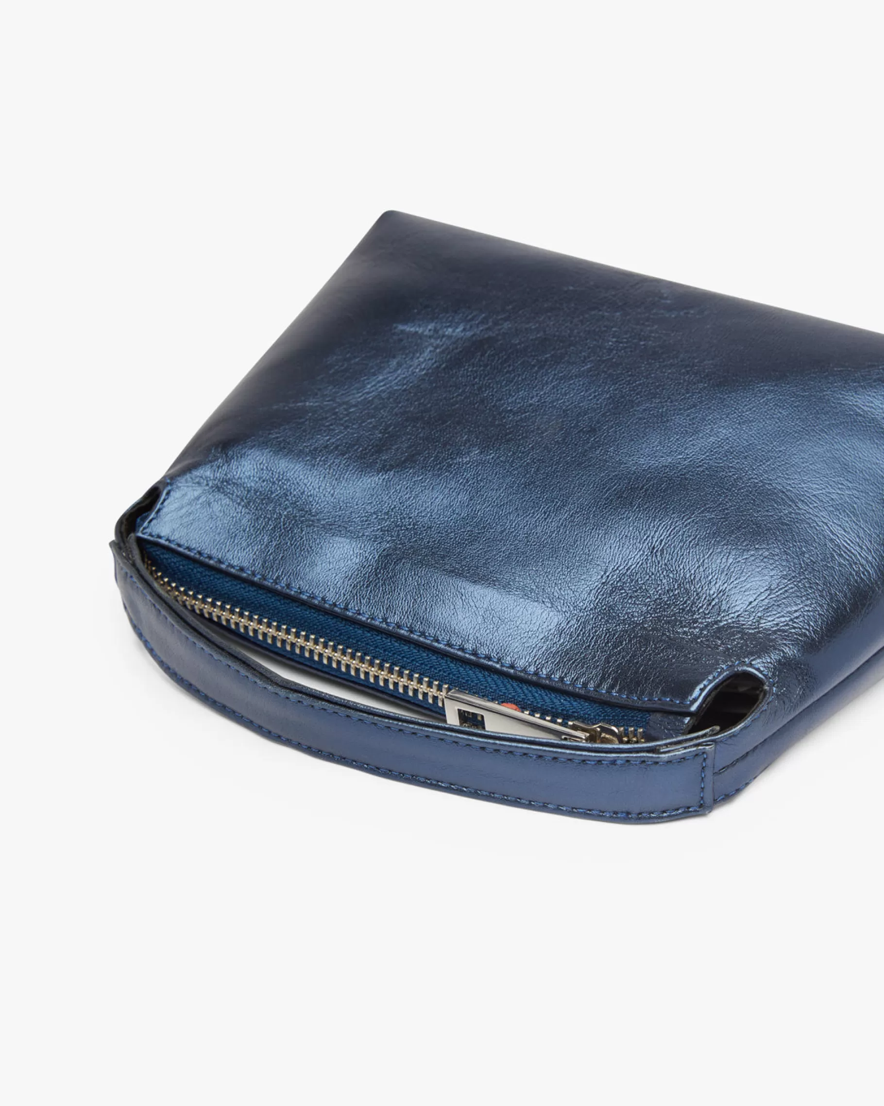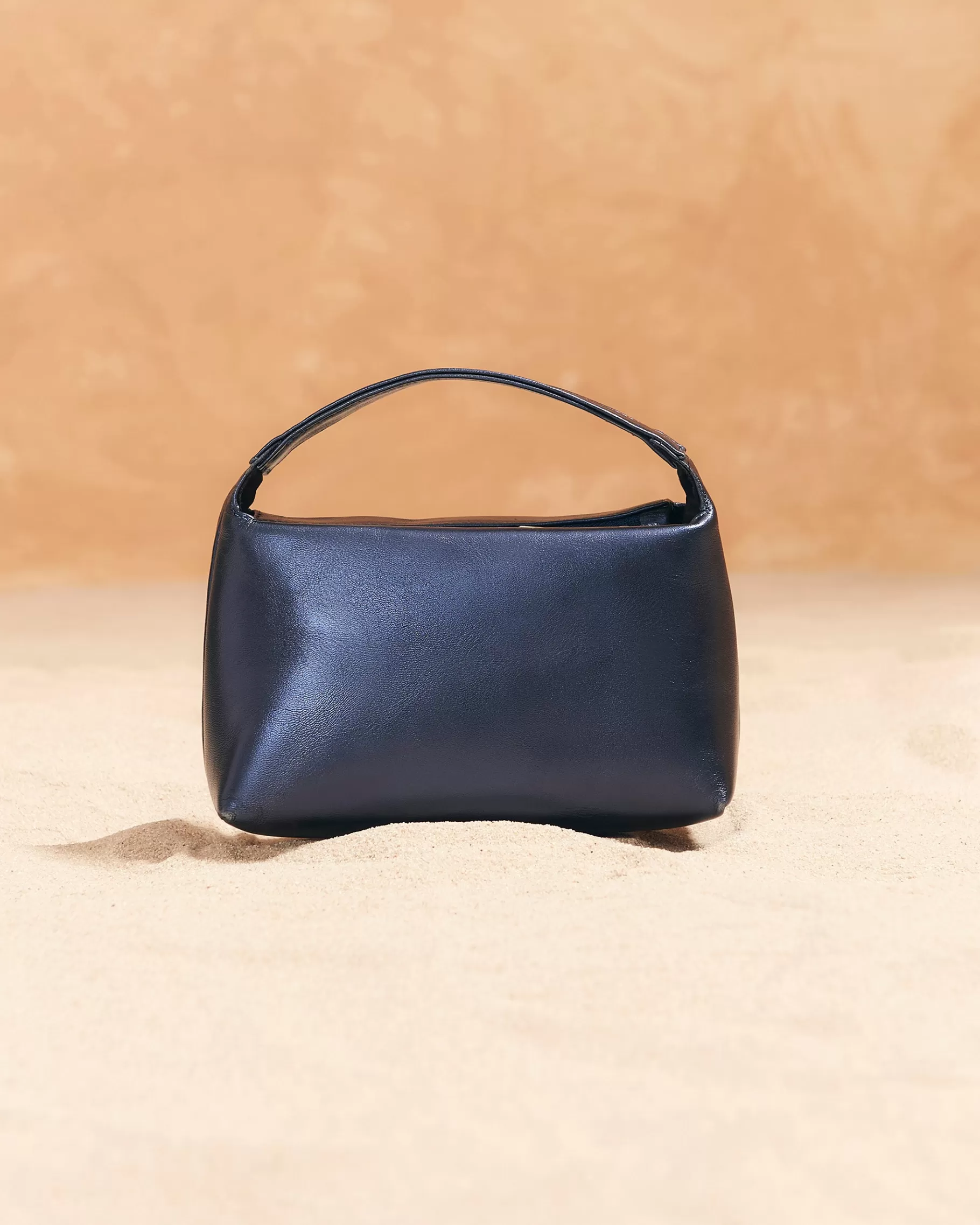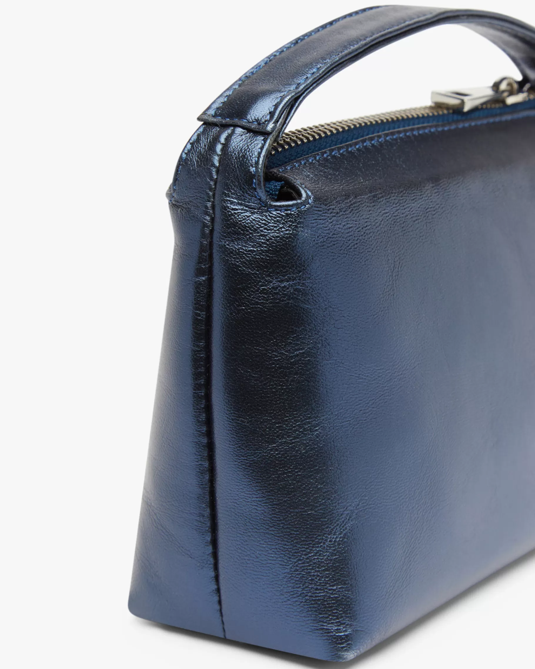 Bolso rectangular pequeño con asa de mano y cierre con cremallera.