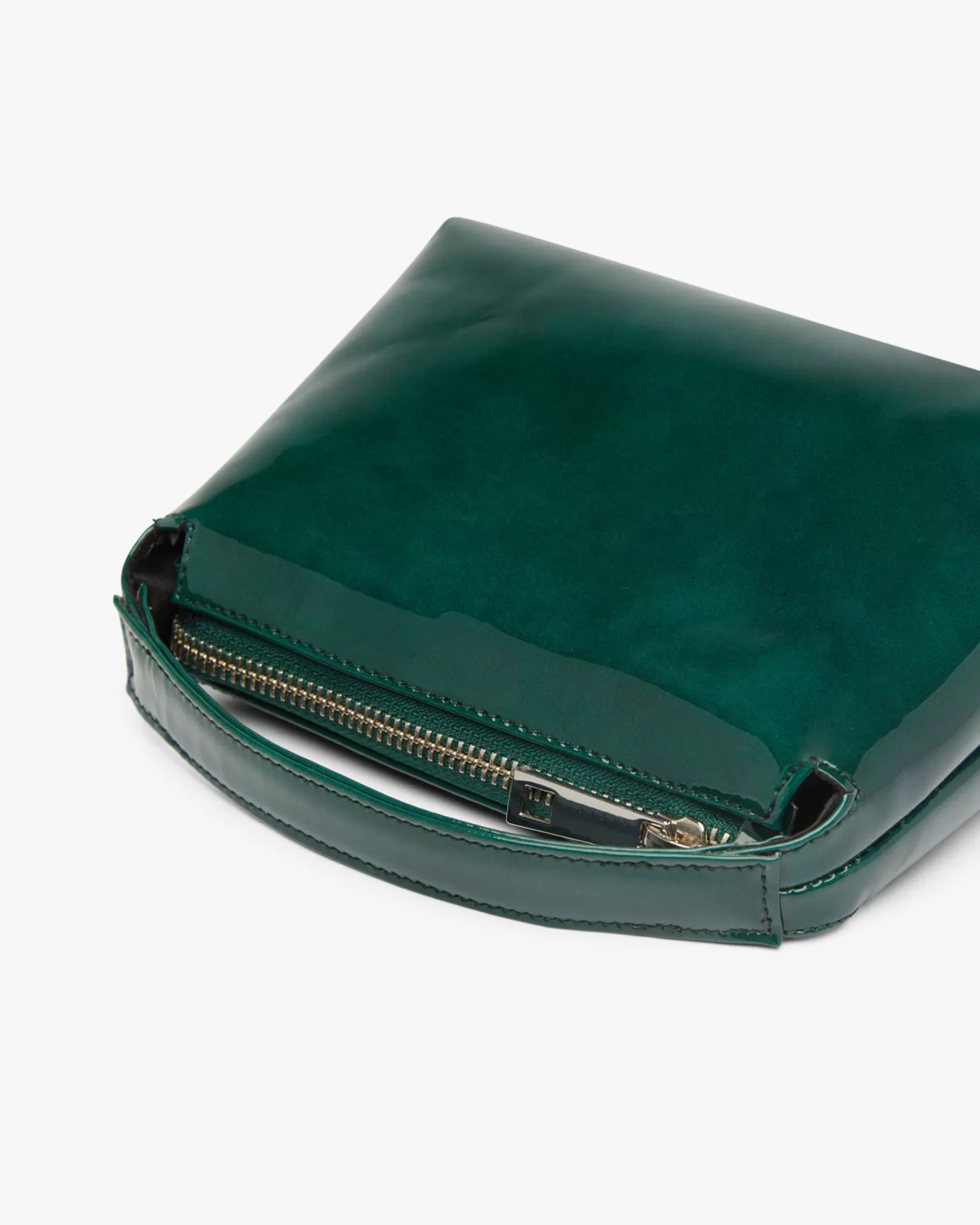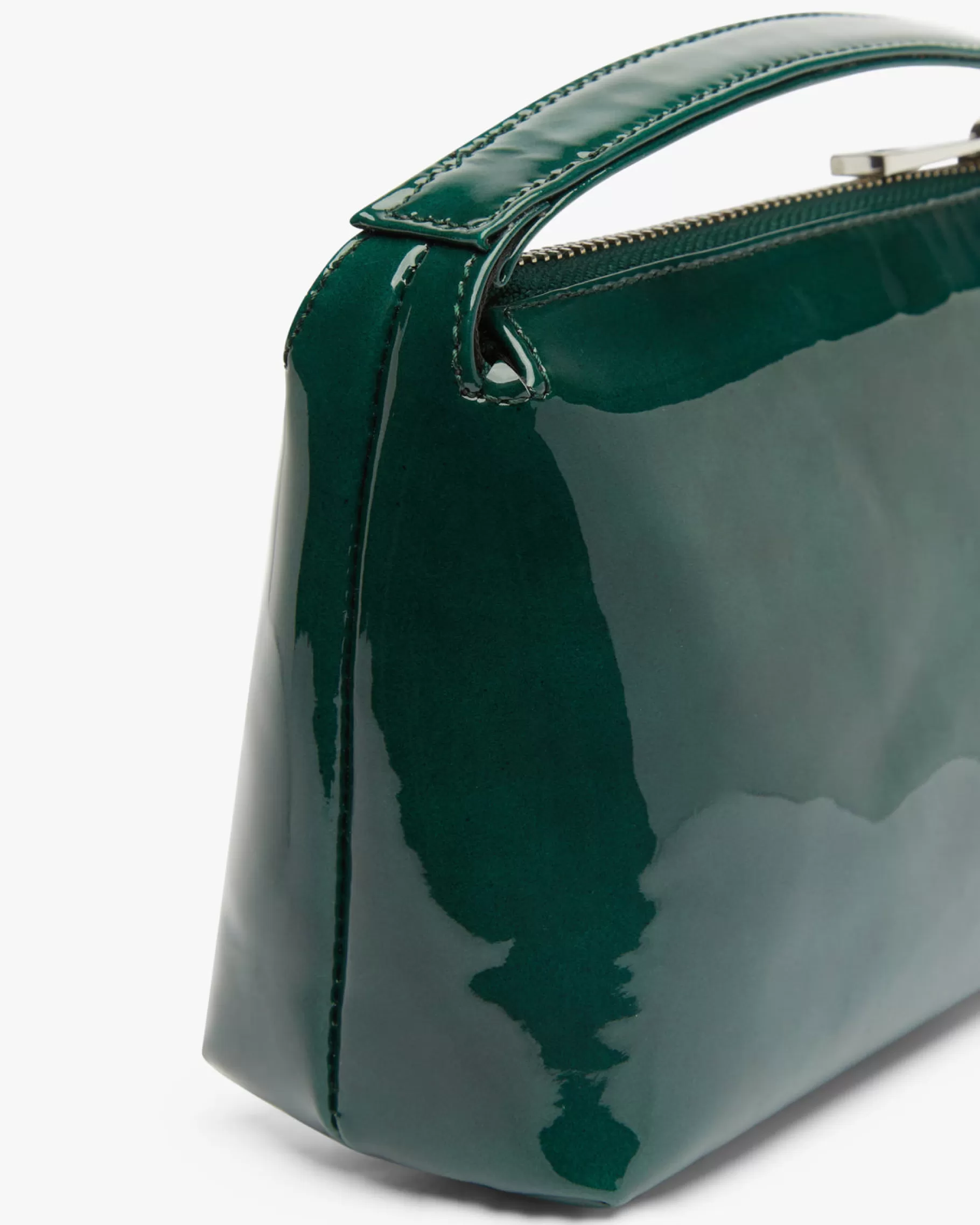 Bolso rectangular pequeño con asa de mano y cierre con cremallera.