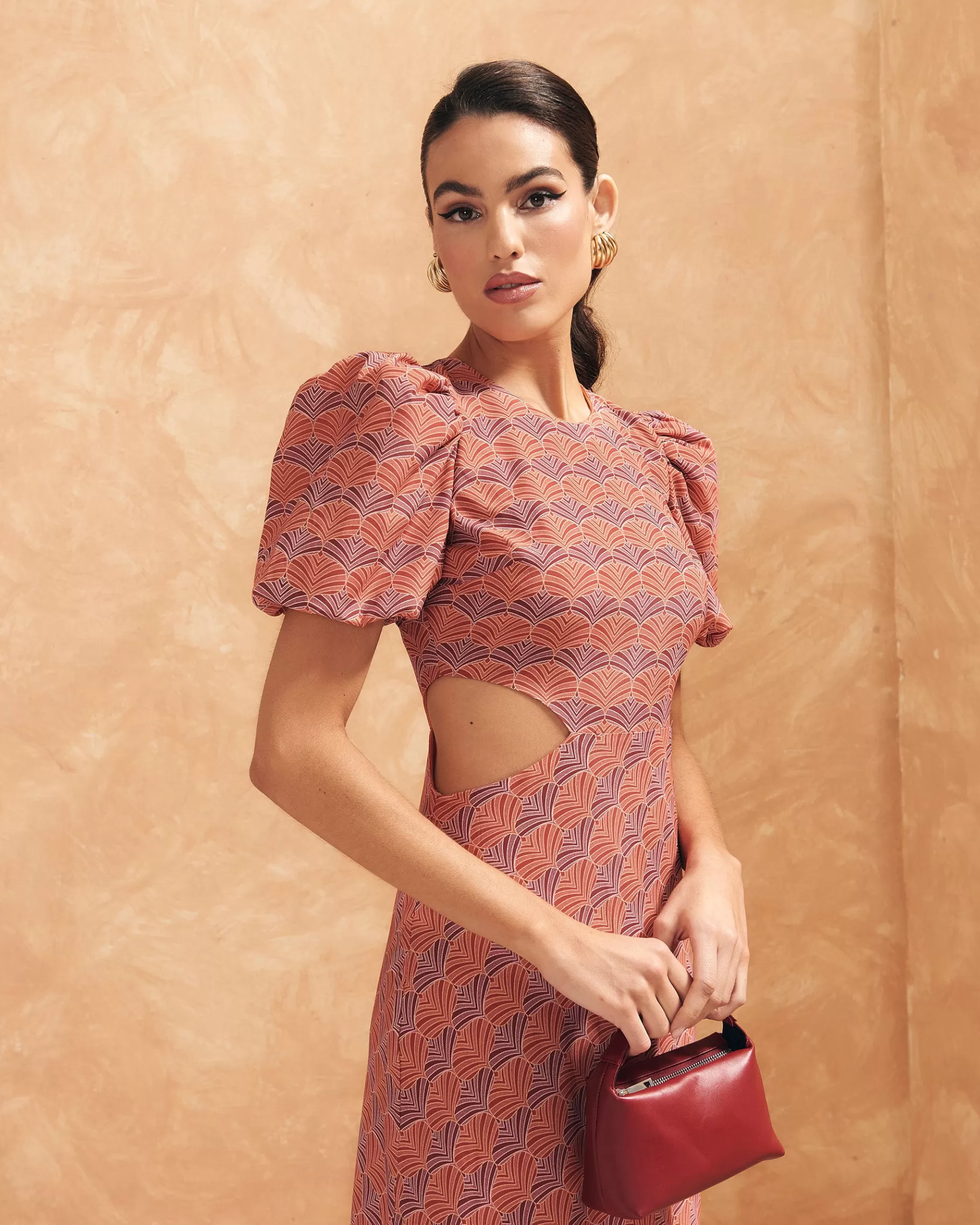 Bolso rectangular pequeño con asa de mano y cierre con cremallera.