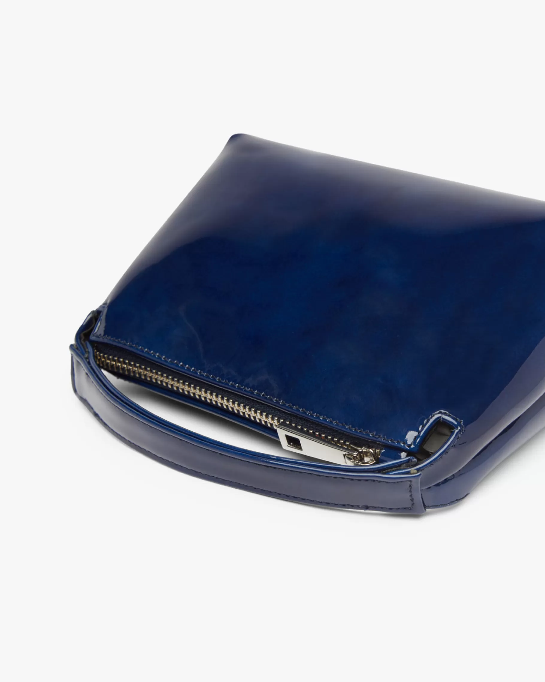 Bolso rectangular pequeño con asa de mano y cierre con cremallera.