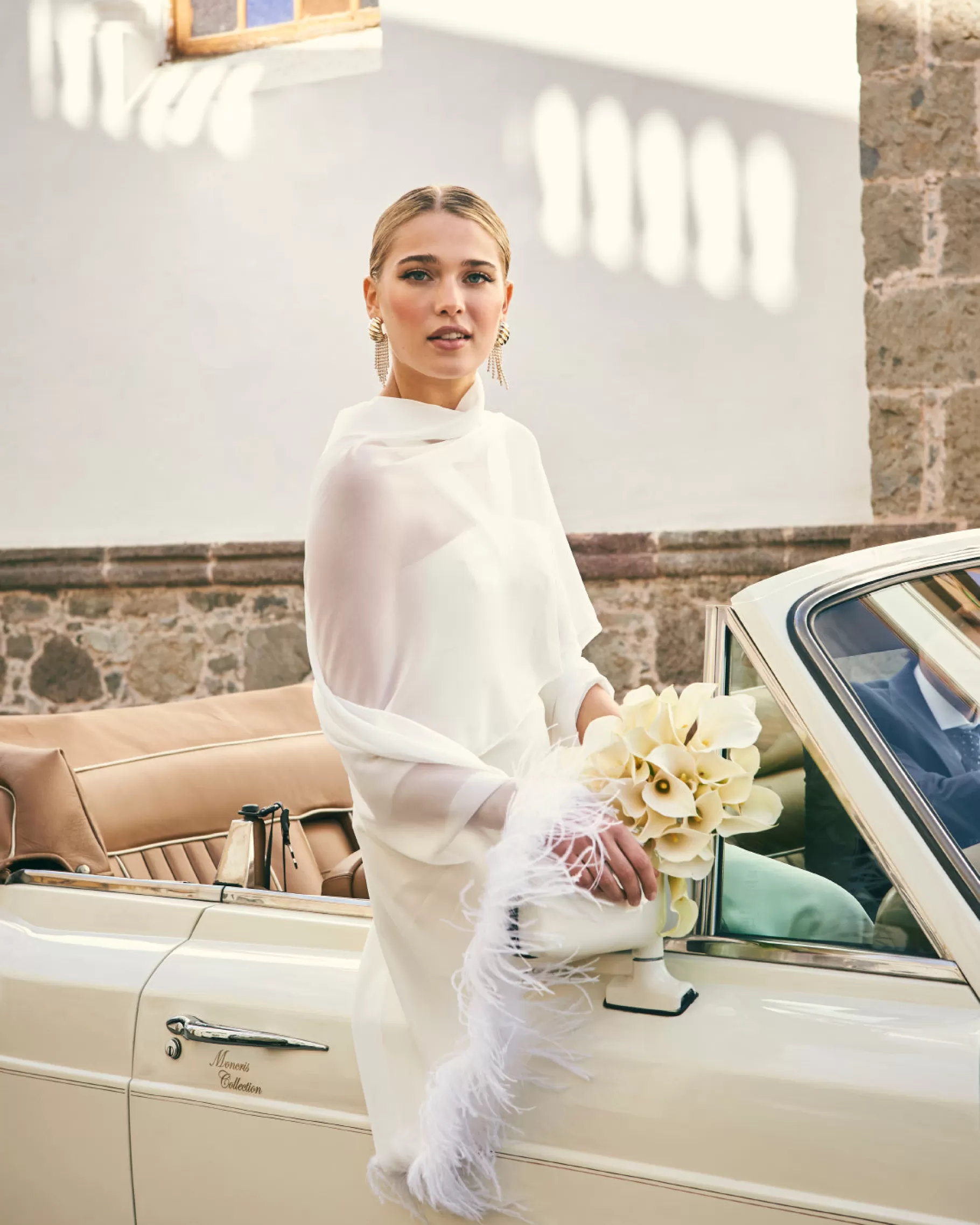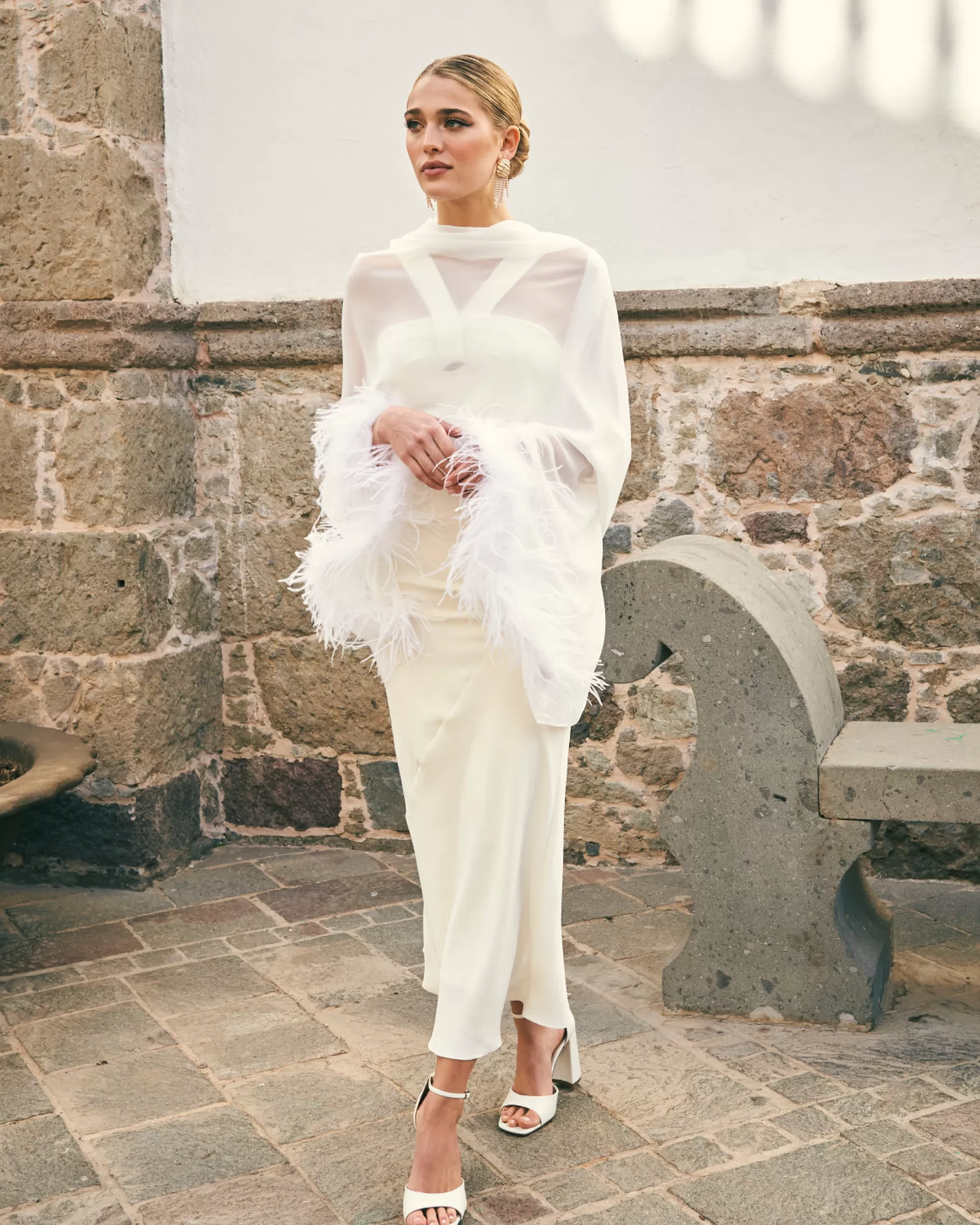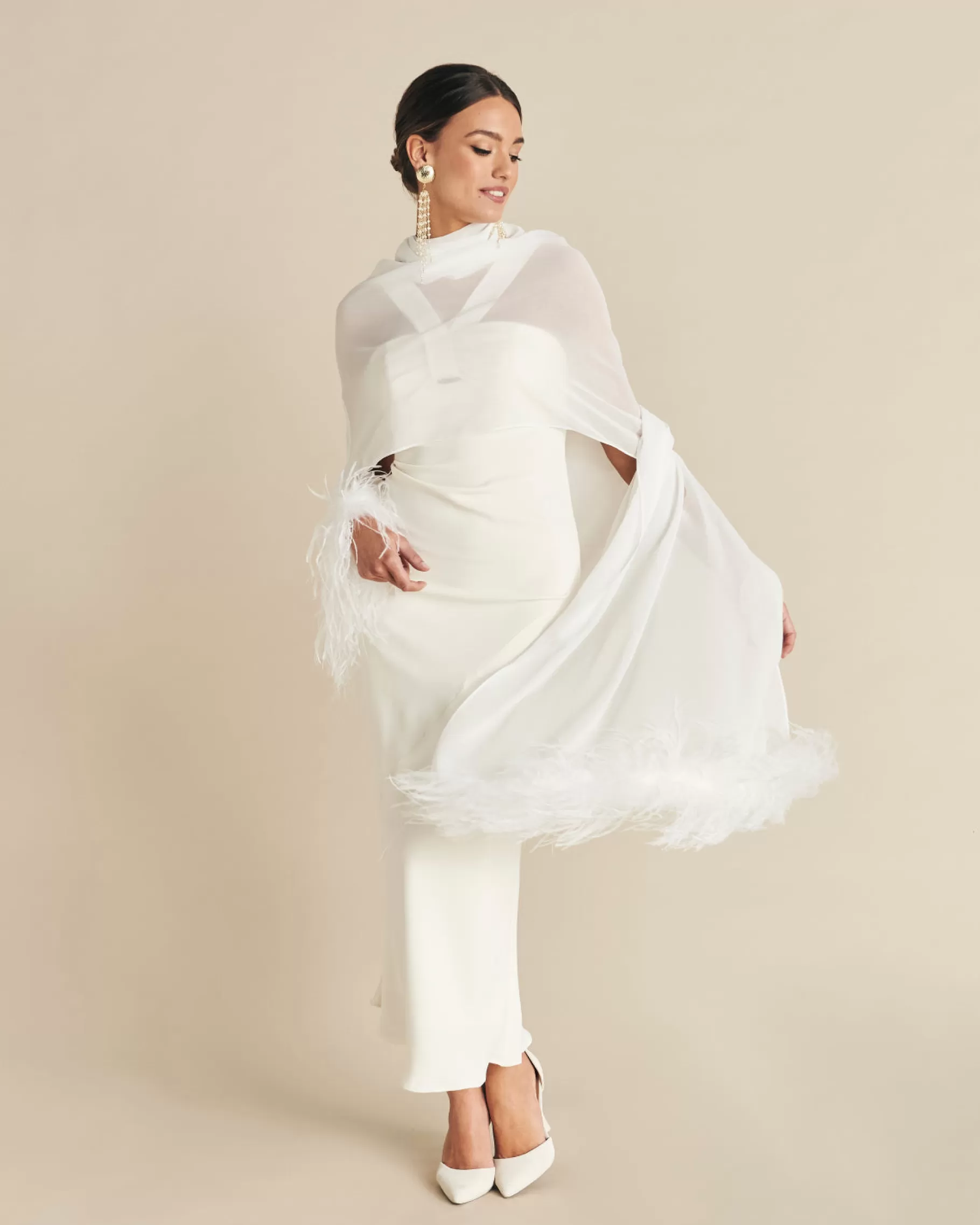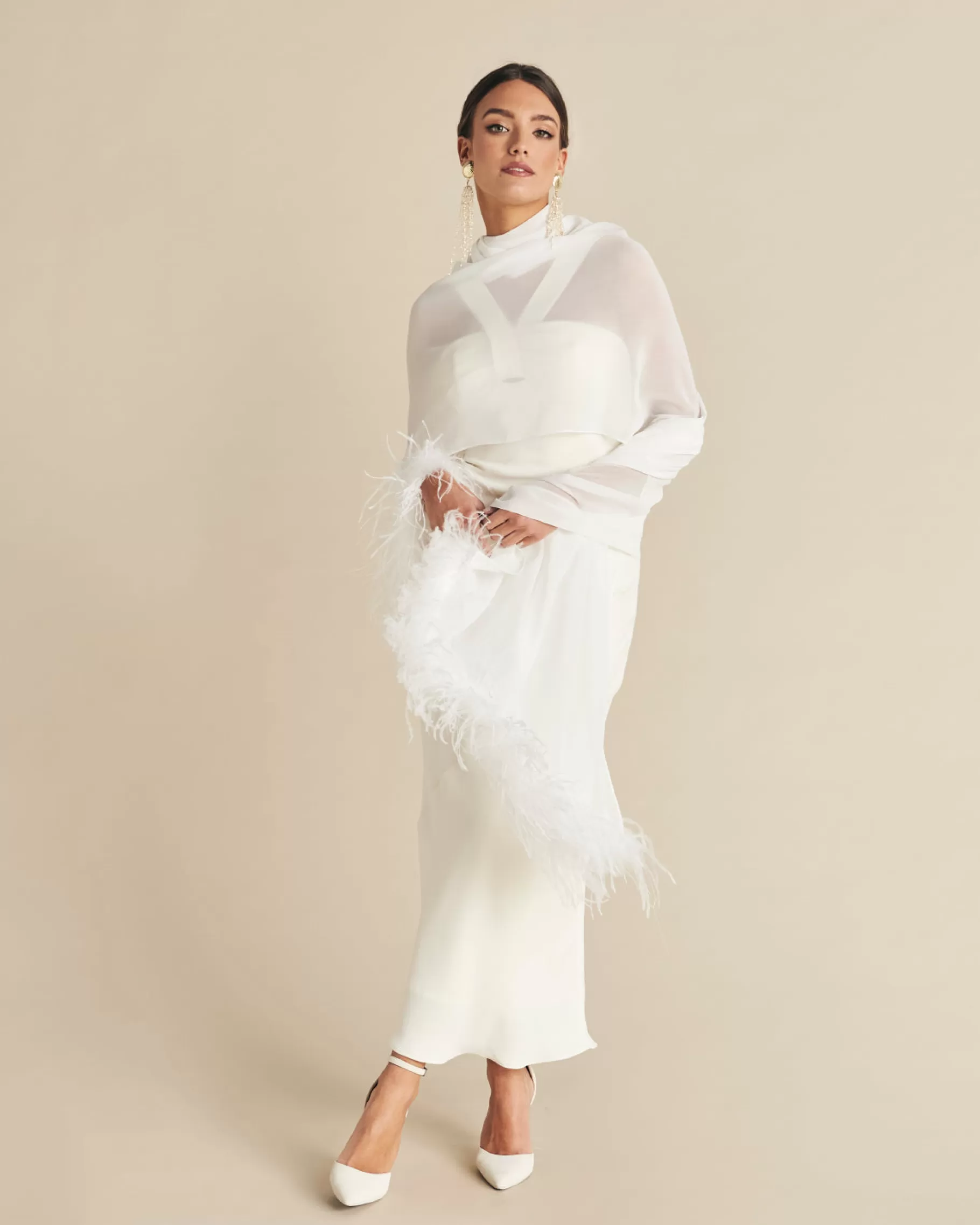 Chal de gasa con detalle de plumas.