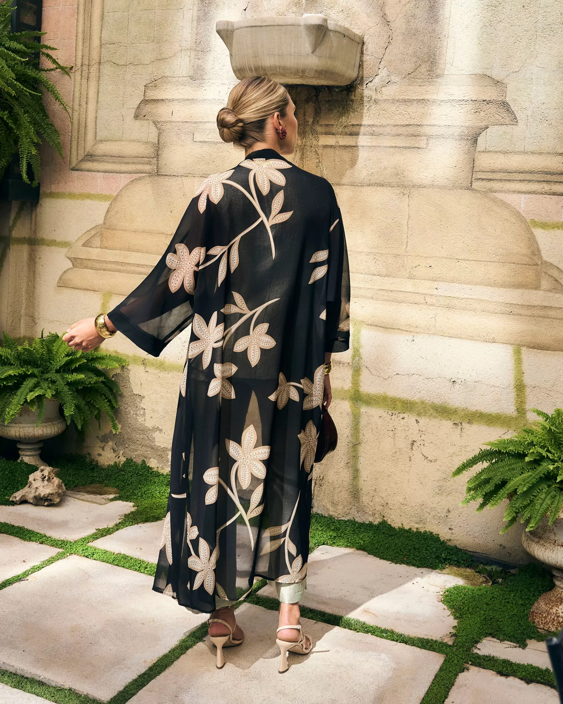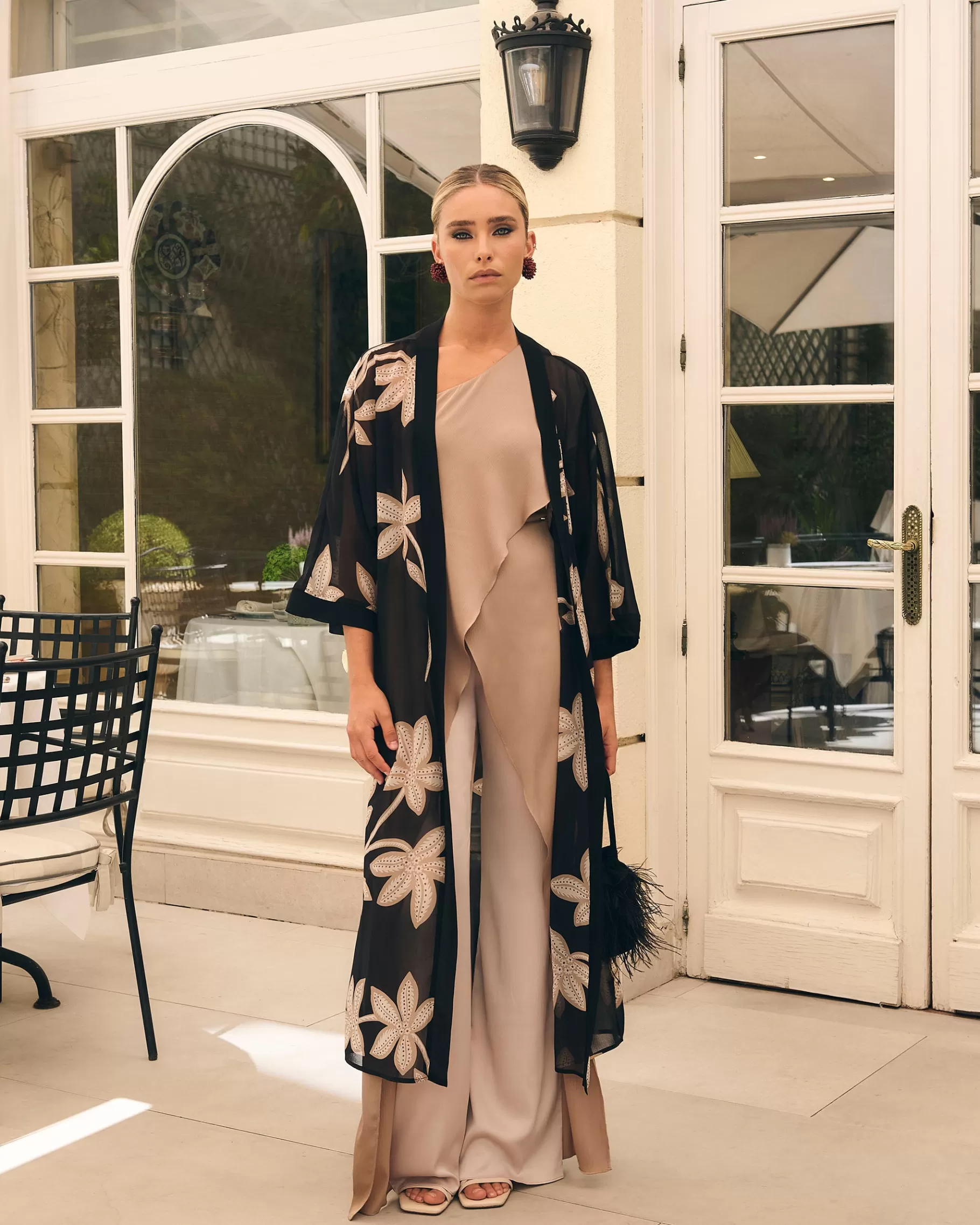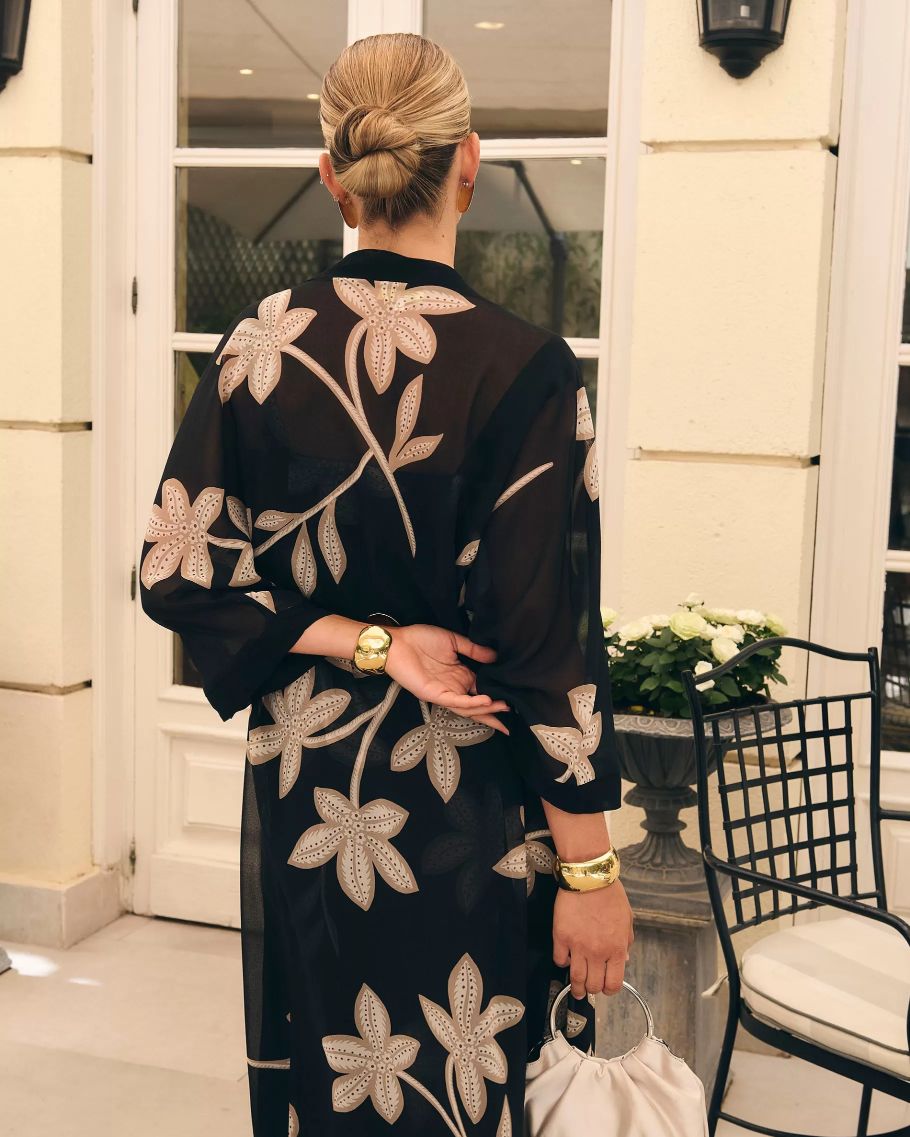Kimono abierto con detalle de vivos en gasa.