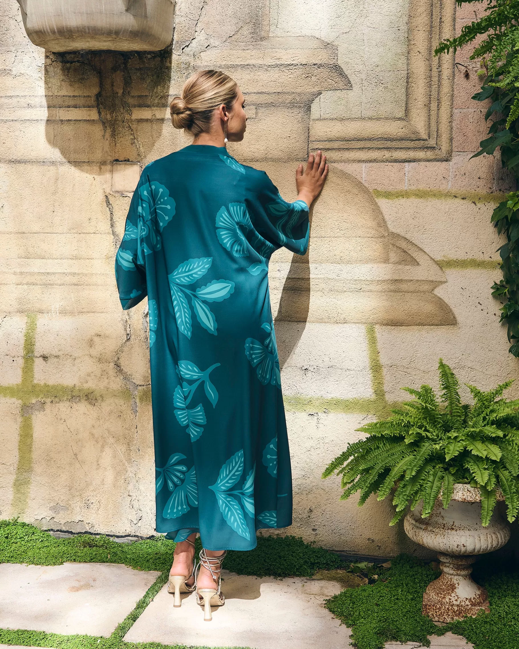 Kimono estampado abierto con detalle de vivos en gasa.Talla única.
