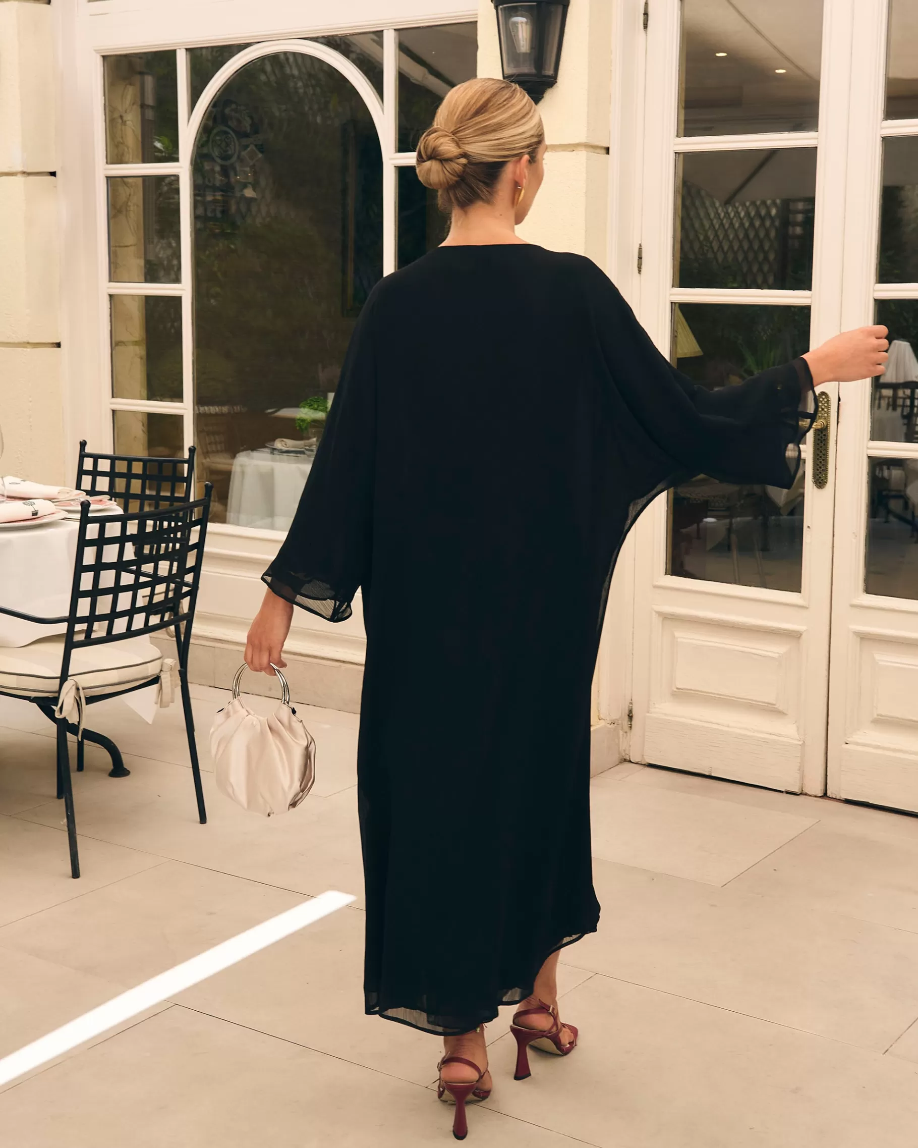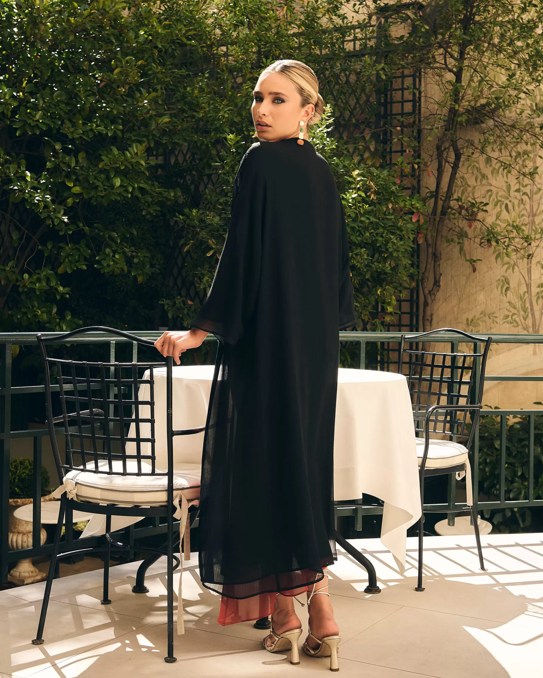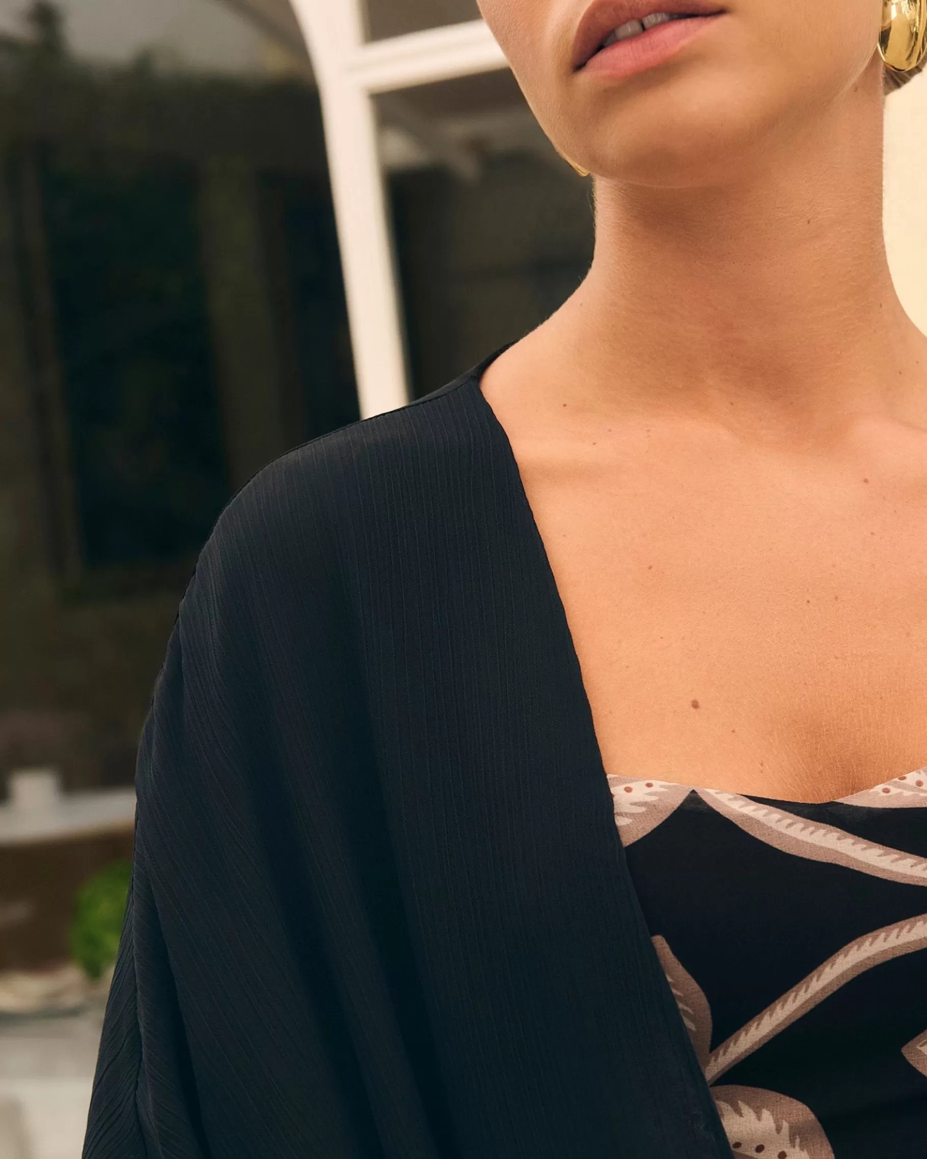 Kimono abierto de gasa con textura, forrado de gasa.Talla única.