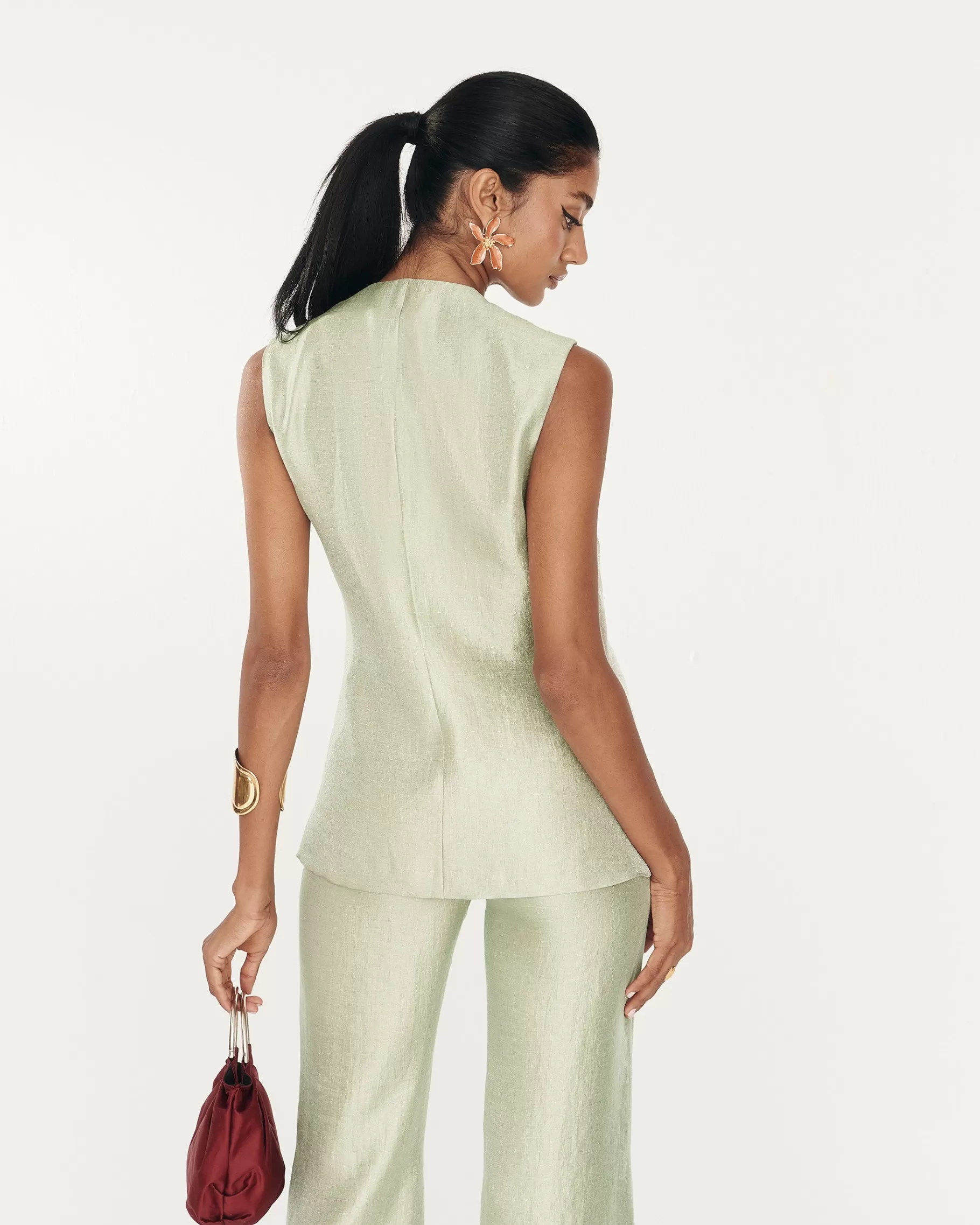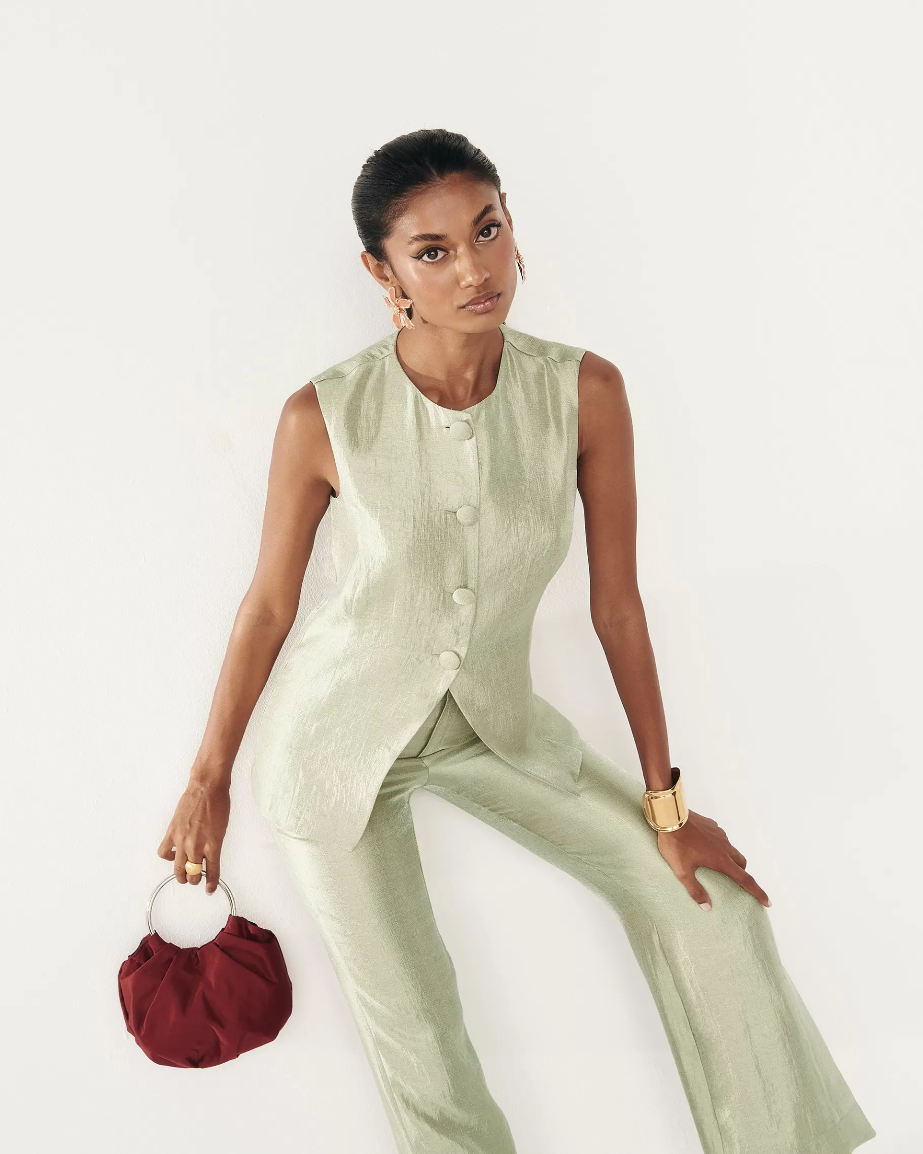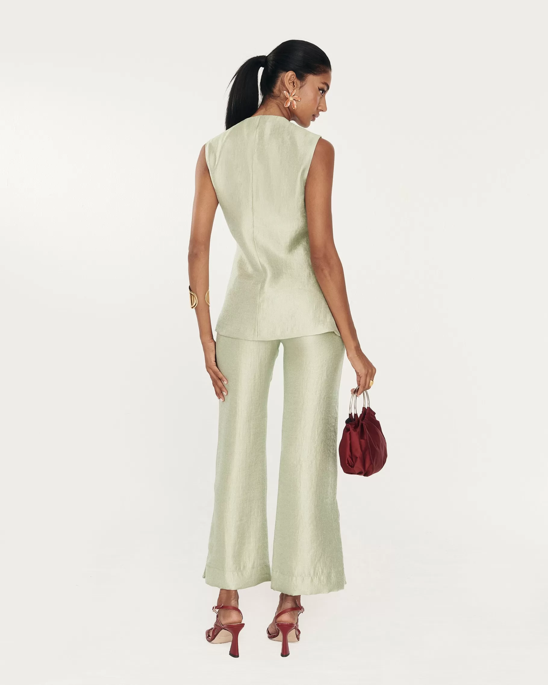 Pantalón recto de talle alto con aberturas laterales y cierre frontal con cremallera.
