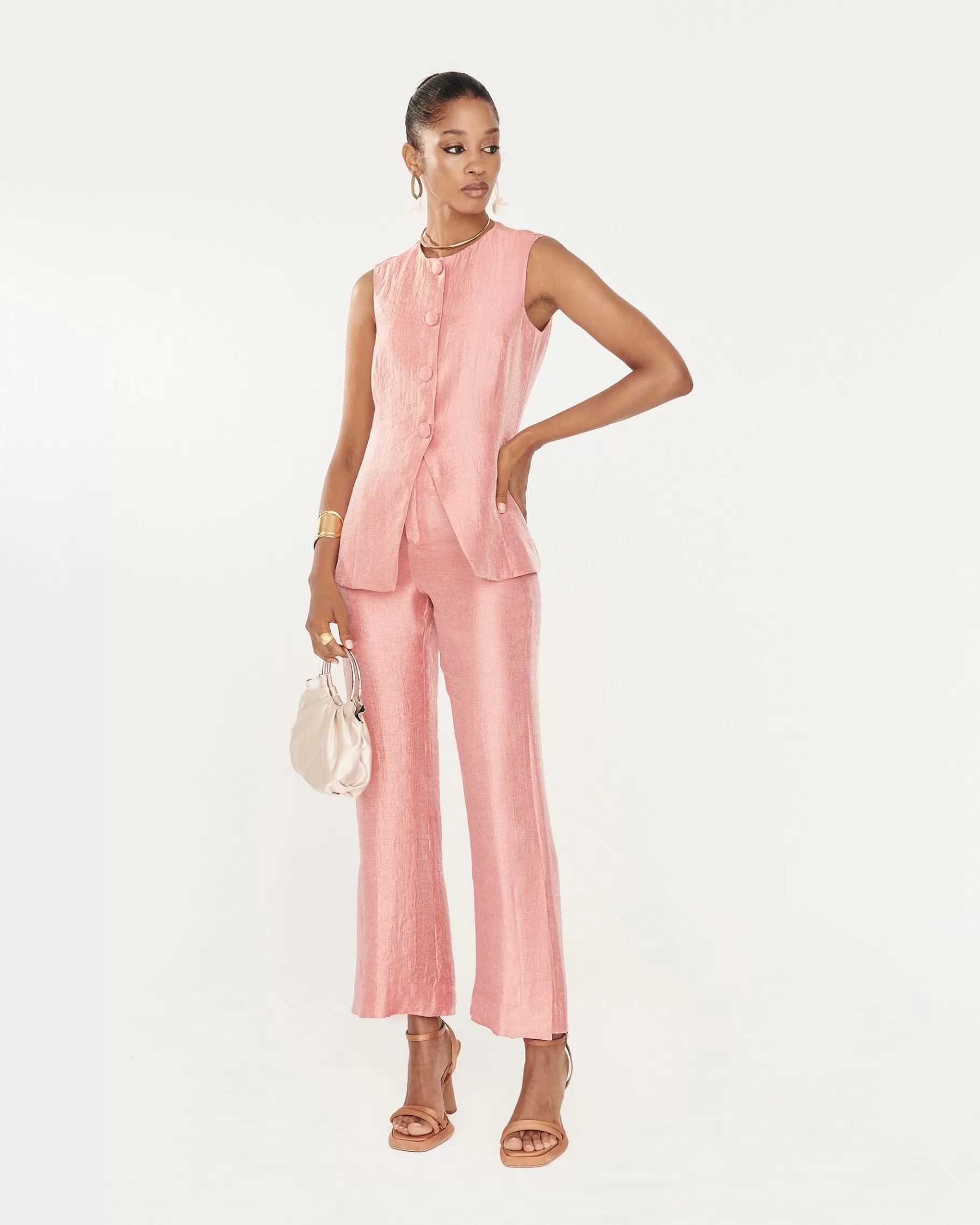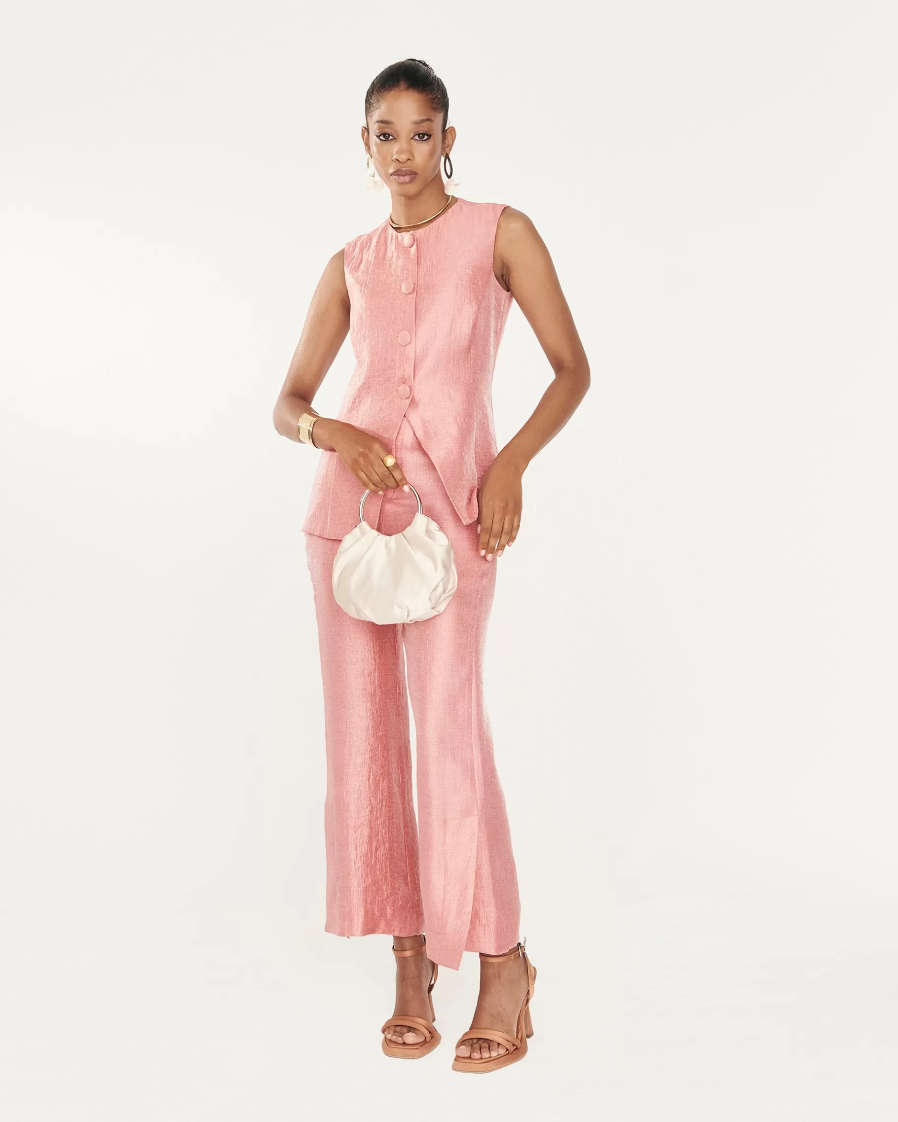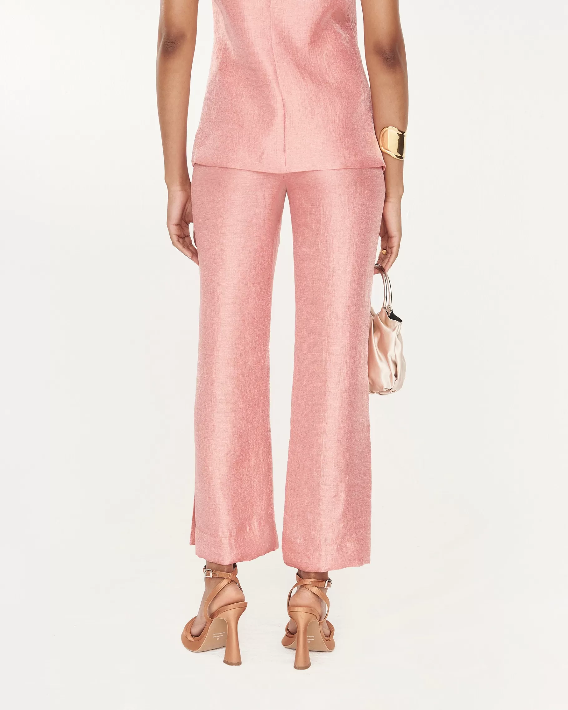 Pantalón recto de talle alto con aberturas laterales y cierre frontal con cremallera.