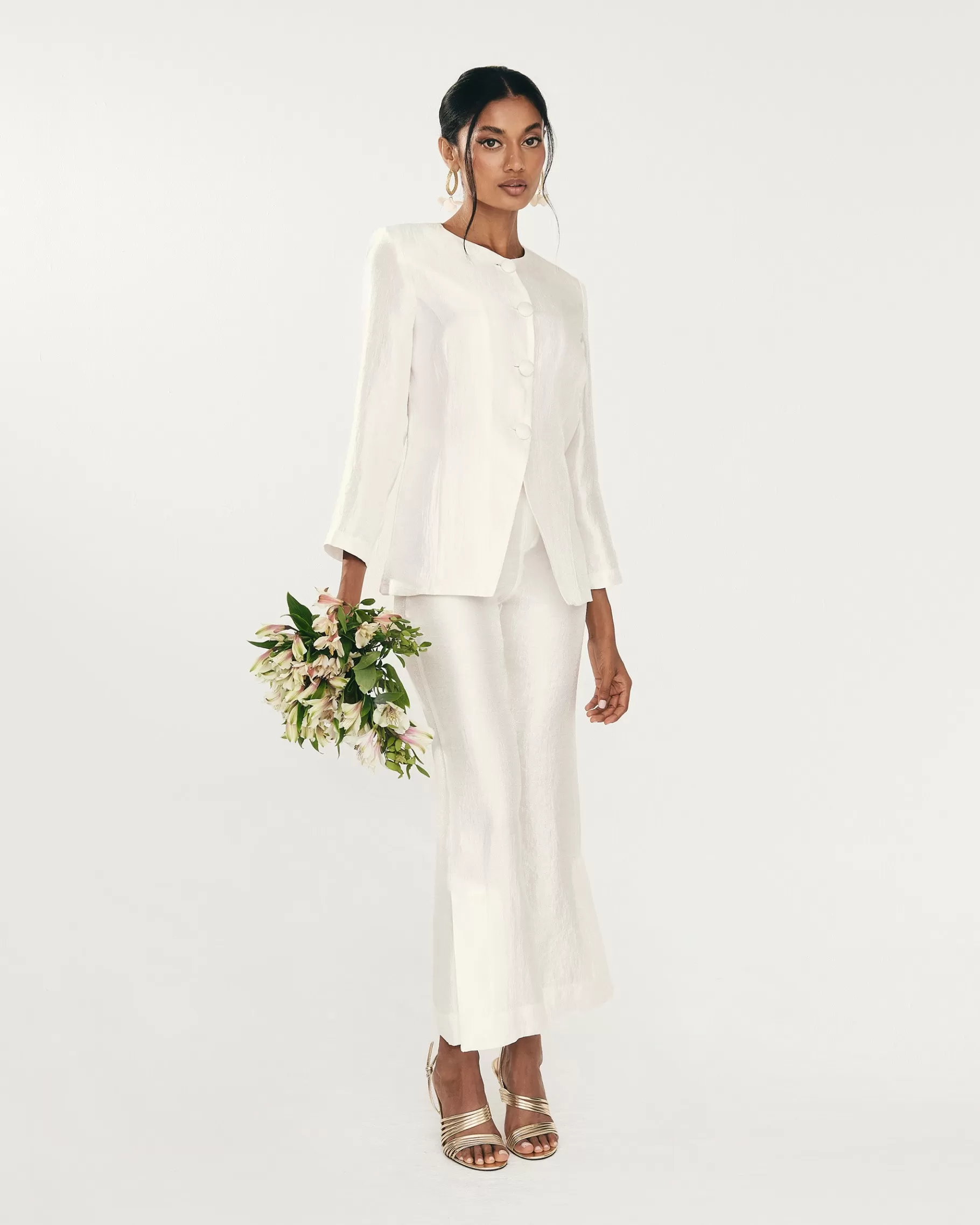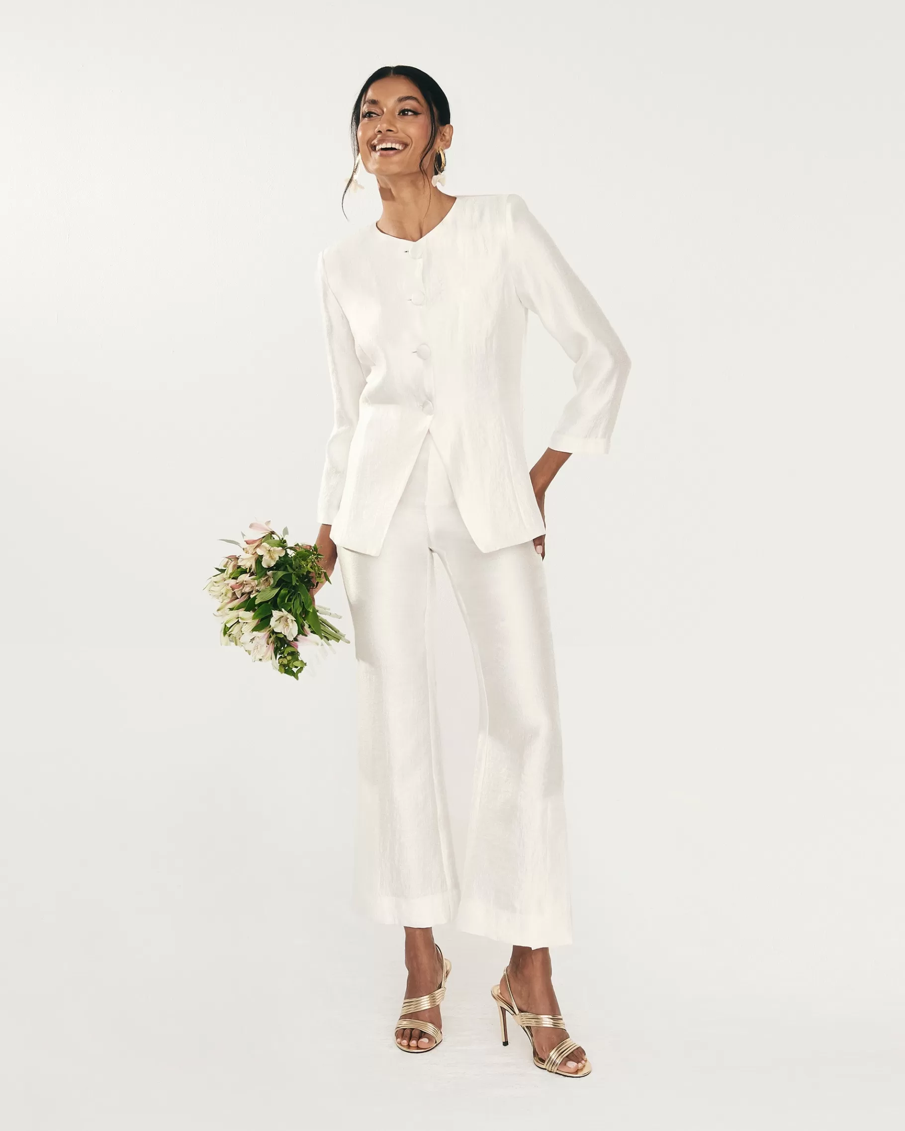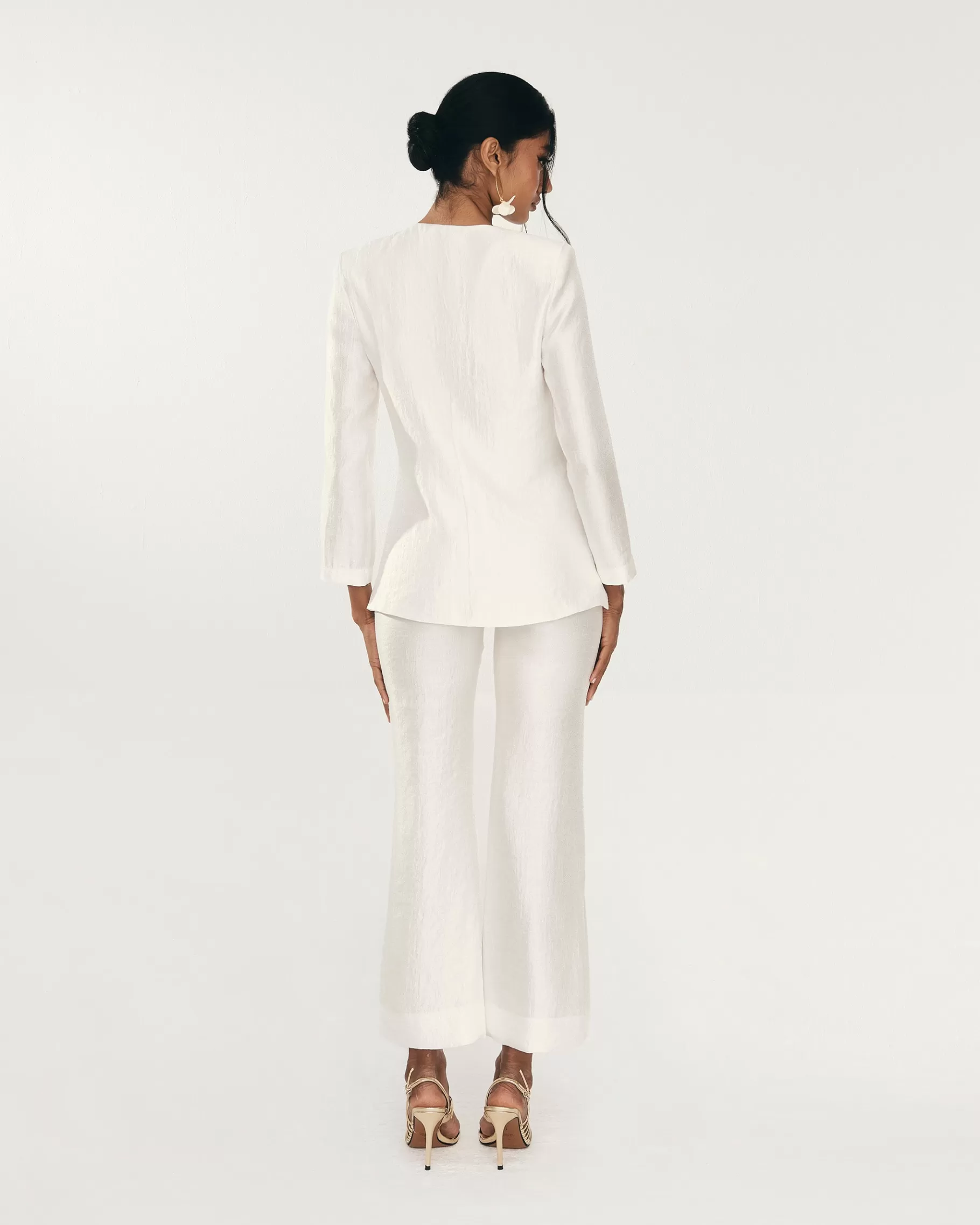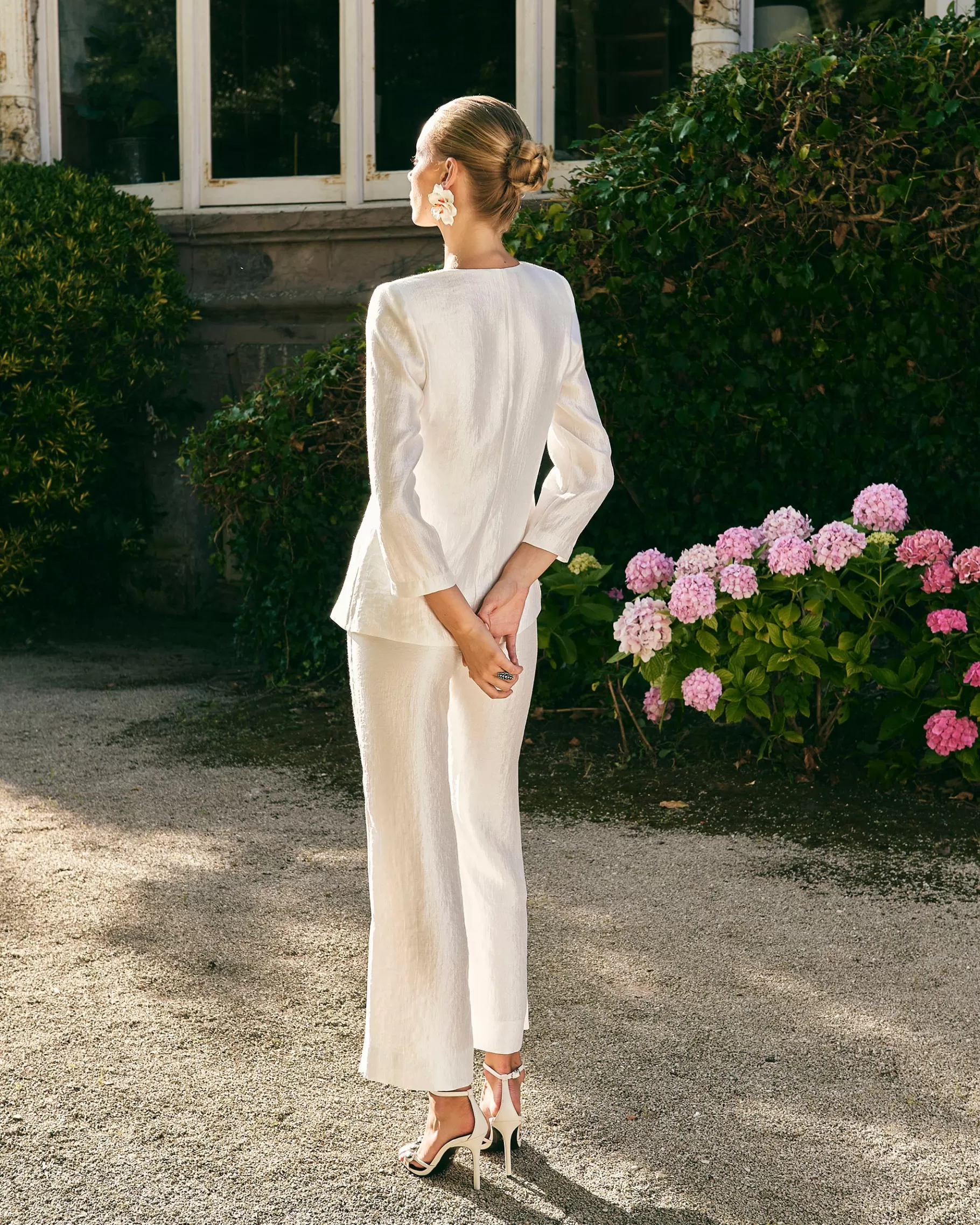 Pantalón recto de talle alto con aberturas laterales y cierre frontal con cremallera.