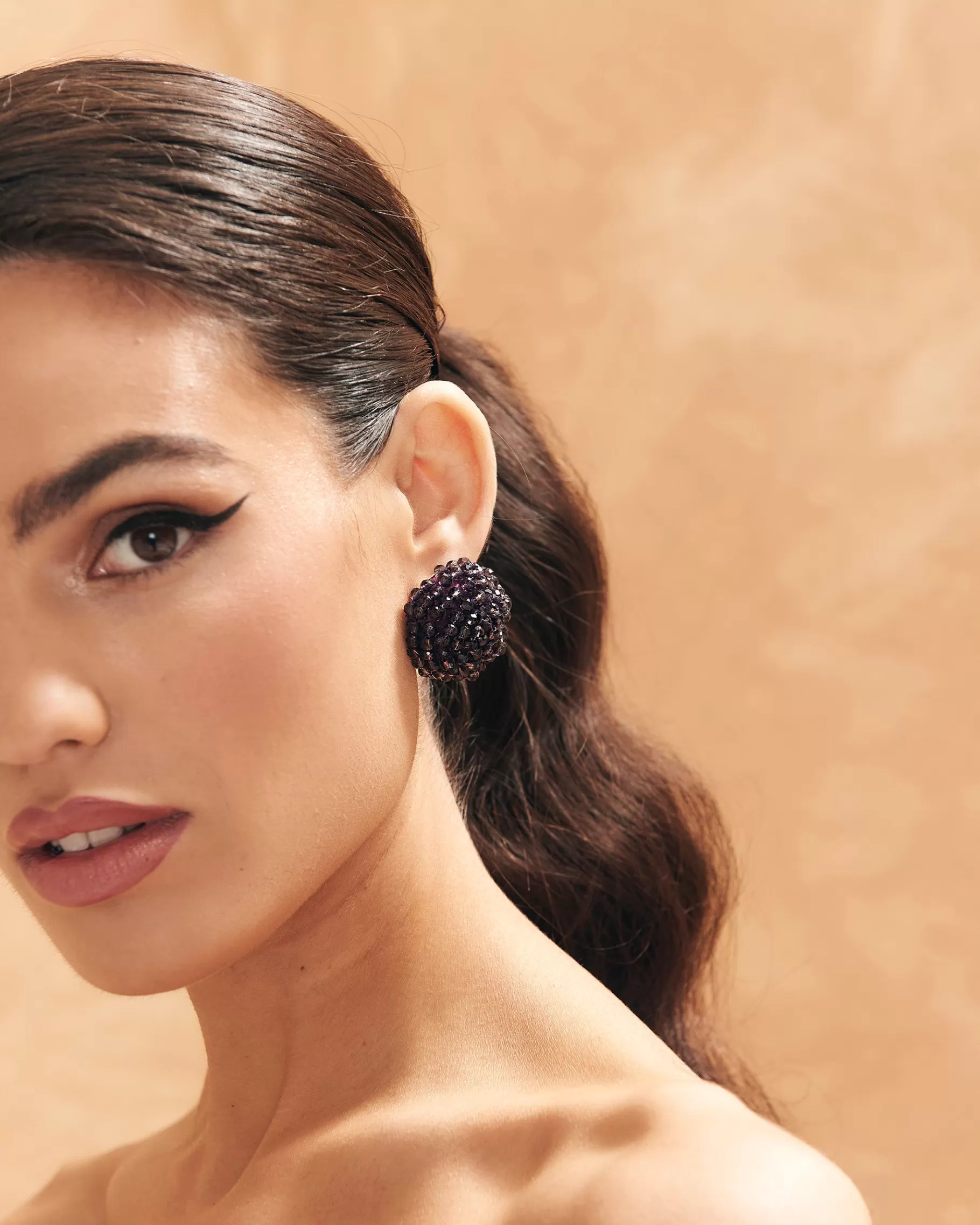 Pendientes con botón de cristales.Diámetro: 3 cm.Peso: 15,3 g.