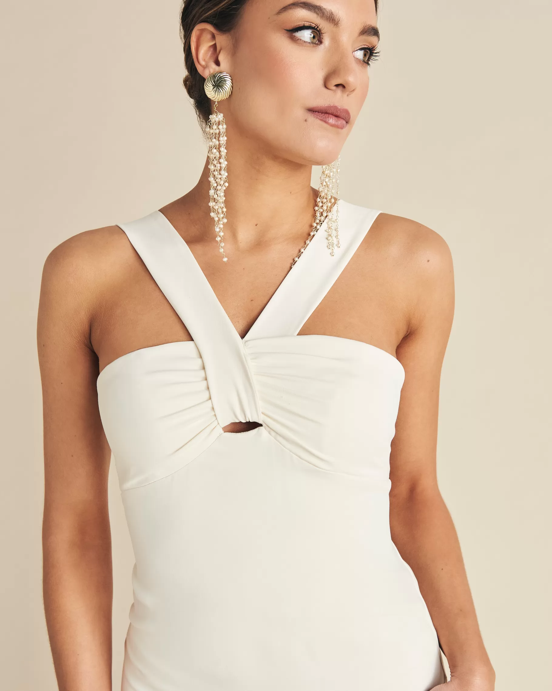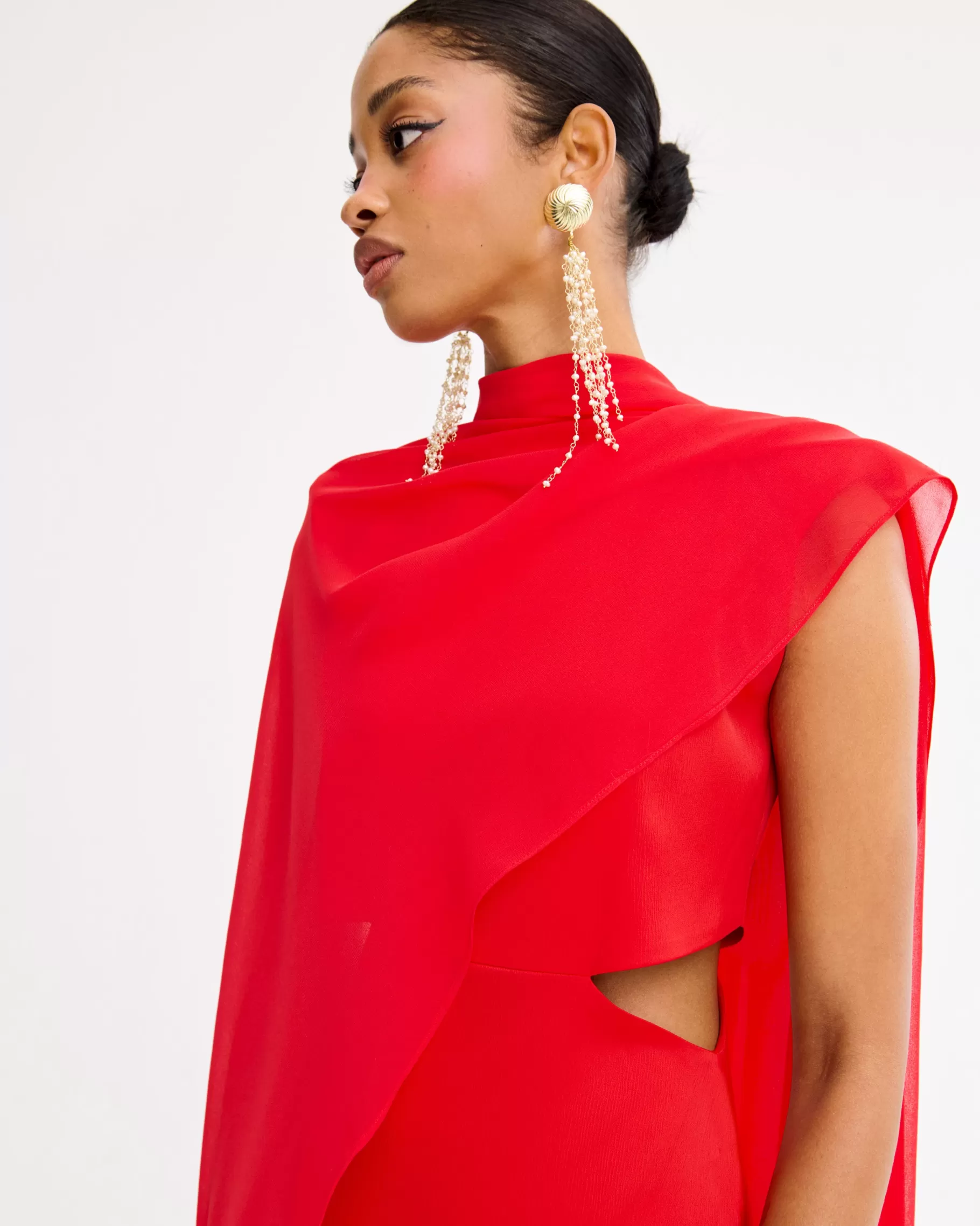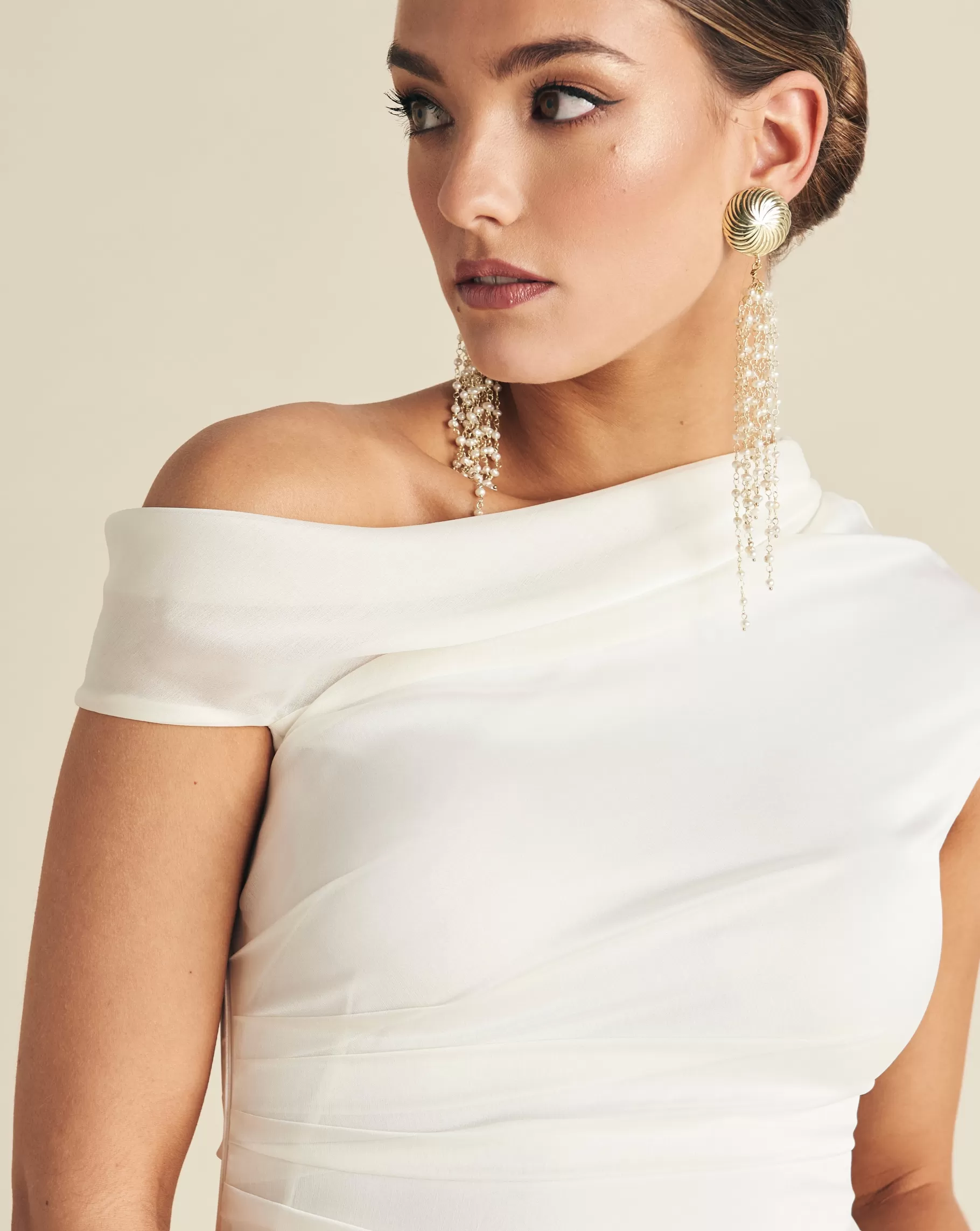 Pendientes con botón dorado y colgantes en cascada con pepitas de cristal. Cierre con clip.