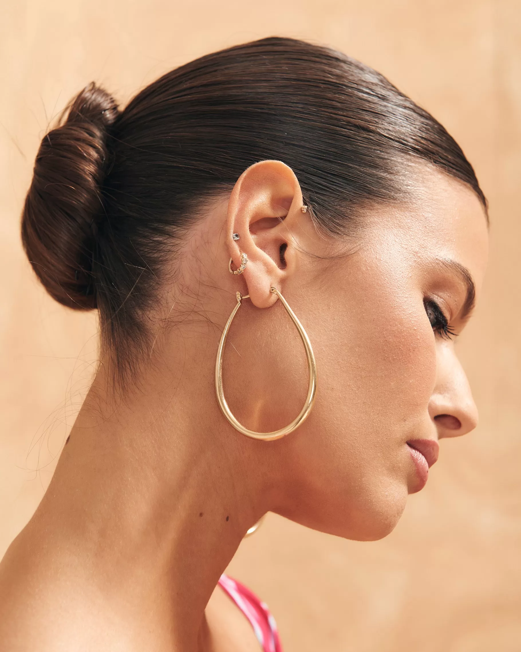 Pendiente ovalado en tono oro claro de inspiración años 70.