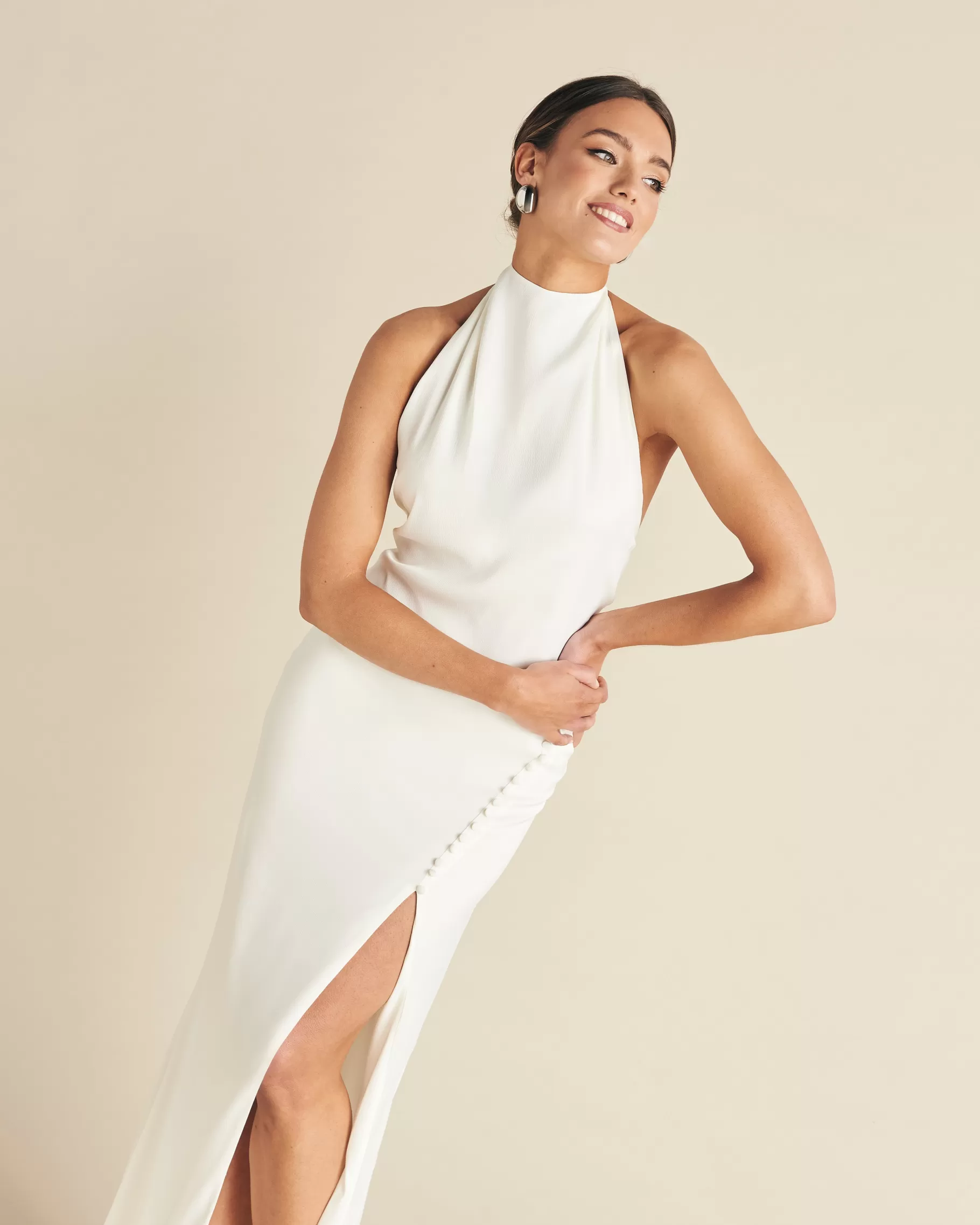 Pendientes plateados con forma de óvalo.