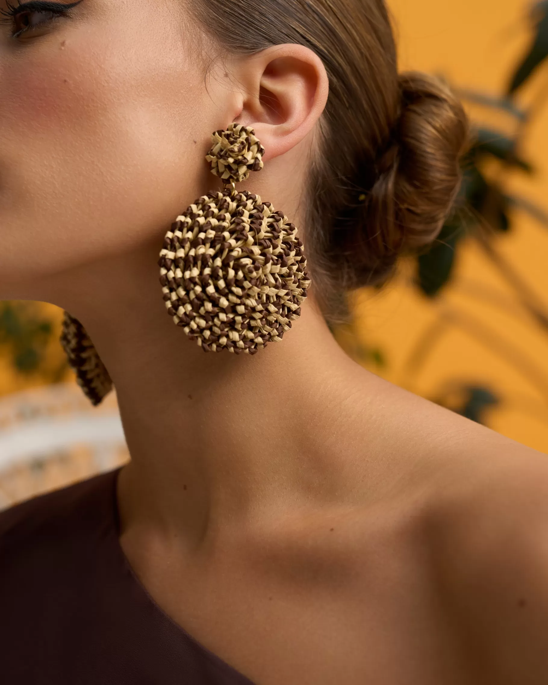 Pendientes circulares realizados a mano con rafia natural.Medidas: 8 cm de diámetro.