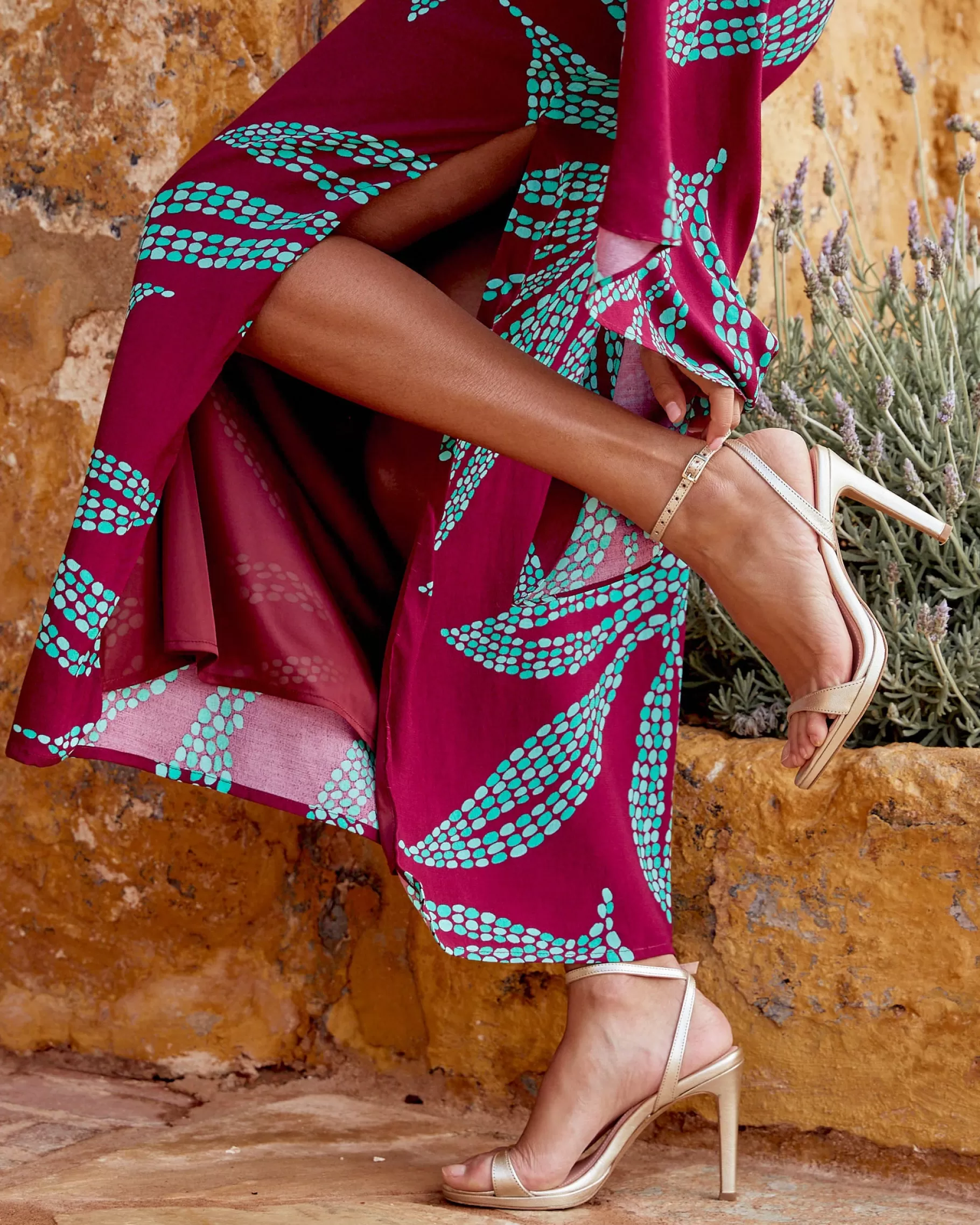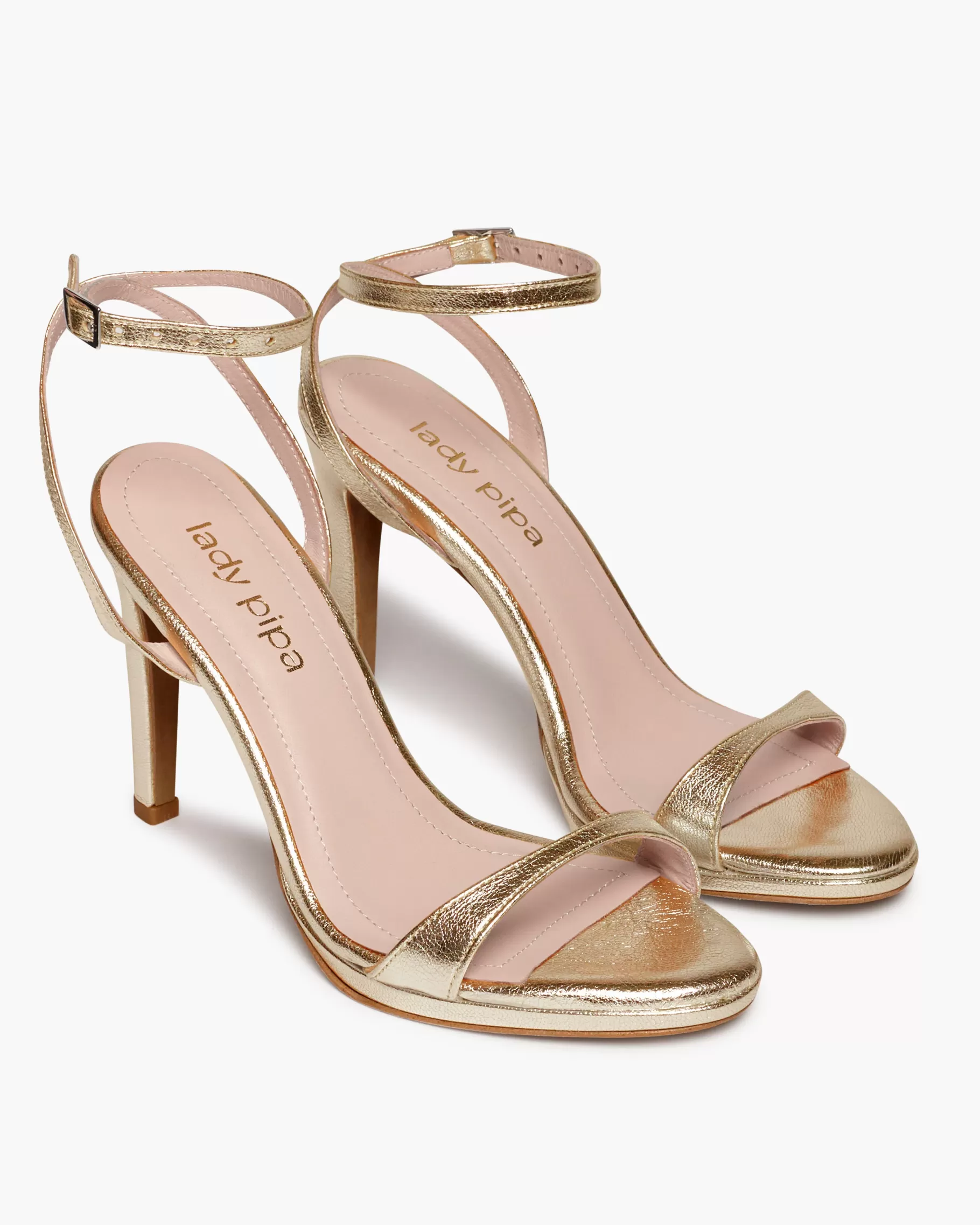 Sandalia de tacón fino y tira fina en la parte delantera. Cierre de pulsera con hebilla en el tobillo. Tiene la planta muy acolchada para mayor confort.