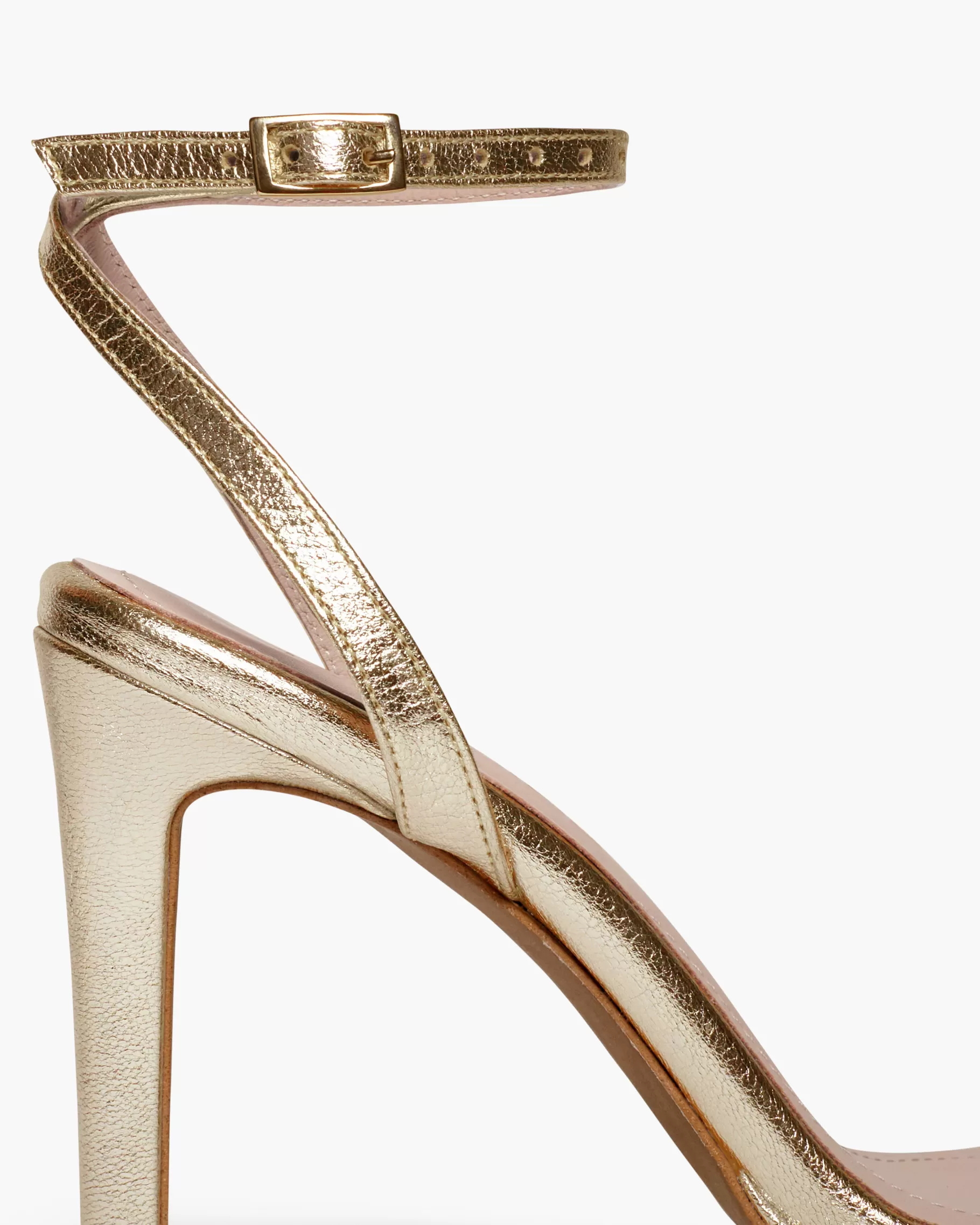 Sandalia de tacón fino y tira fina en la parte delantera. Cierre de pulsera con hebilla en el tobillo. Tiene la plant…