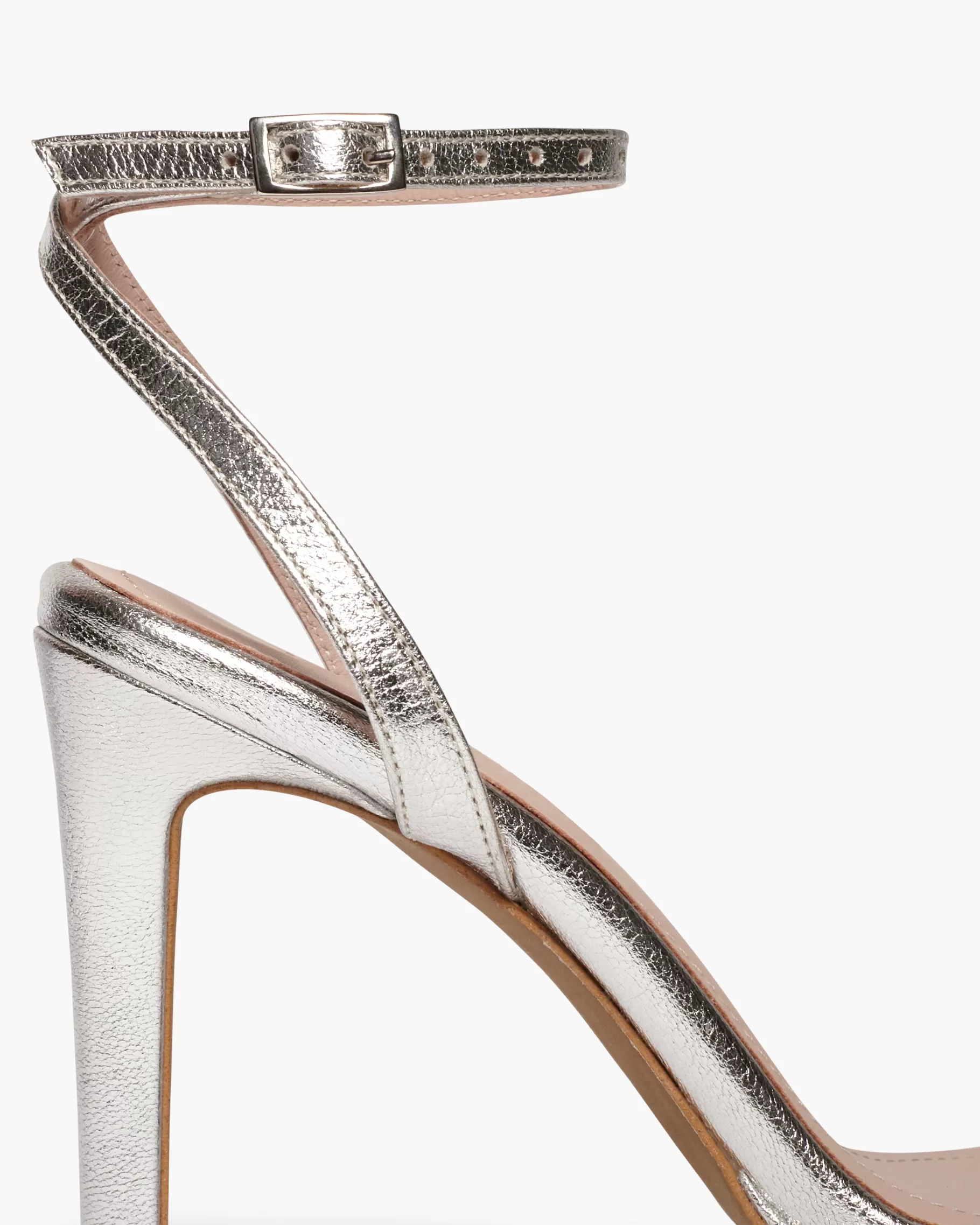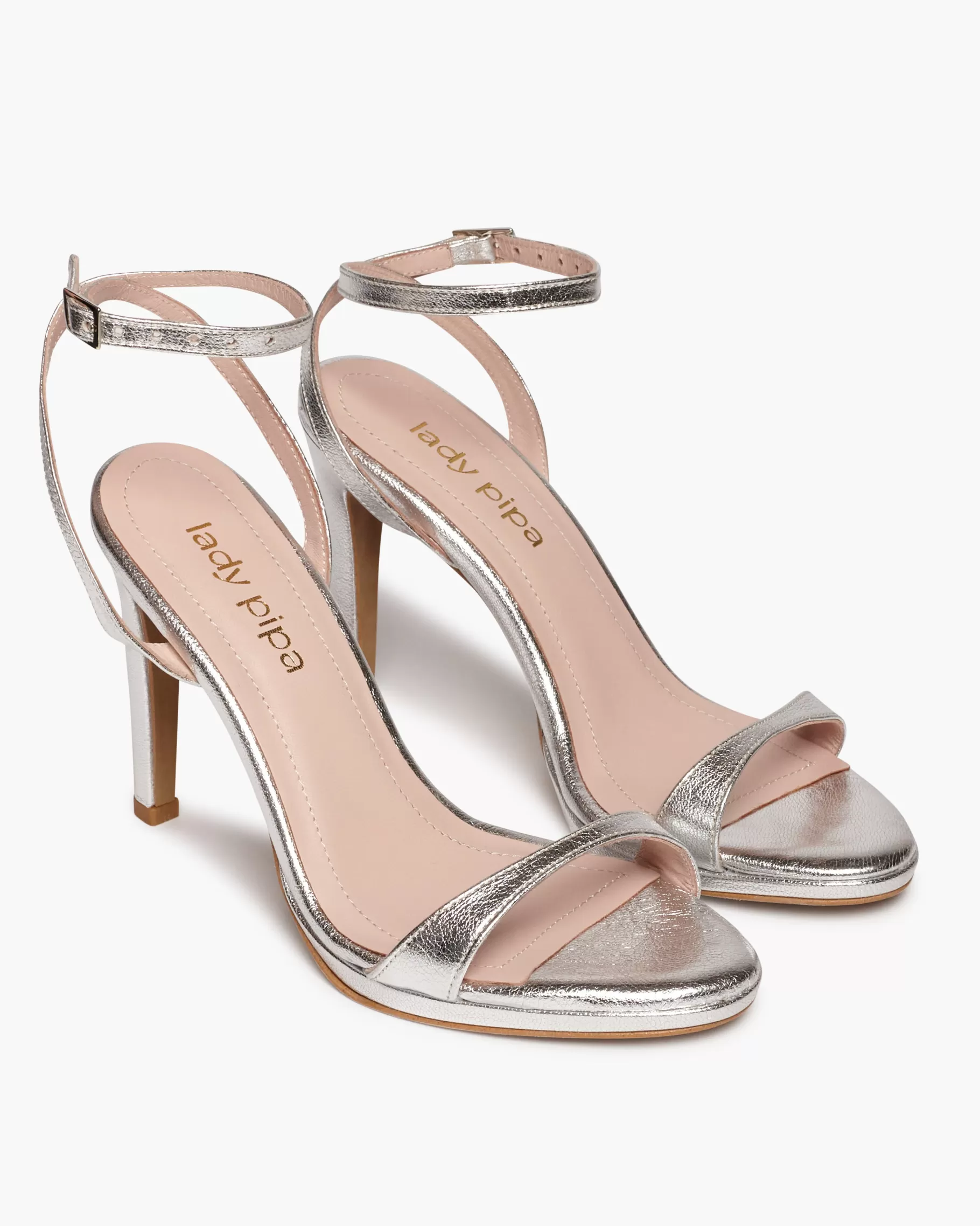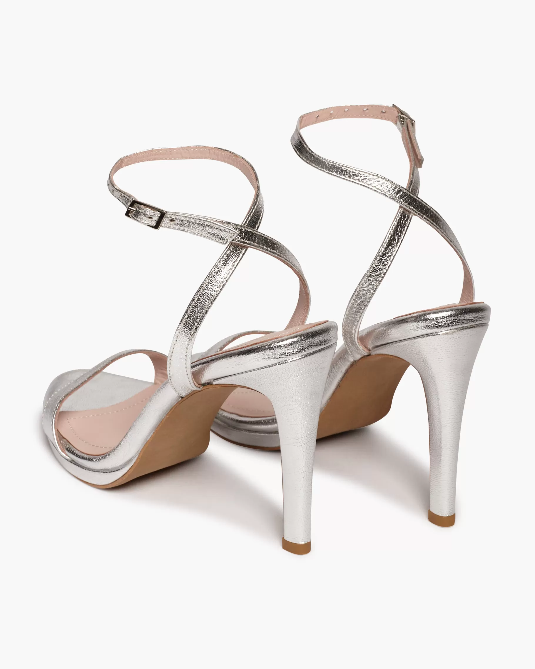 Sandalia de tacón fino y tira fina en la parte delantera. Cierre de pulsera con hebilla en el tobillo. Tiene la planta muy acolchada para mayor confort.