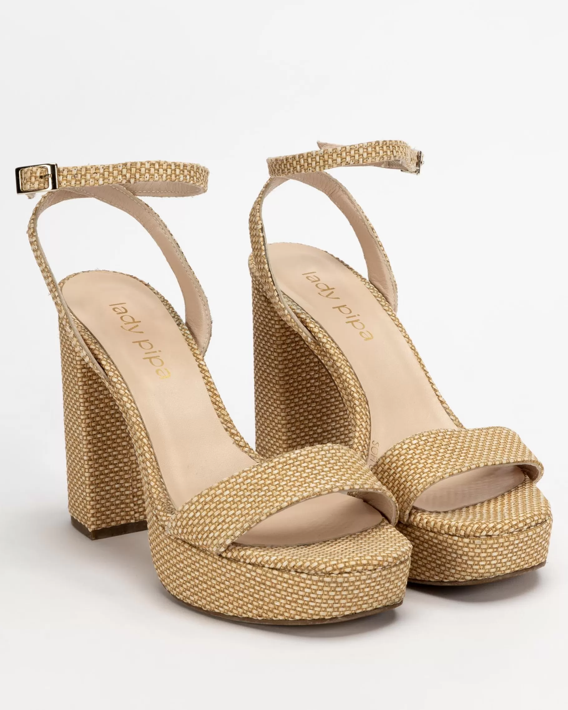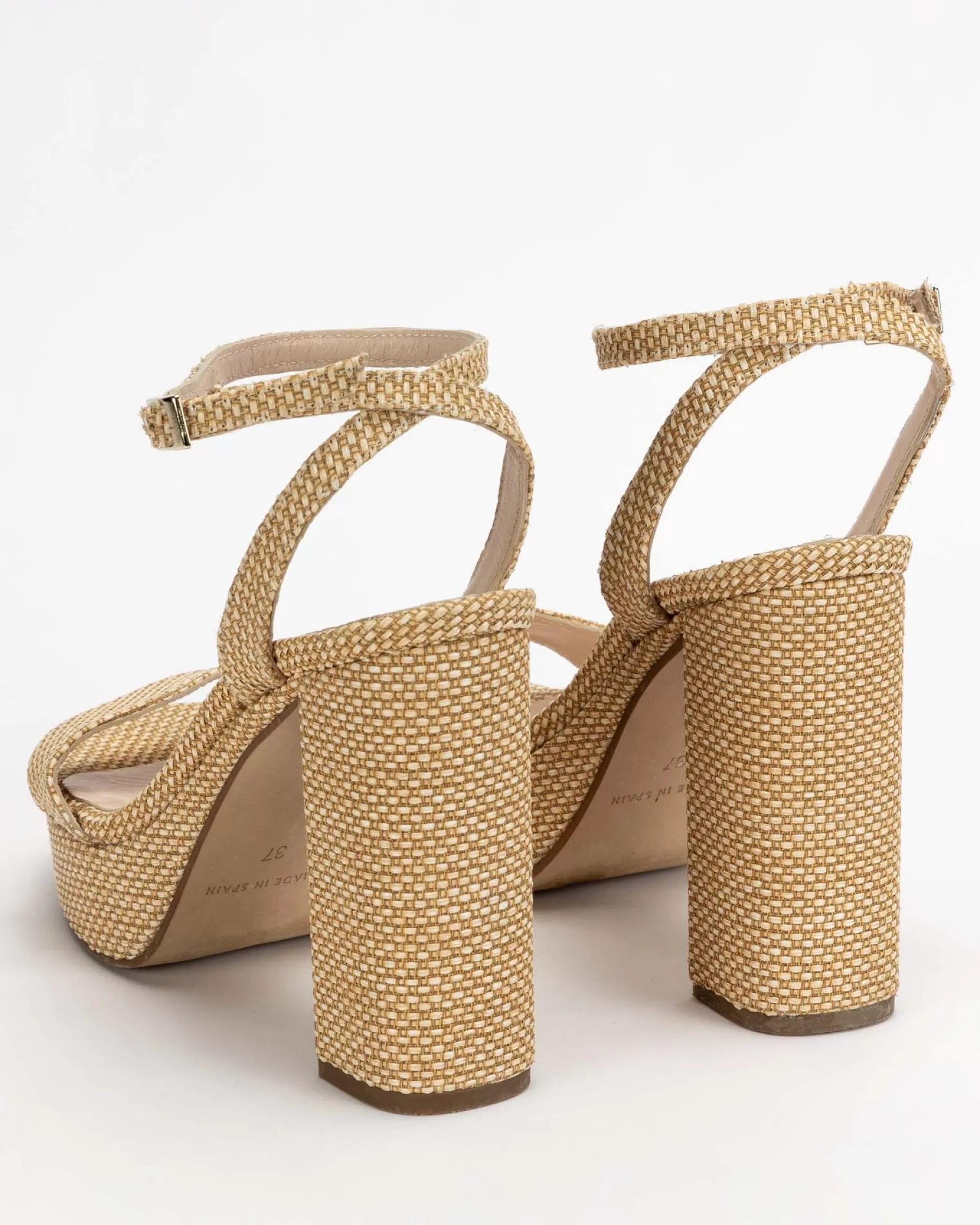 Sandalia de tacón ancho con plataforma. Cierre de pulsera con hebilla en el tobillo. Tiene la planta muy acolchada para mayor confort.