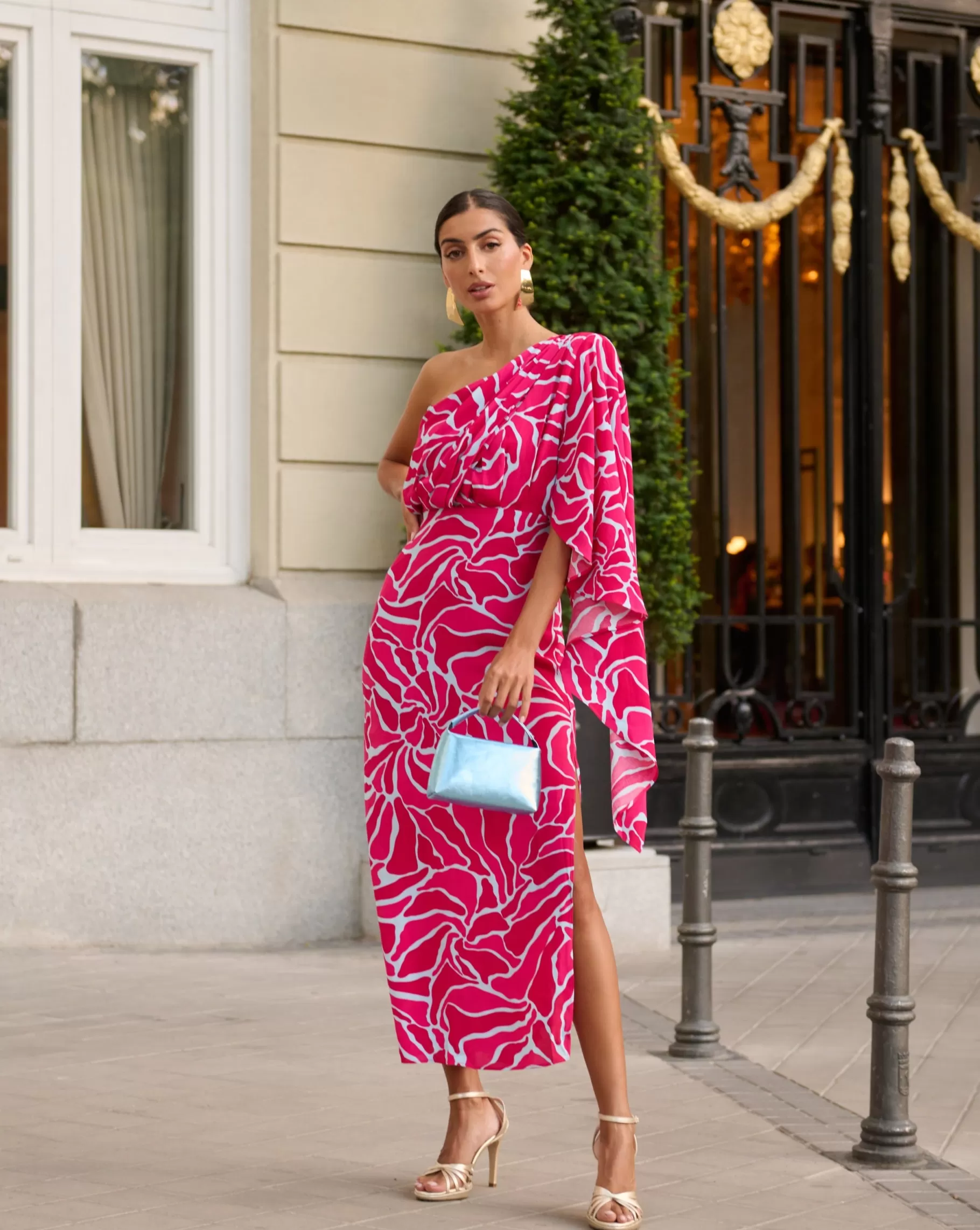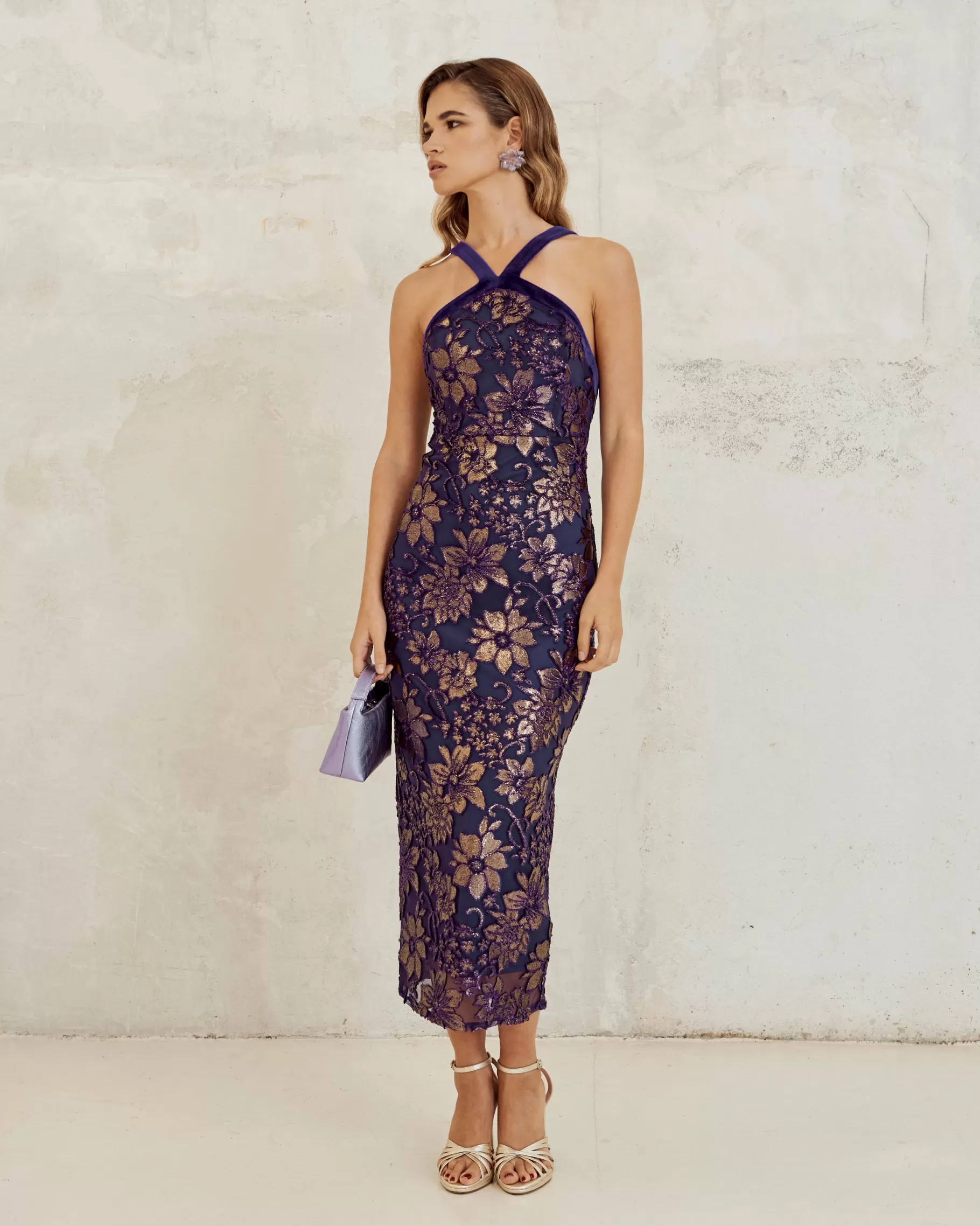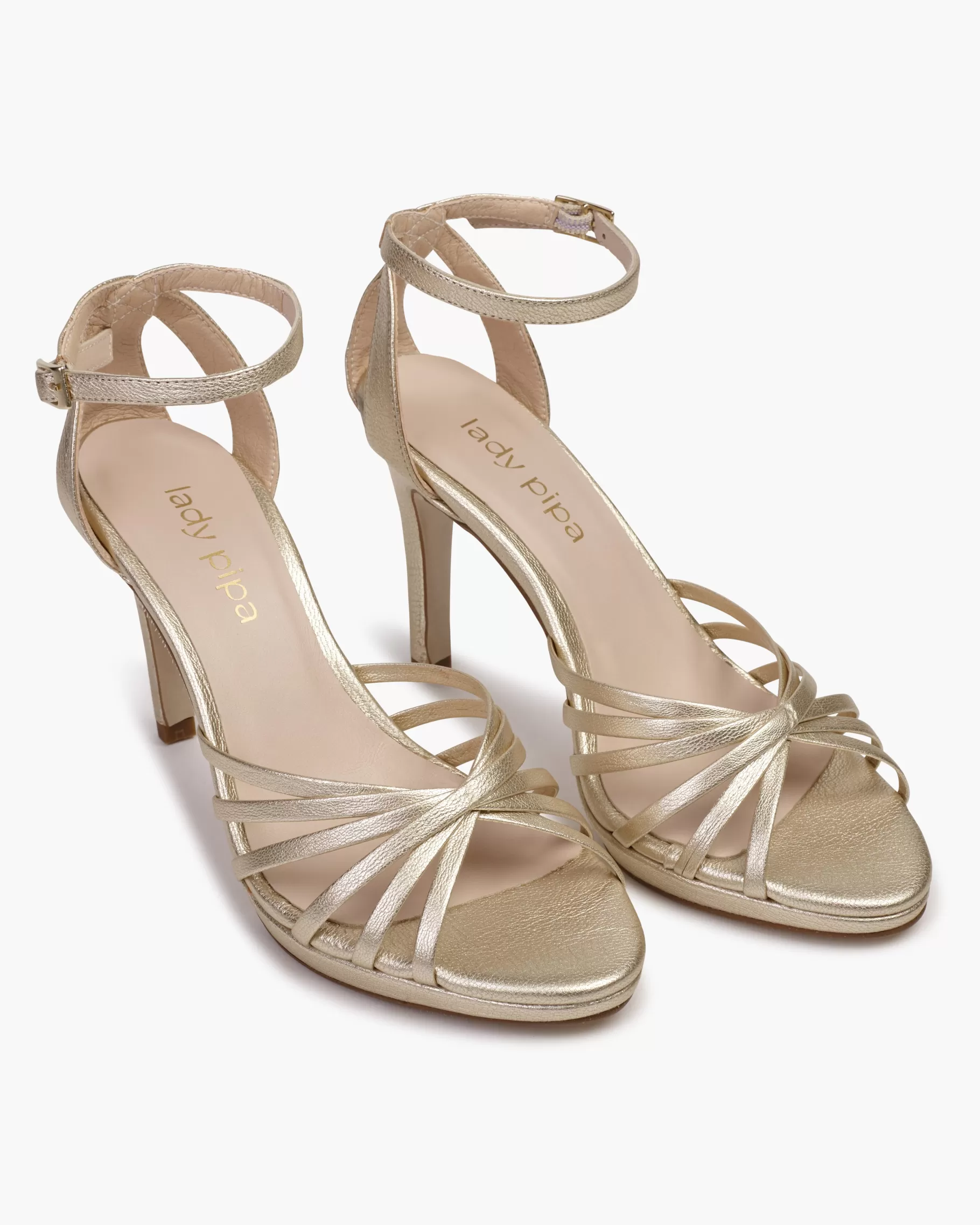 Sandalia de tacón fino con detalle de tiras. Acabada en punta redonda. Cierre de pulsera con hebilla en el tobillo. Tiene la planta muy acolchada para mayor confort.