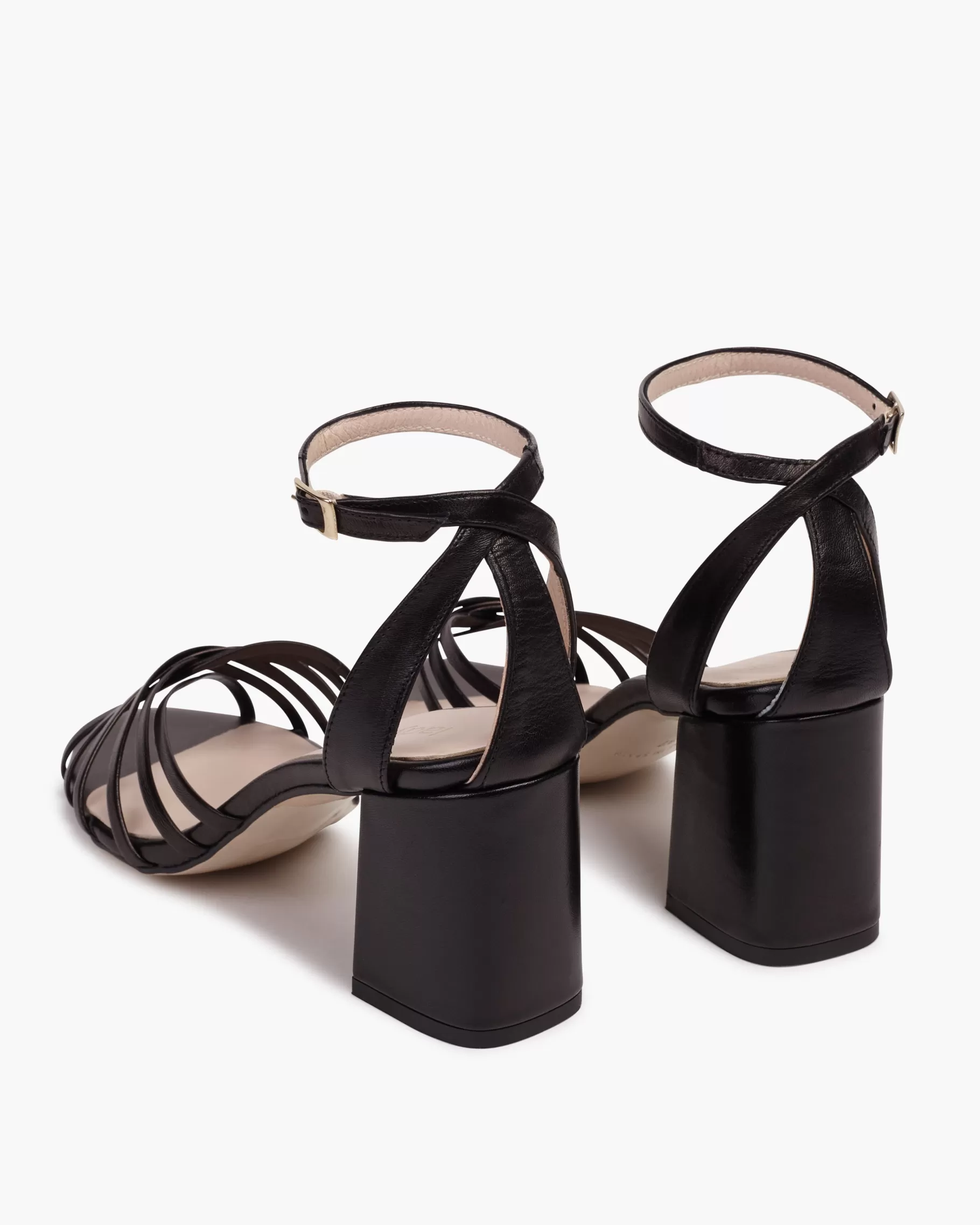 Sandalia de tacón ancho con detalle de tiras. Acabada en punta redonda. Cierre de pulsera con hebilla en el tobillo. T…