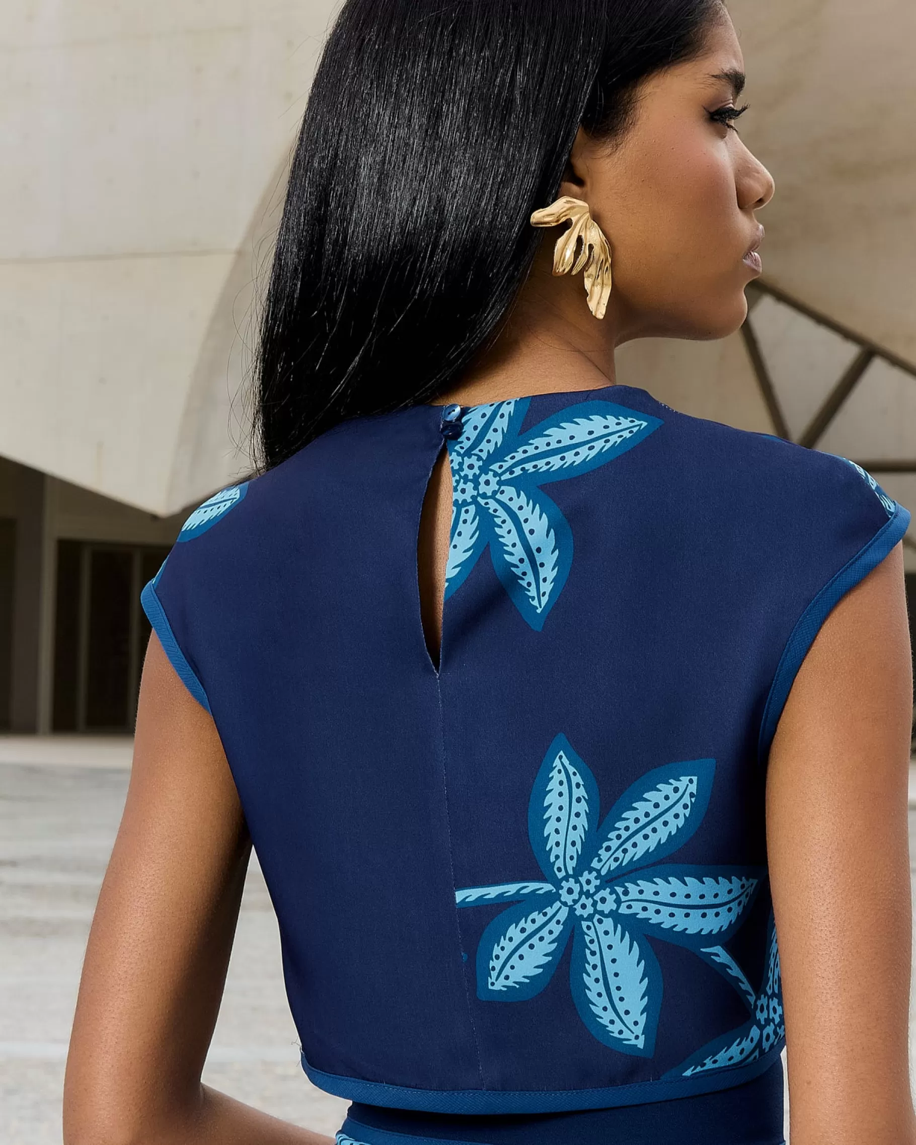 Top de manga corta y detalle vivos a tono en el bajo y en las mangas.