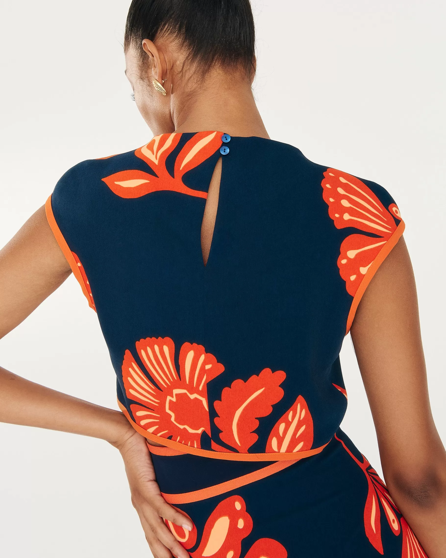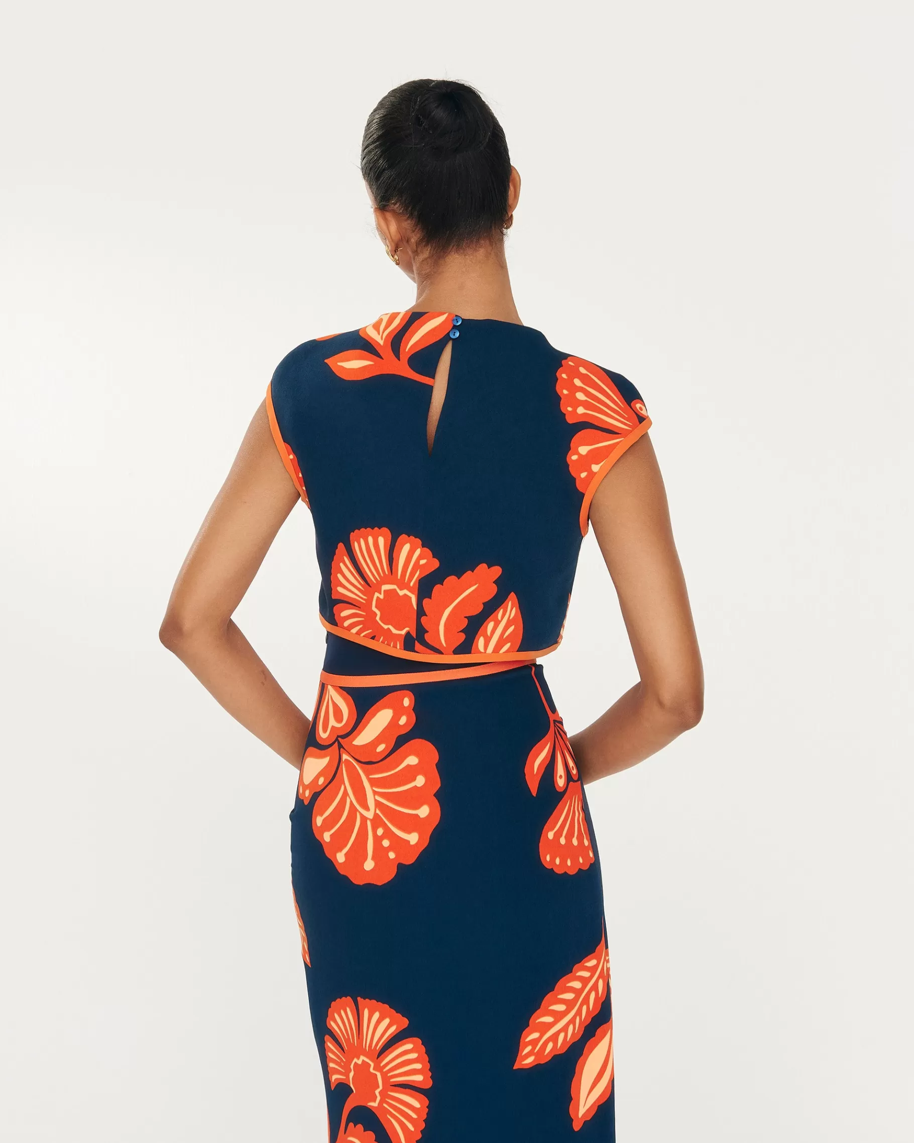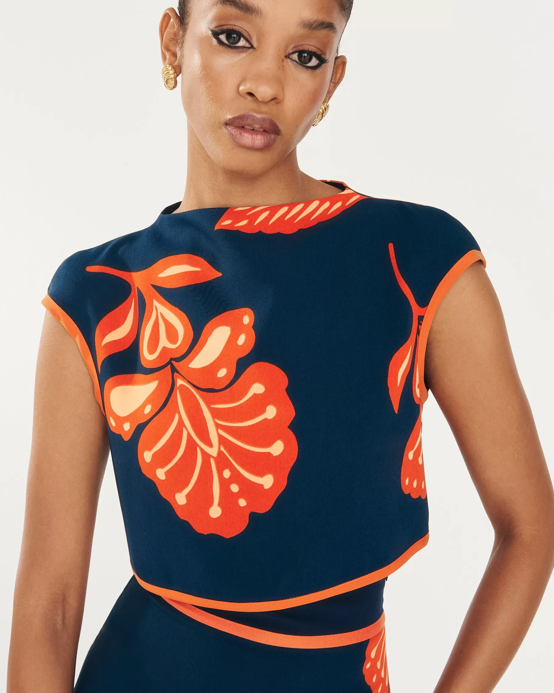 Top de manga corta y detalle de ribetes a tono en las mangas y en el bajo.