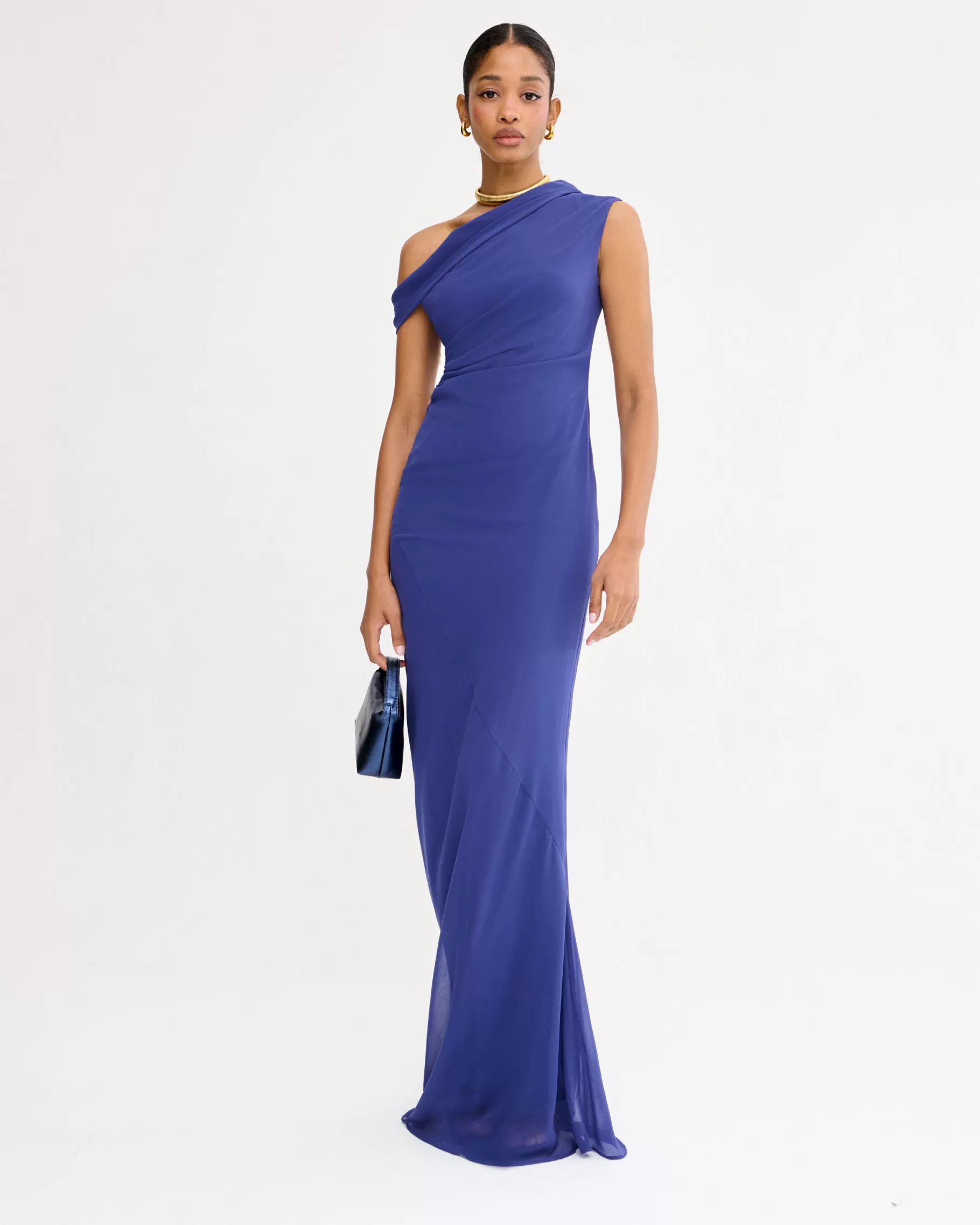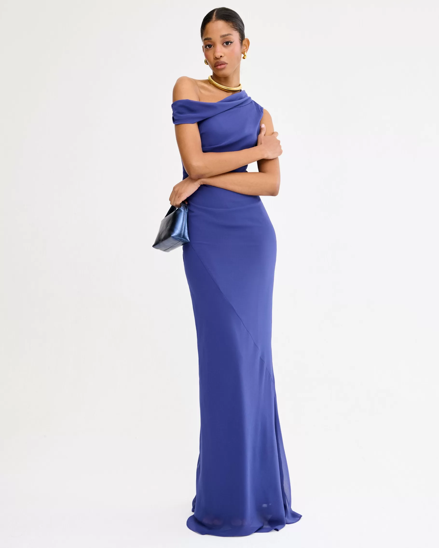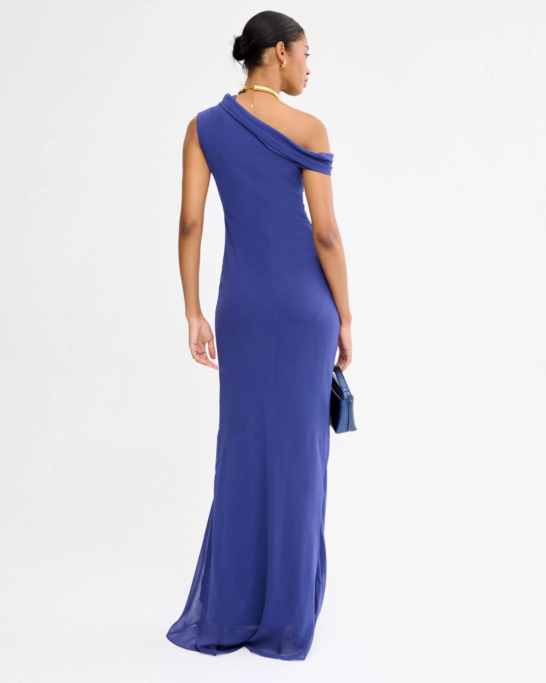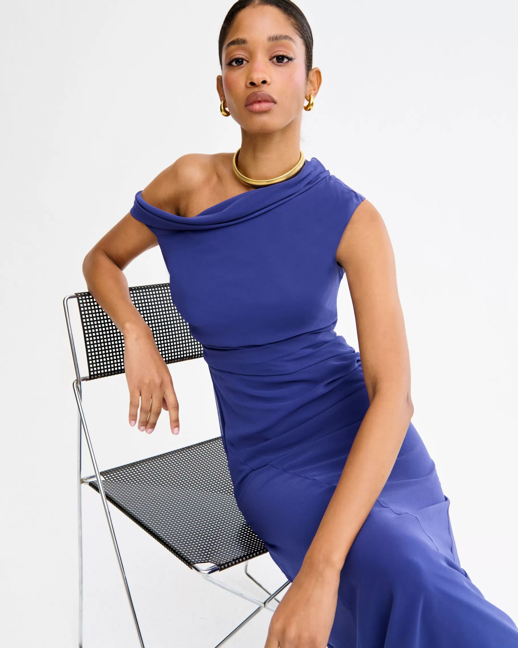 Vestido largo con escote bardot asimétrico.CONSEJO PARA ELEGIR TALLA: Escoge la misma talla que suelas usar normalment…
