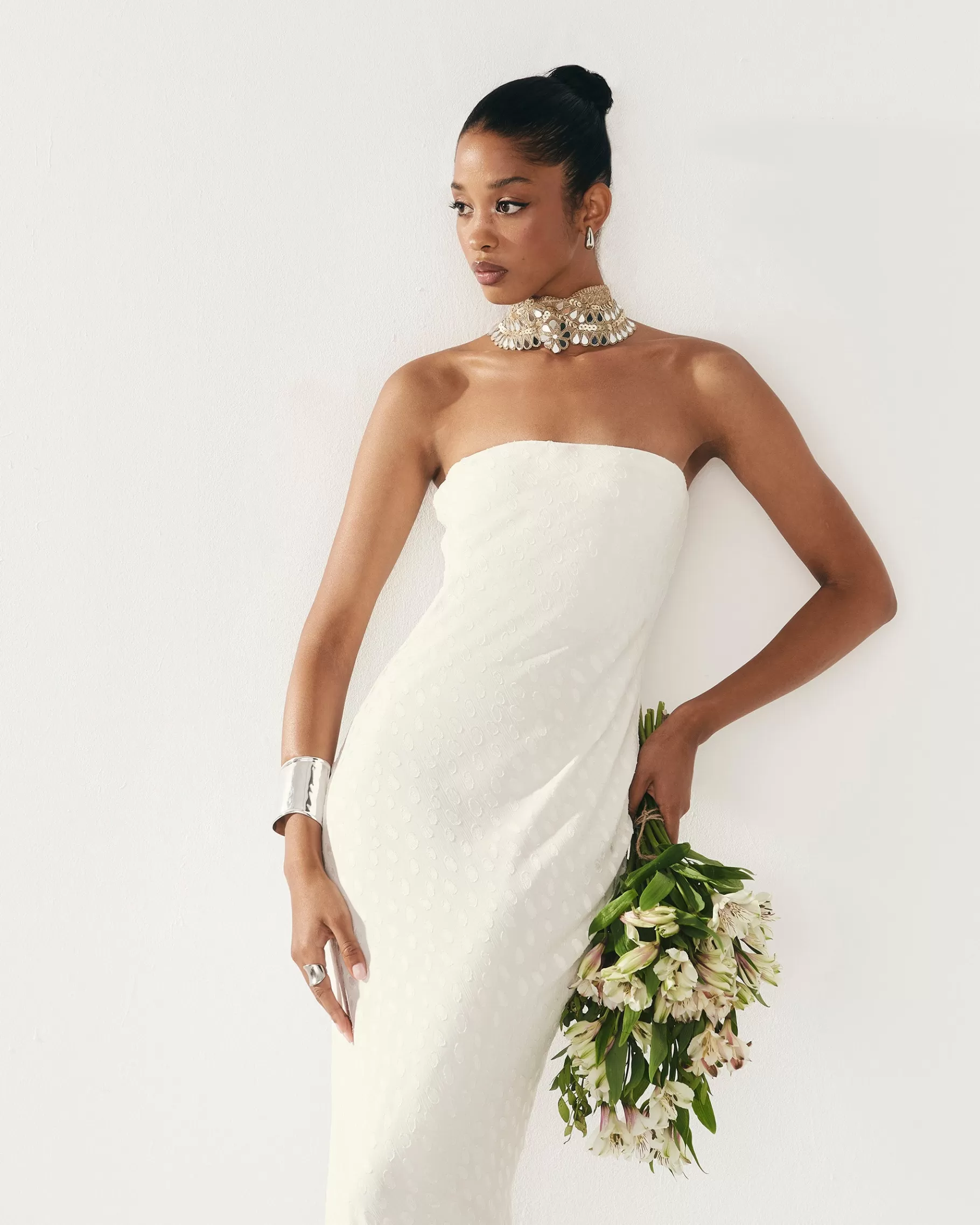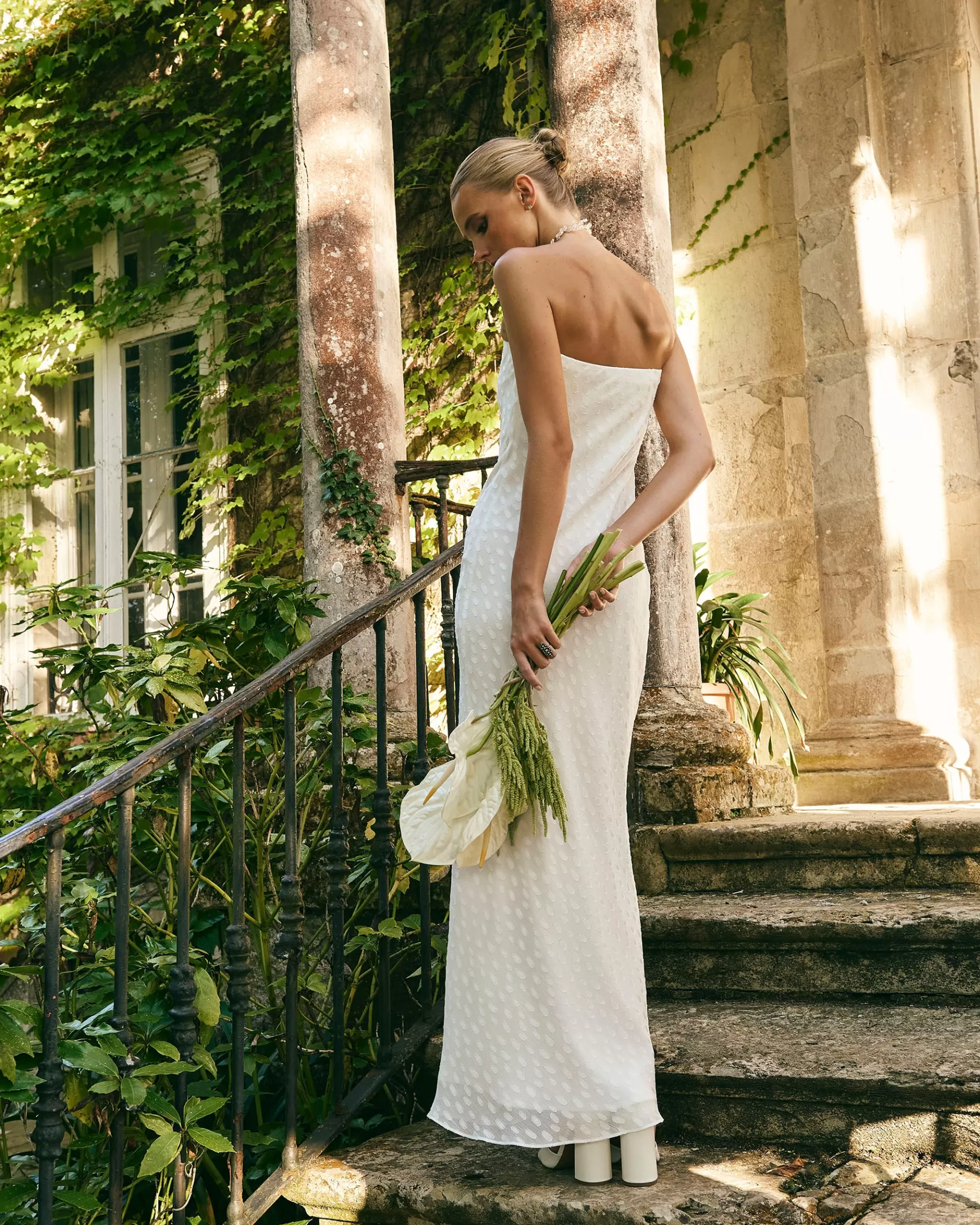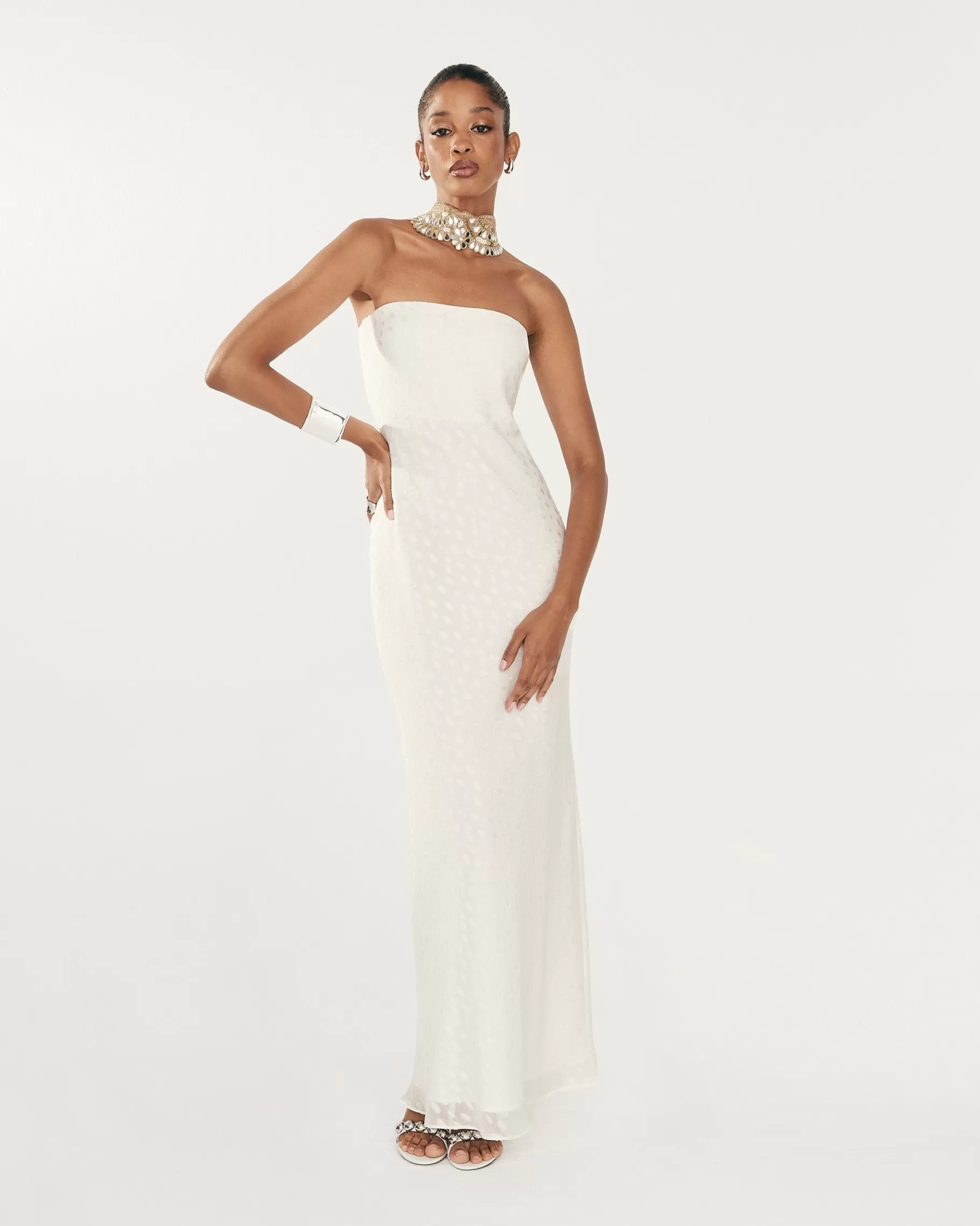 Vestido largo con escote palabra de honor.CONSEJO PARA ELEGIR TALLA: Escoge la misma talla que suelas usar normalmente e…