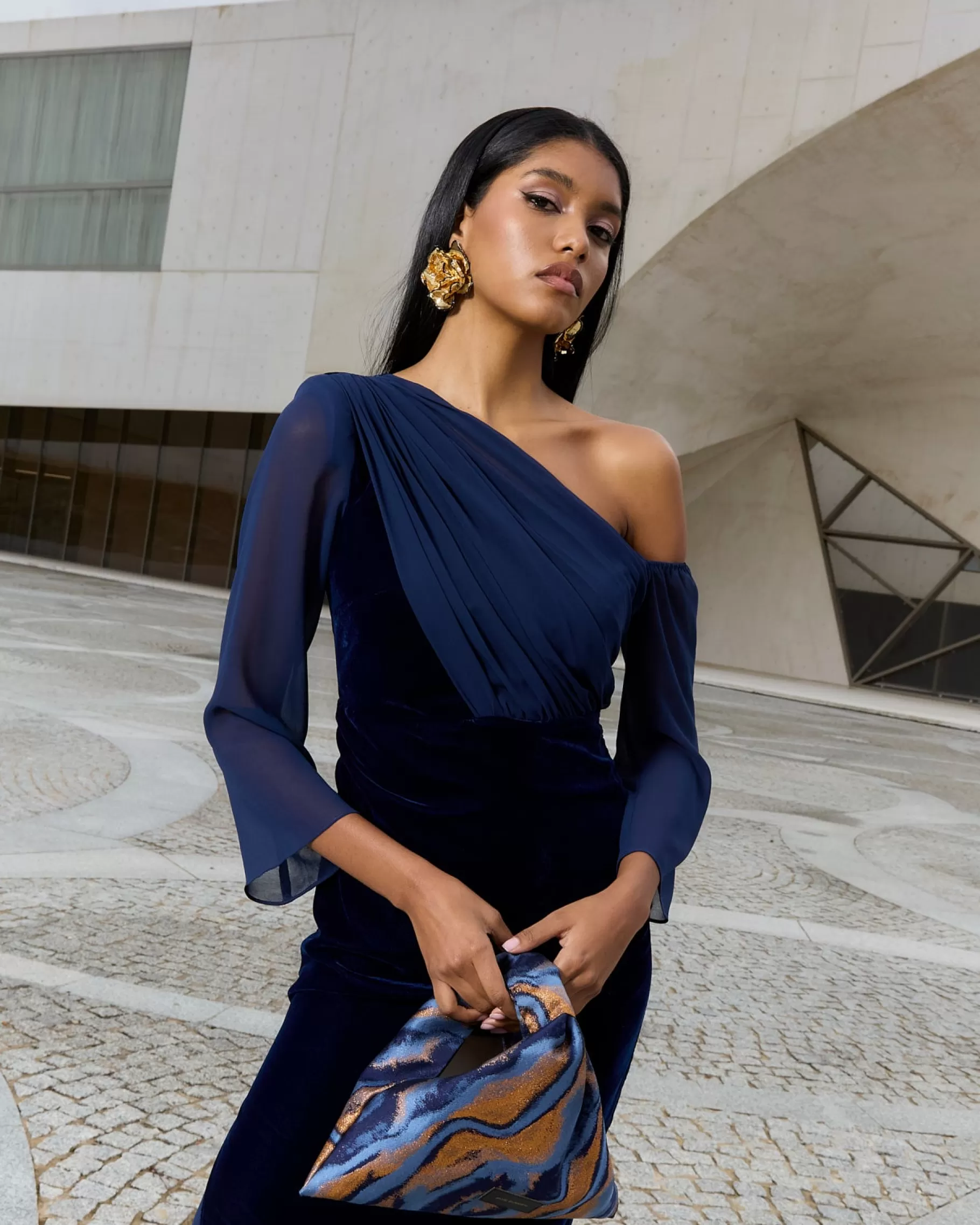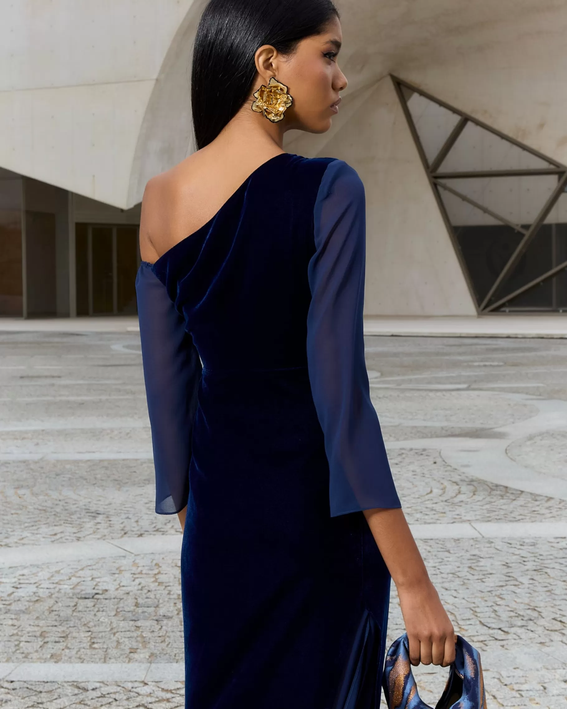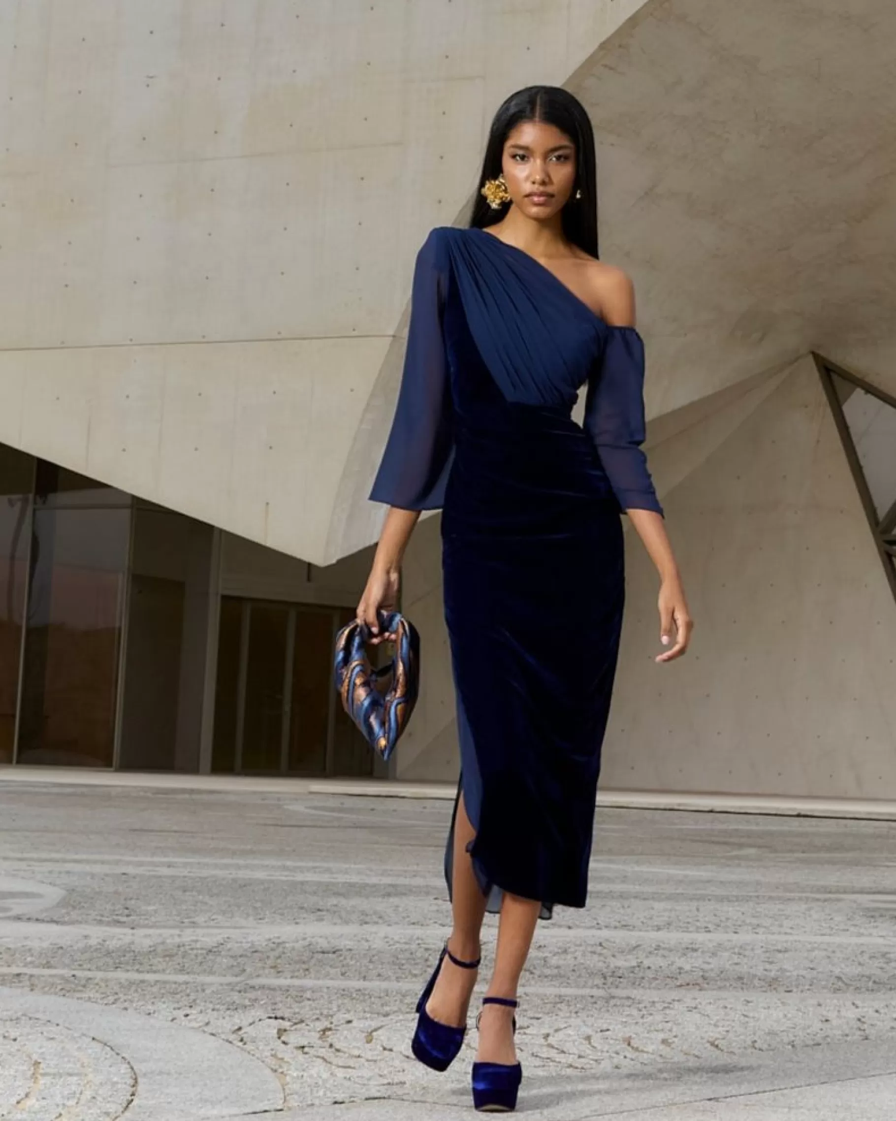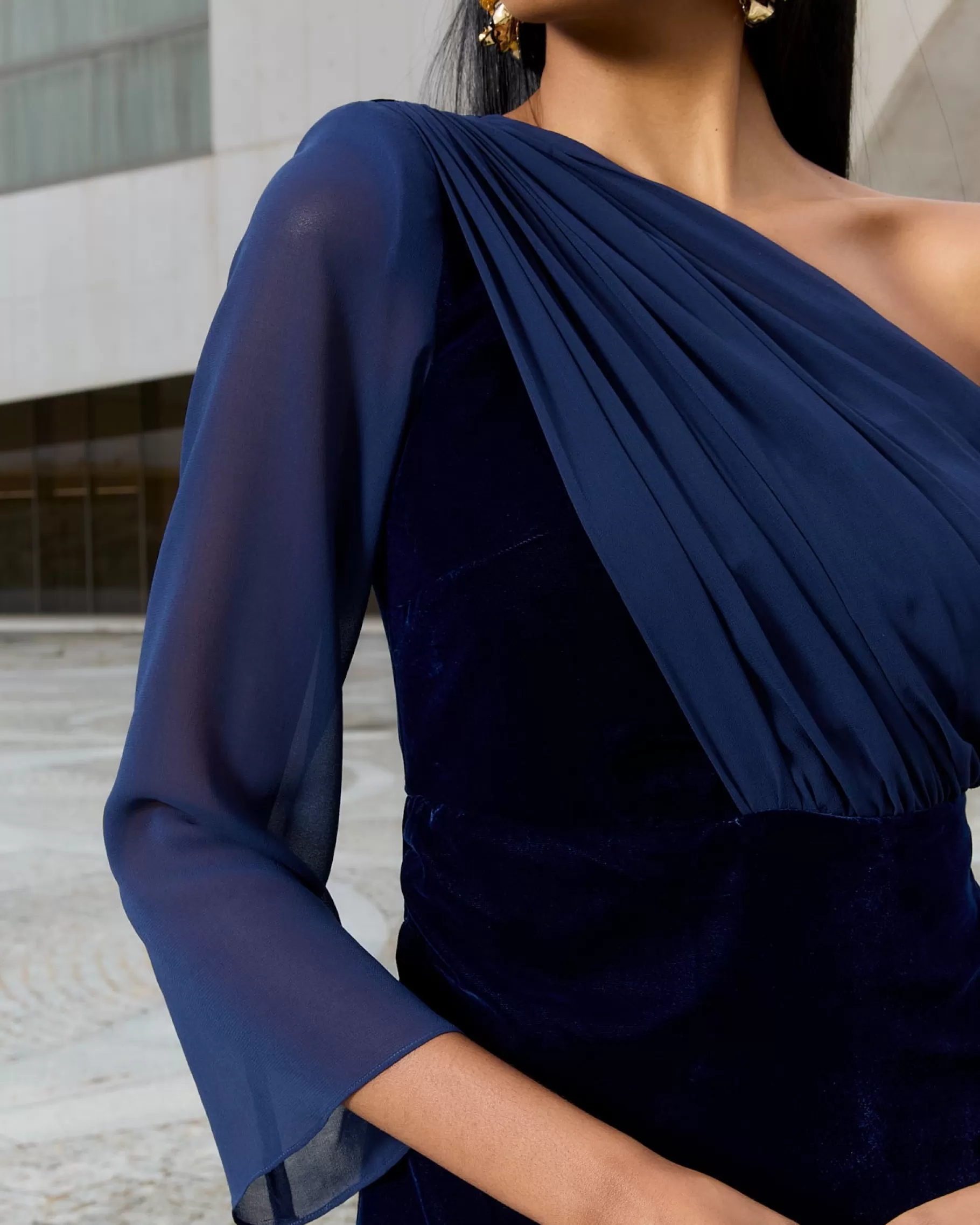 Vestido midi con frunces y mangas de gasa. Falda con abertura lateral y detalle de gasa en el bajo.CONSEJO PARA ELEGIR T…