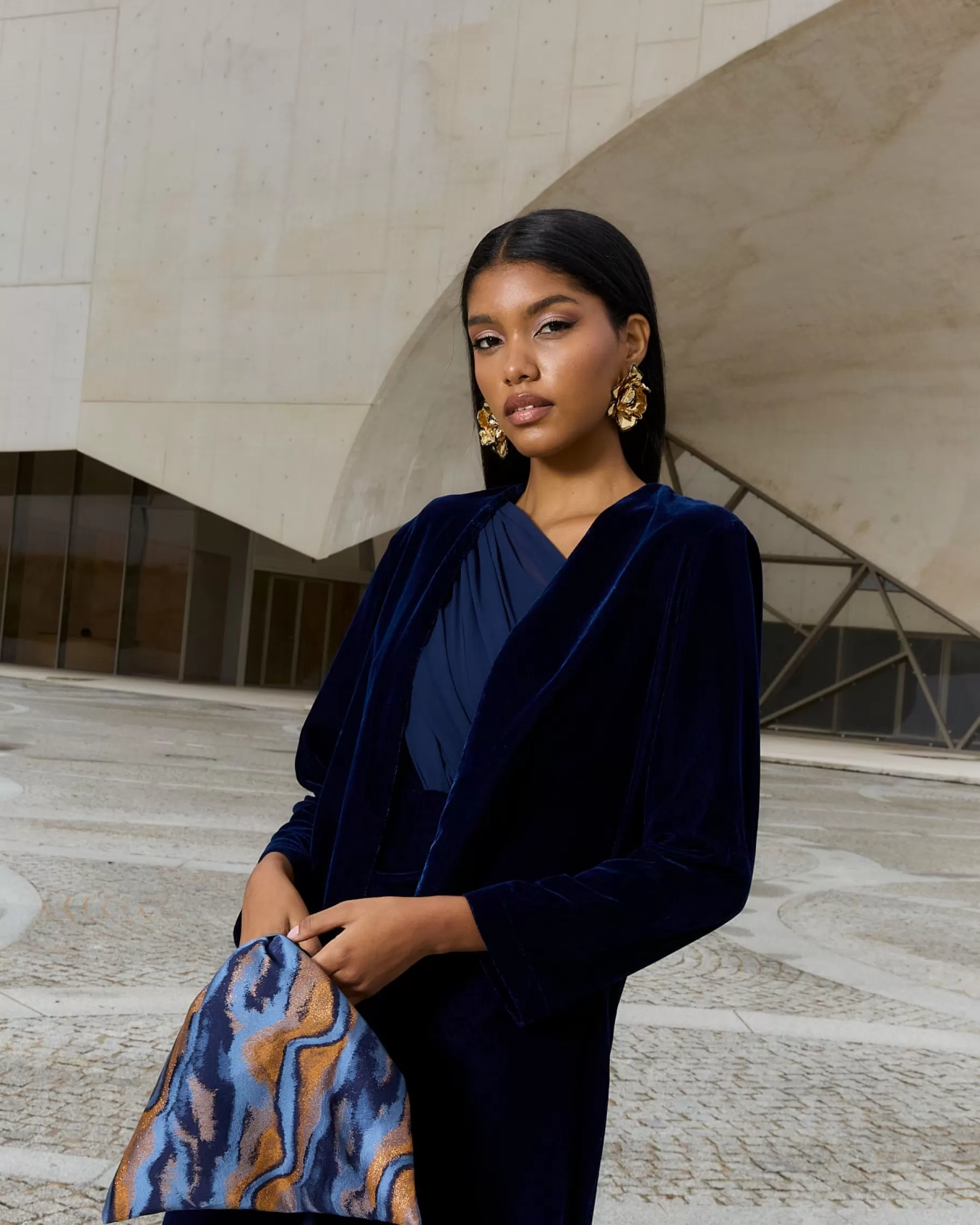 La modelo mide 177 cm y lleva la XXS.